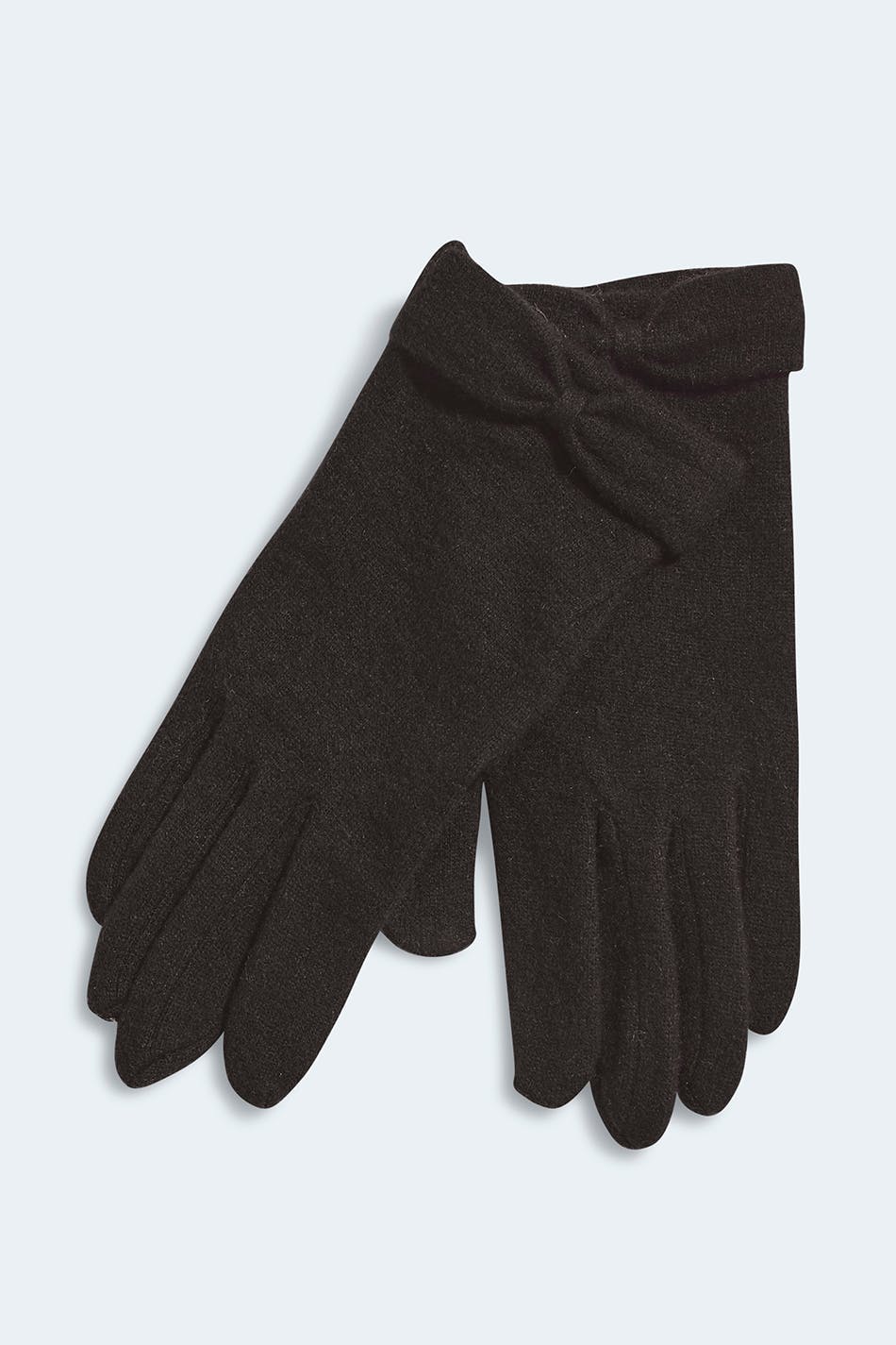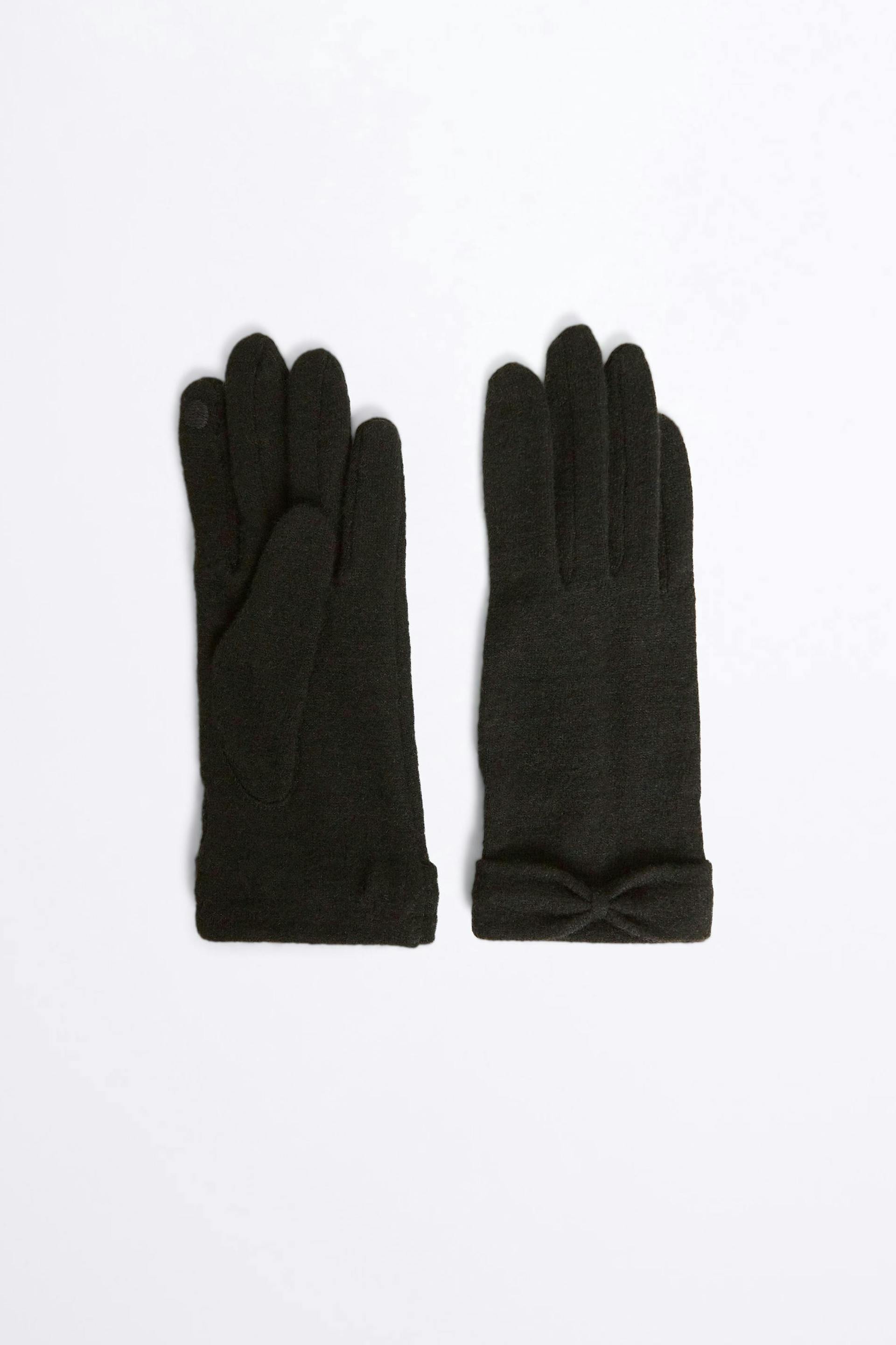 Thin gloves with bow details. The gloves are black.