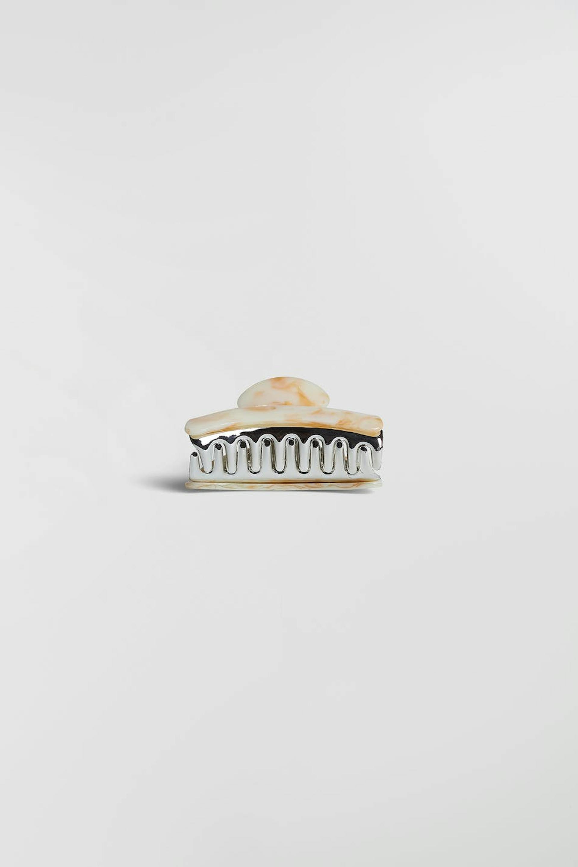Luxurious hair claw with a beautiful pattern. The hairclip is white and orange.