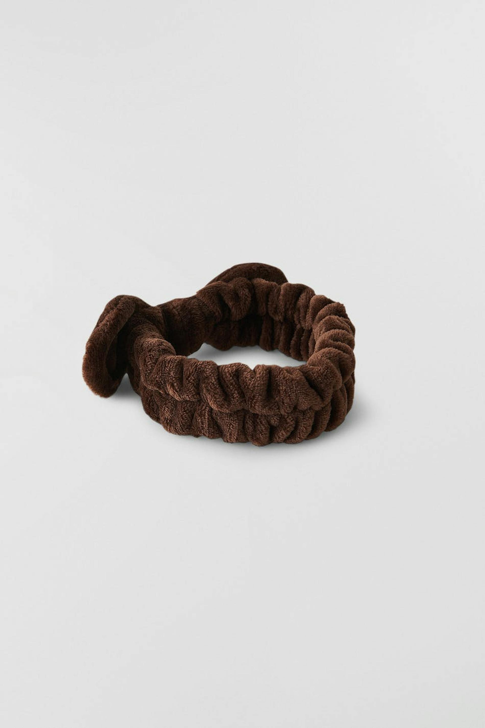 Hairband with a bow detail at the front. The accessory is brown and has a soft material in cotton.