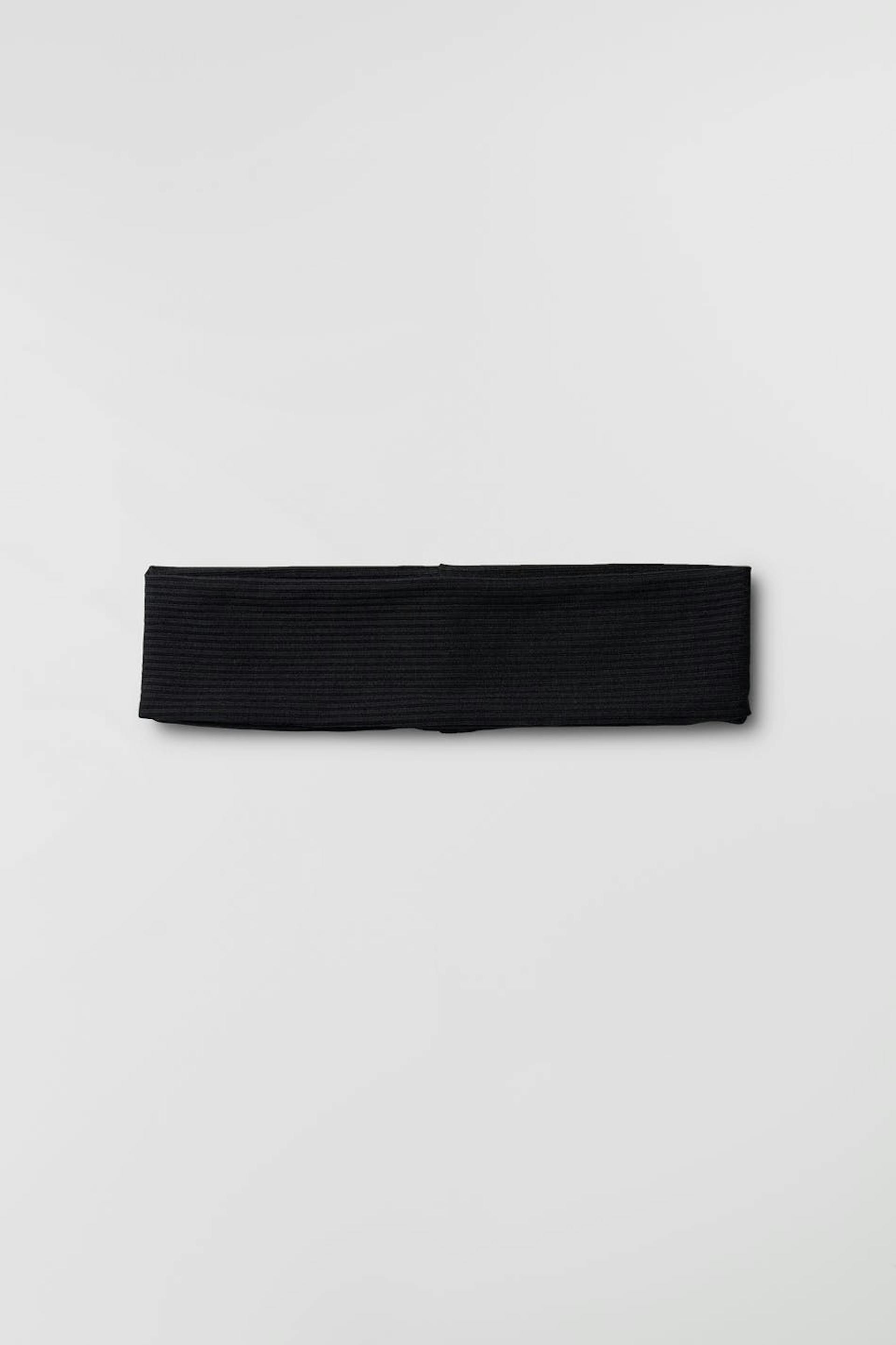 Hairband with a soft, ribbed quality. The accessory is black.