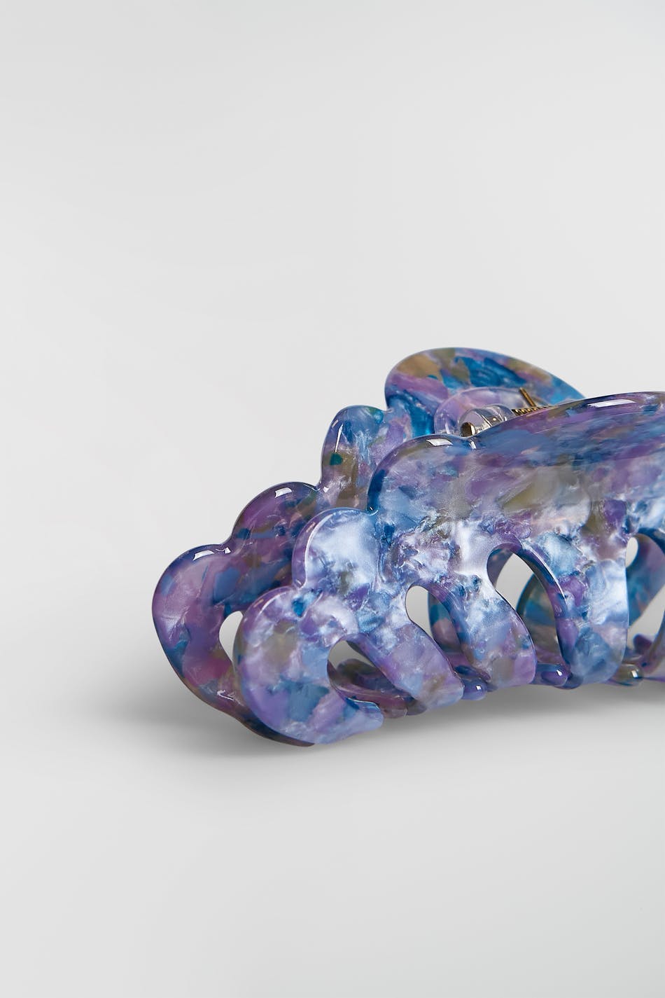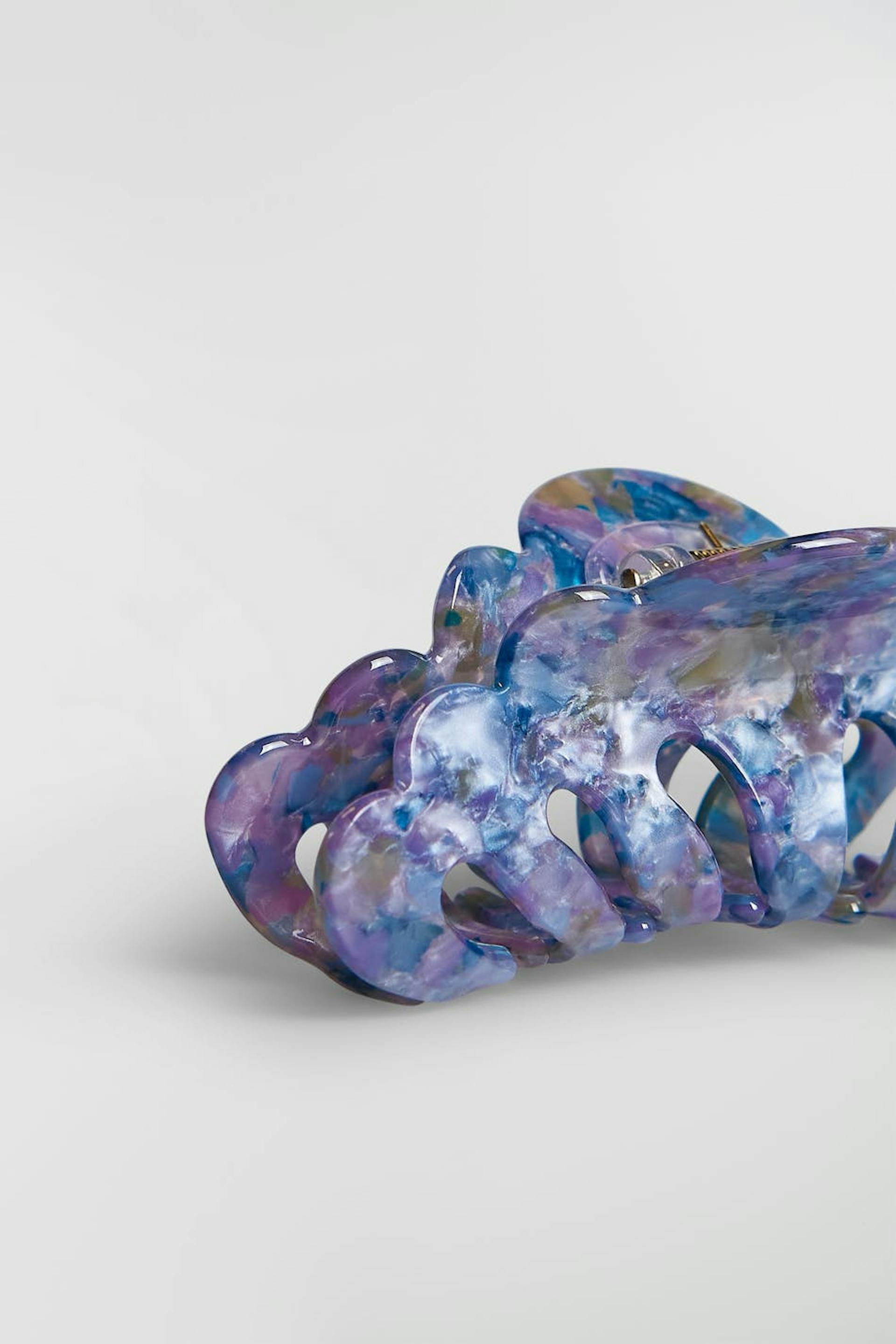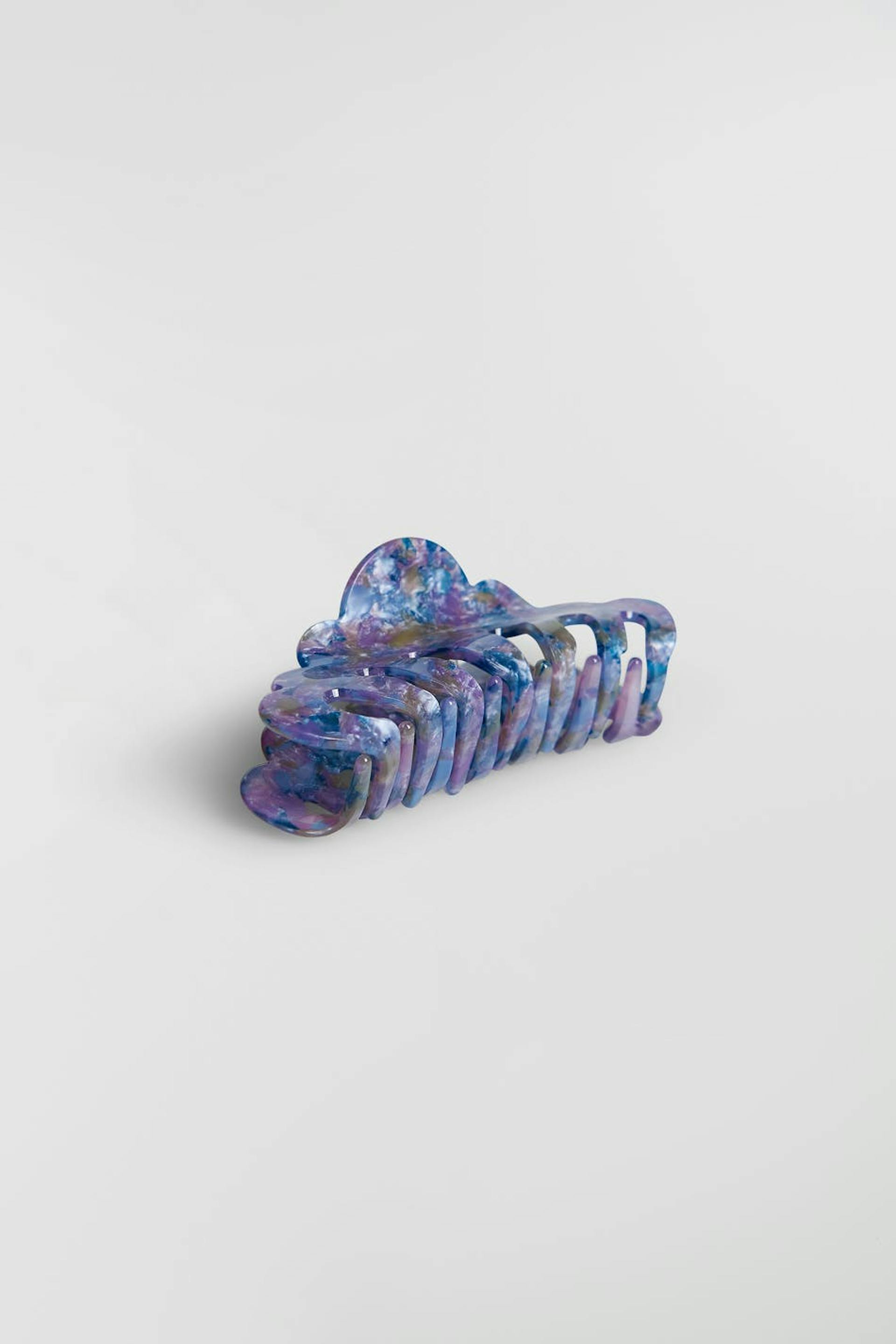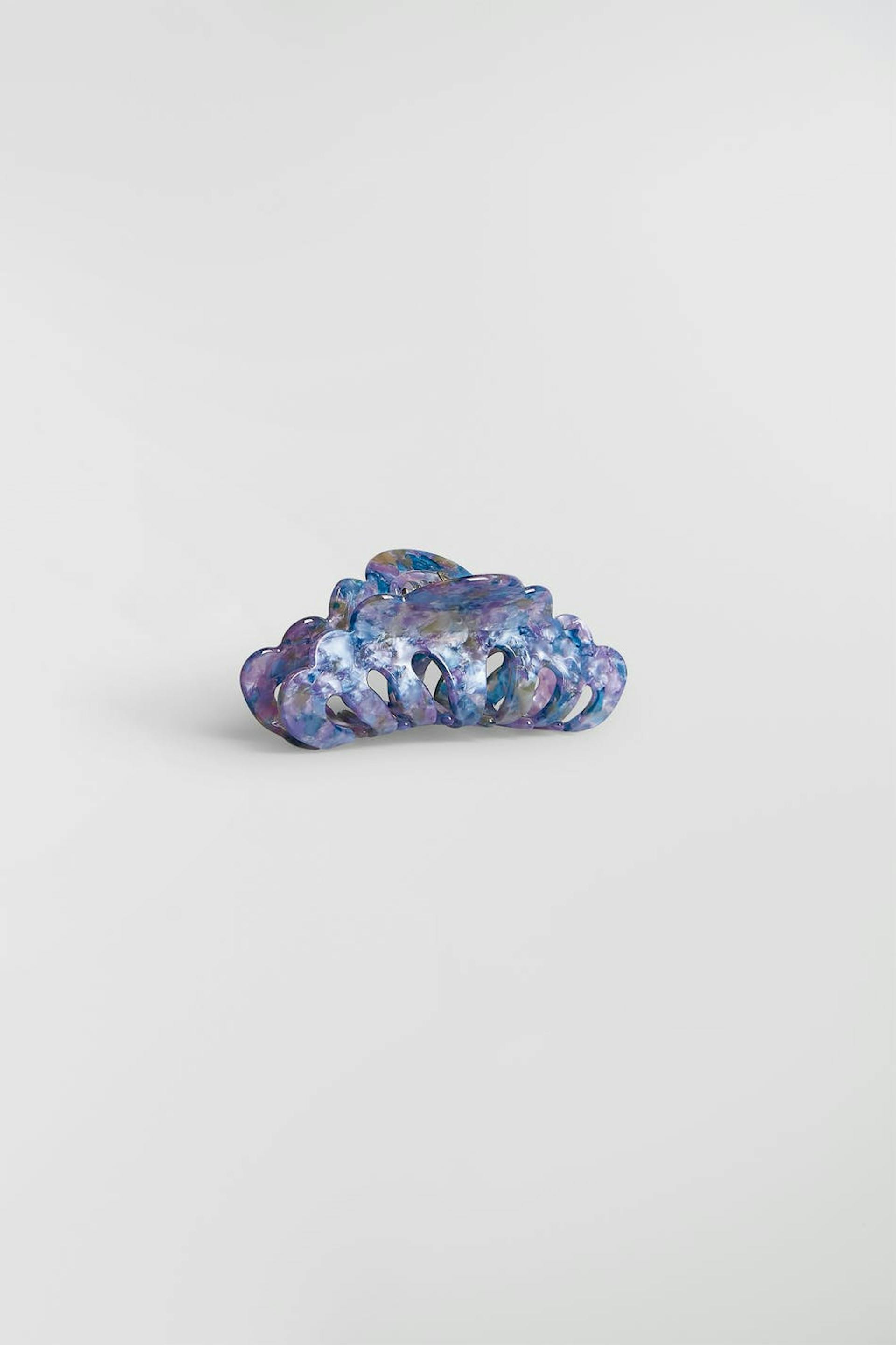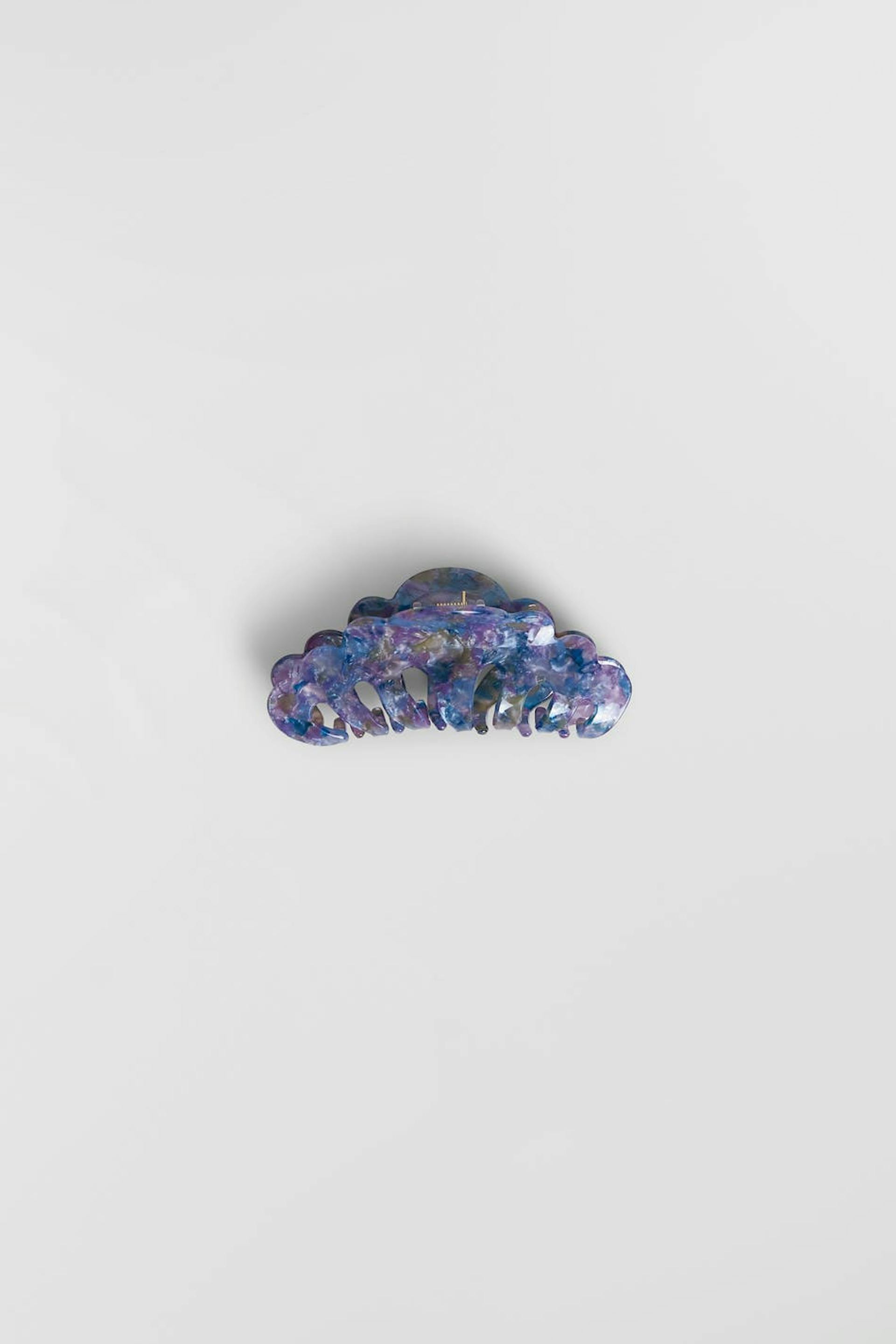 Big hair clip with cloud-shaped design. The hair clip is blue and has a beautiful, marble pattern.