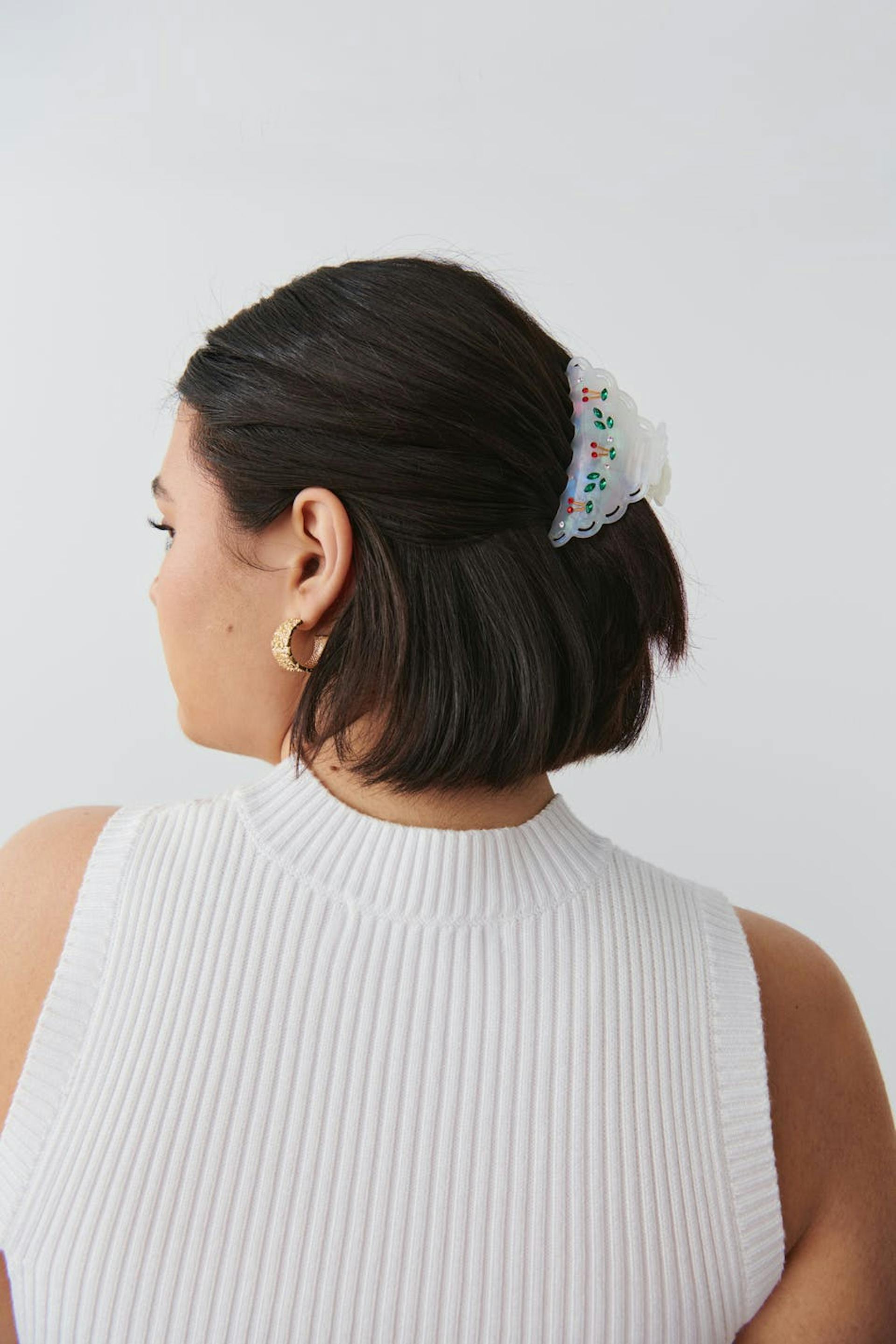 Cherry hair clip in several colours. Supplier: Alpha fashion co. Ltd Production unit: Dongguan City Zhanguan Hardware Products Co., Ltd