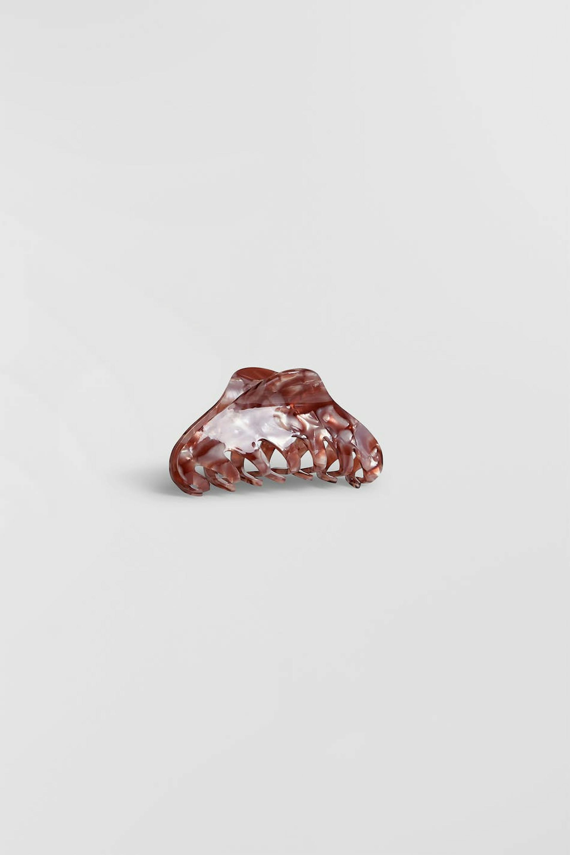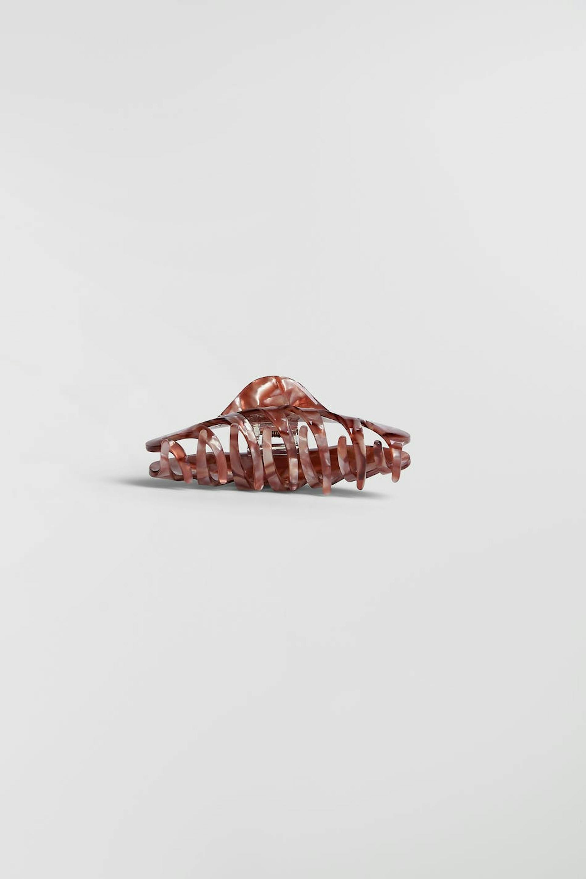 Plastic hair claw with beautiful pattern. The hairclip is pink.