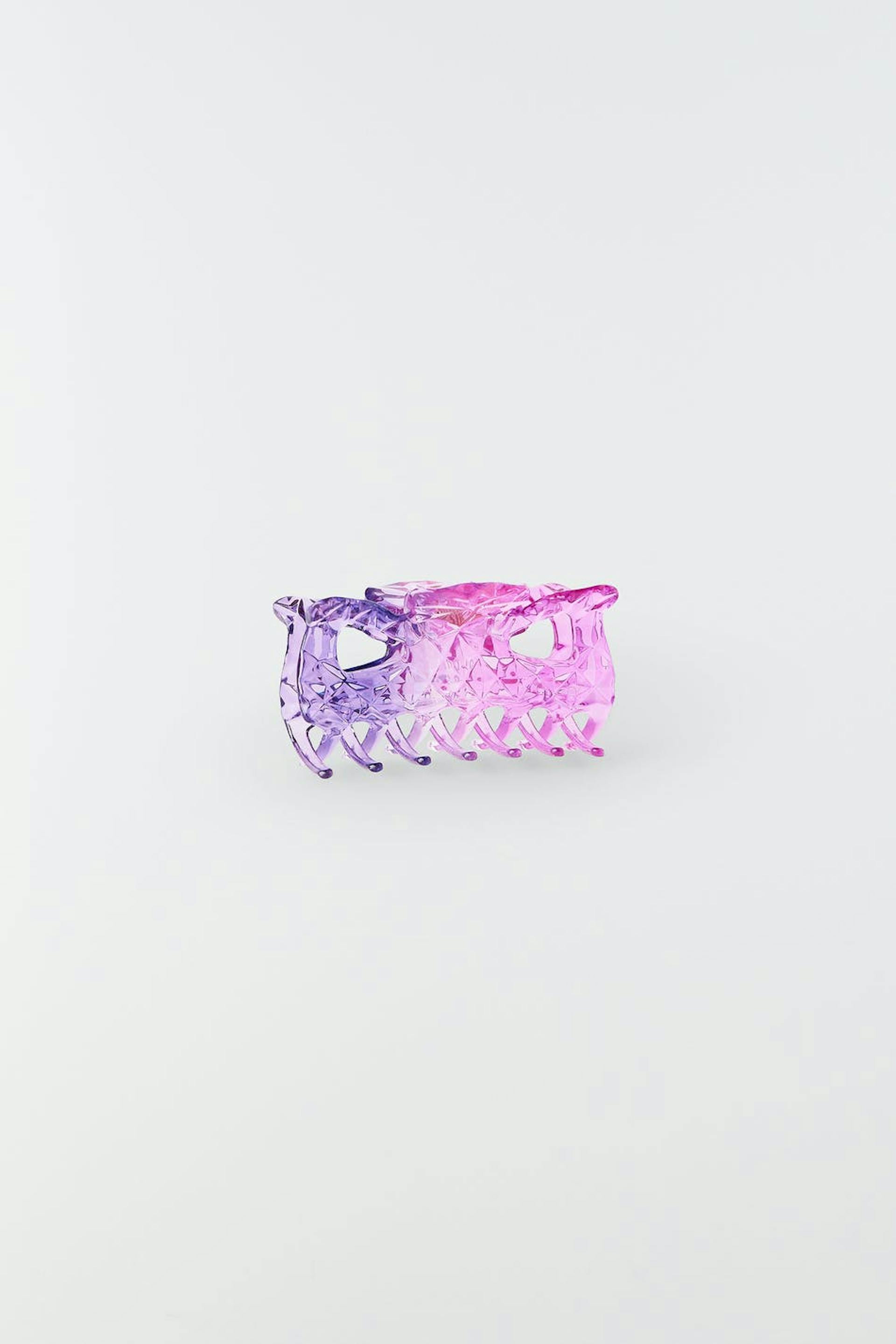 Luxurious hair clip in plastic. The hair clip is pink.
