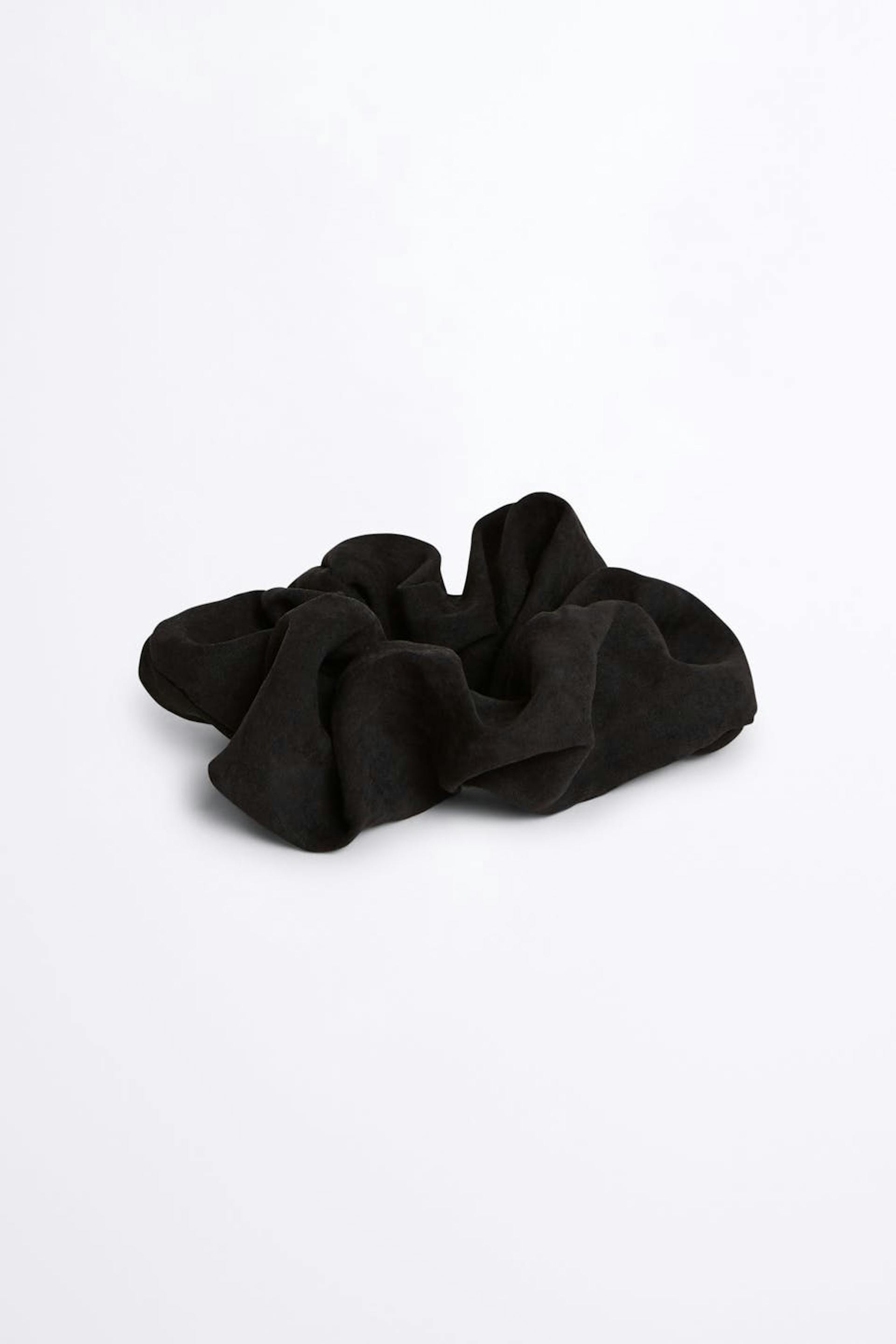 Scrunchie. The hair accessory is black.