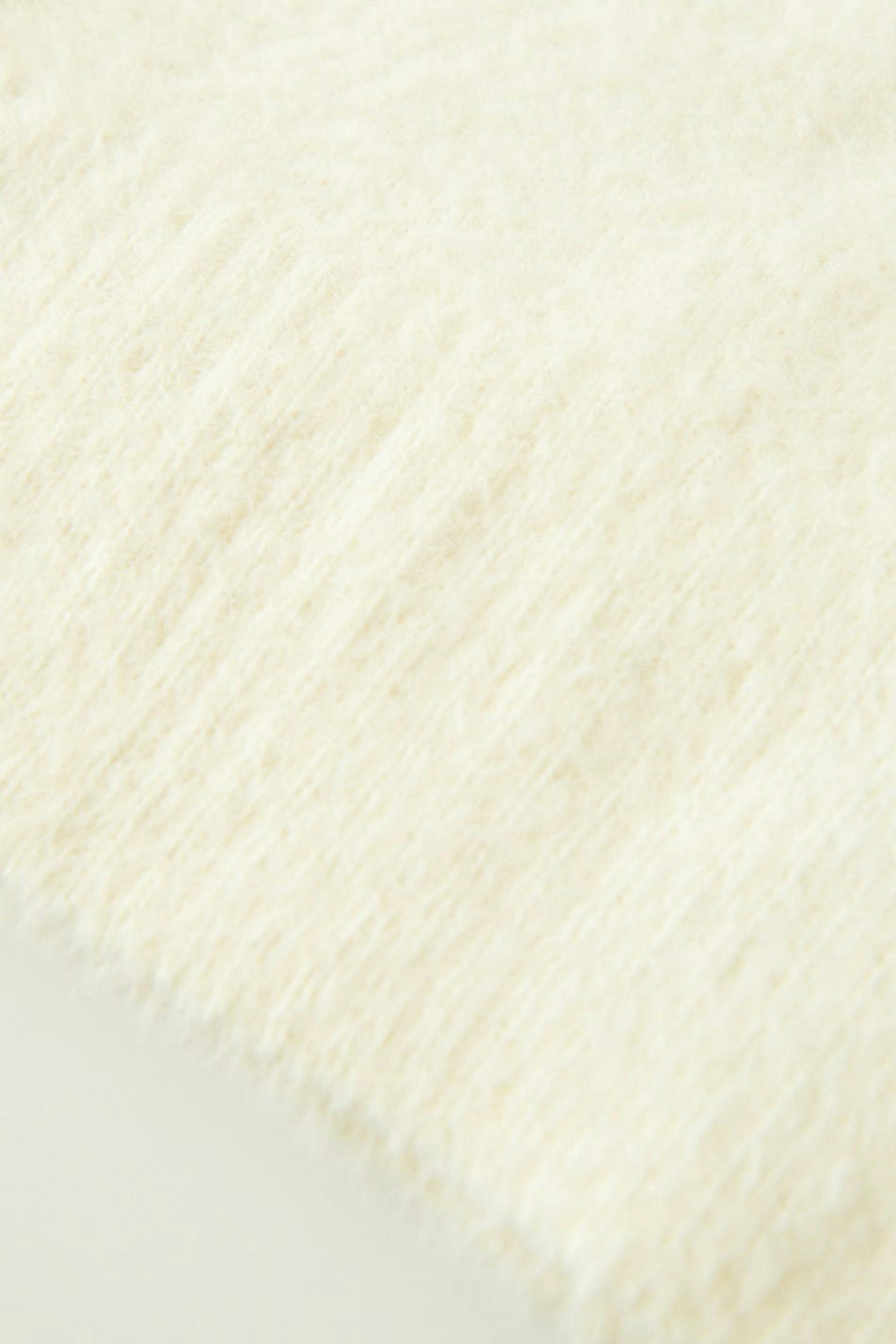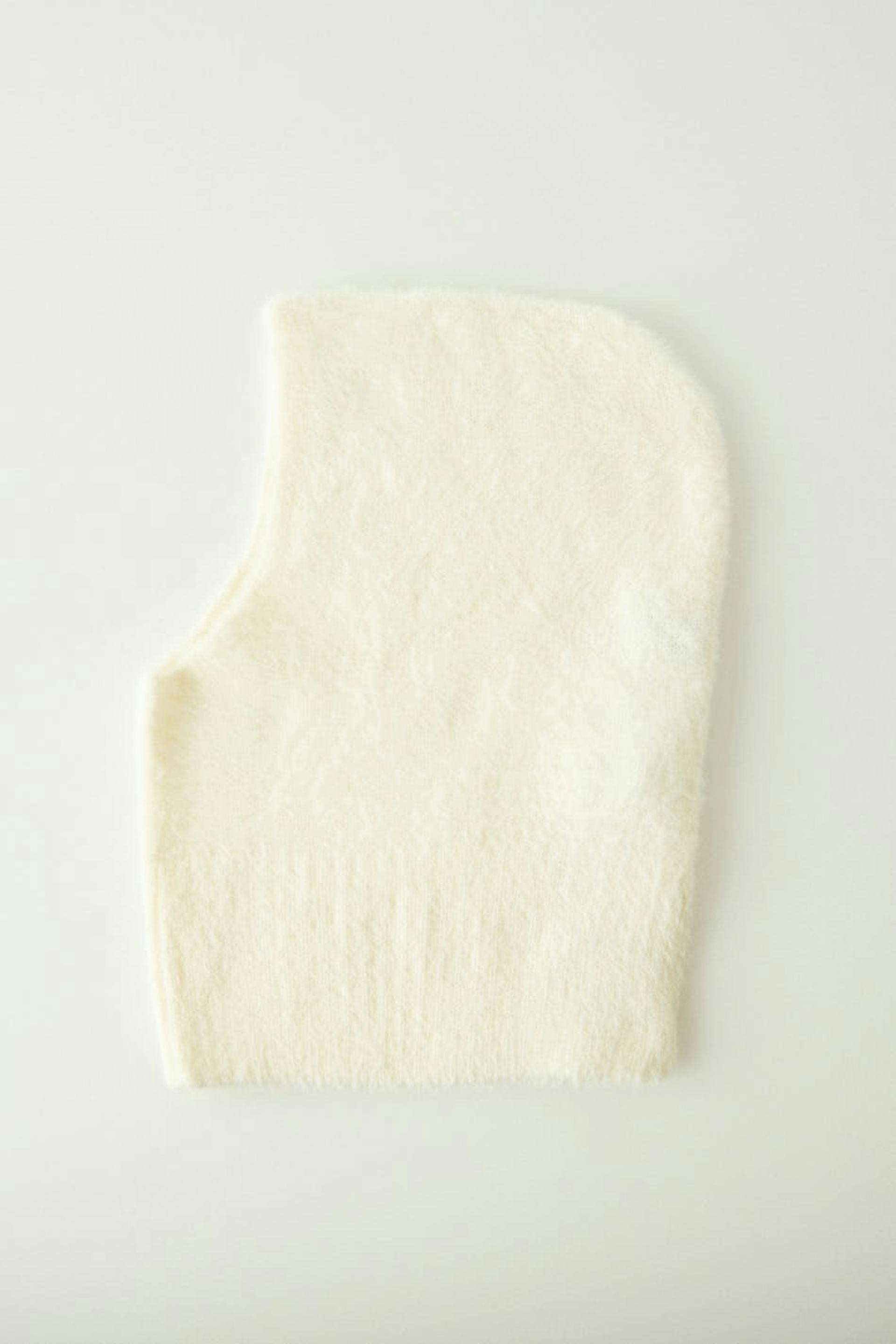 Knitted balaclava with ribbed hem. The balaclava is white.