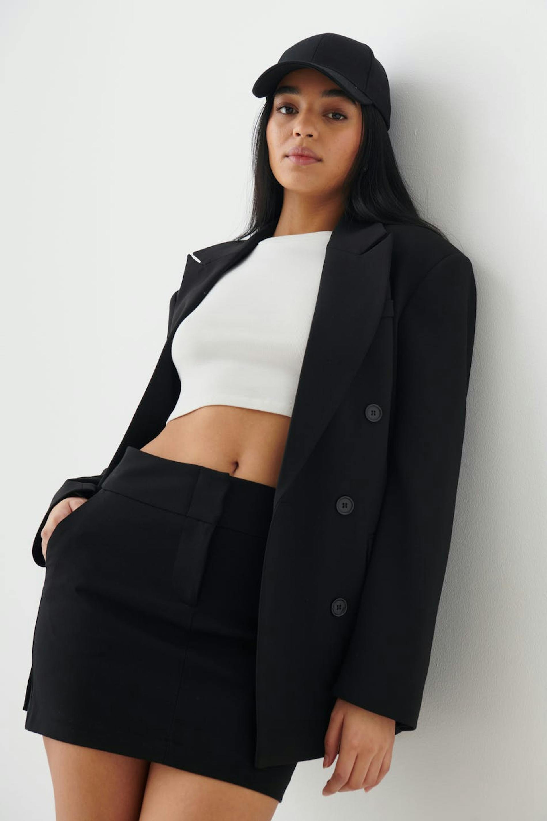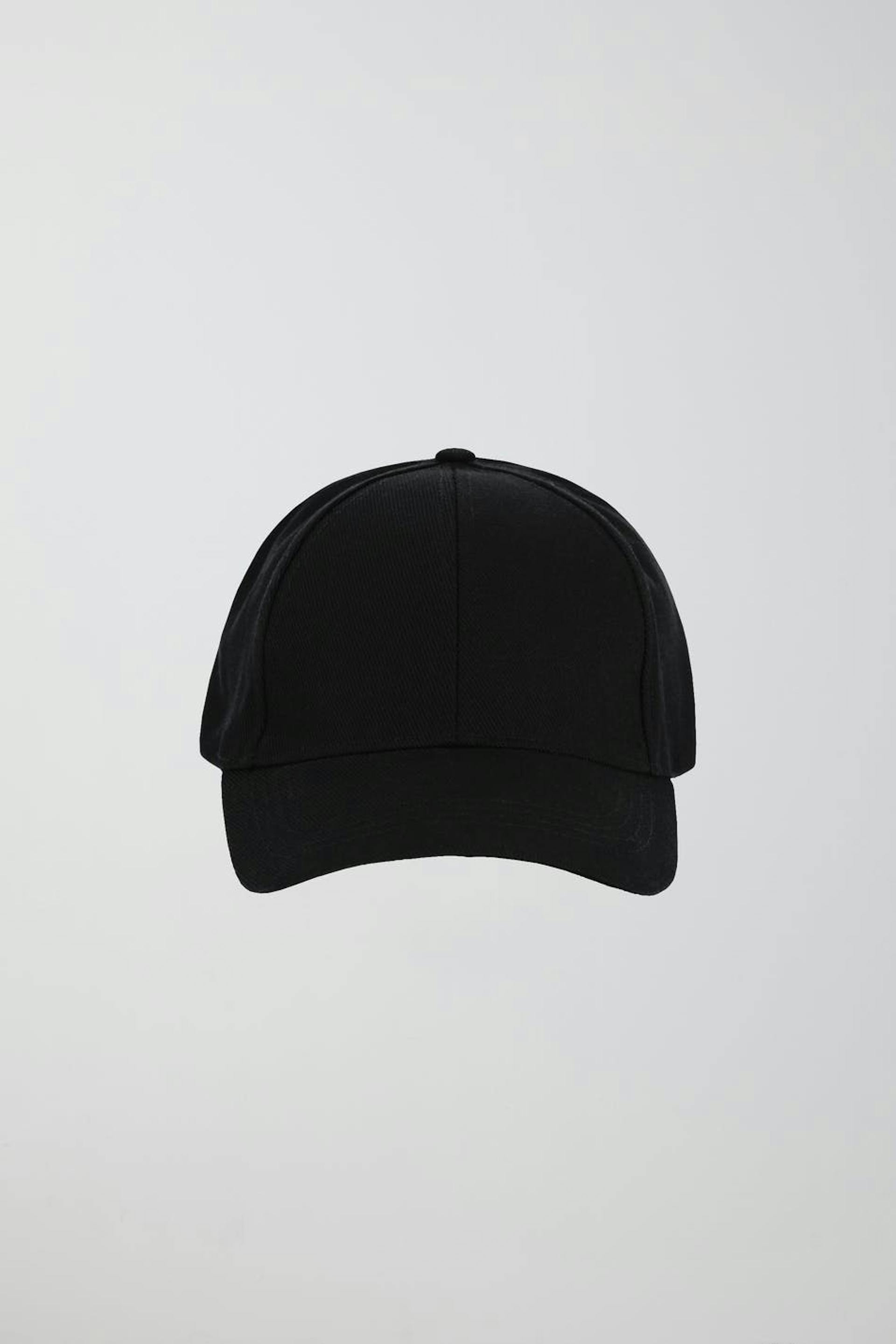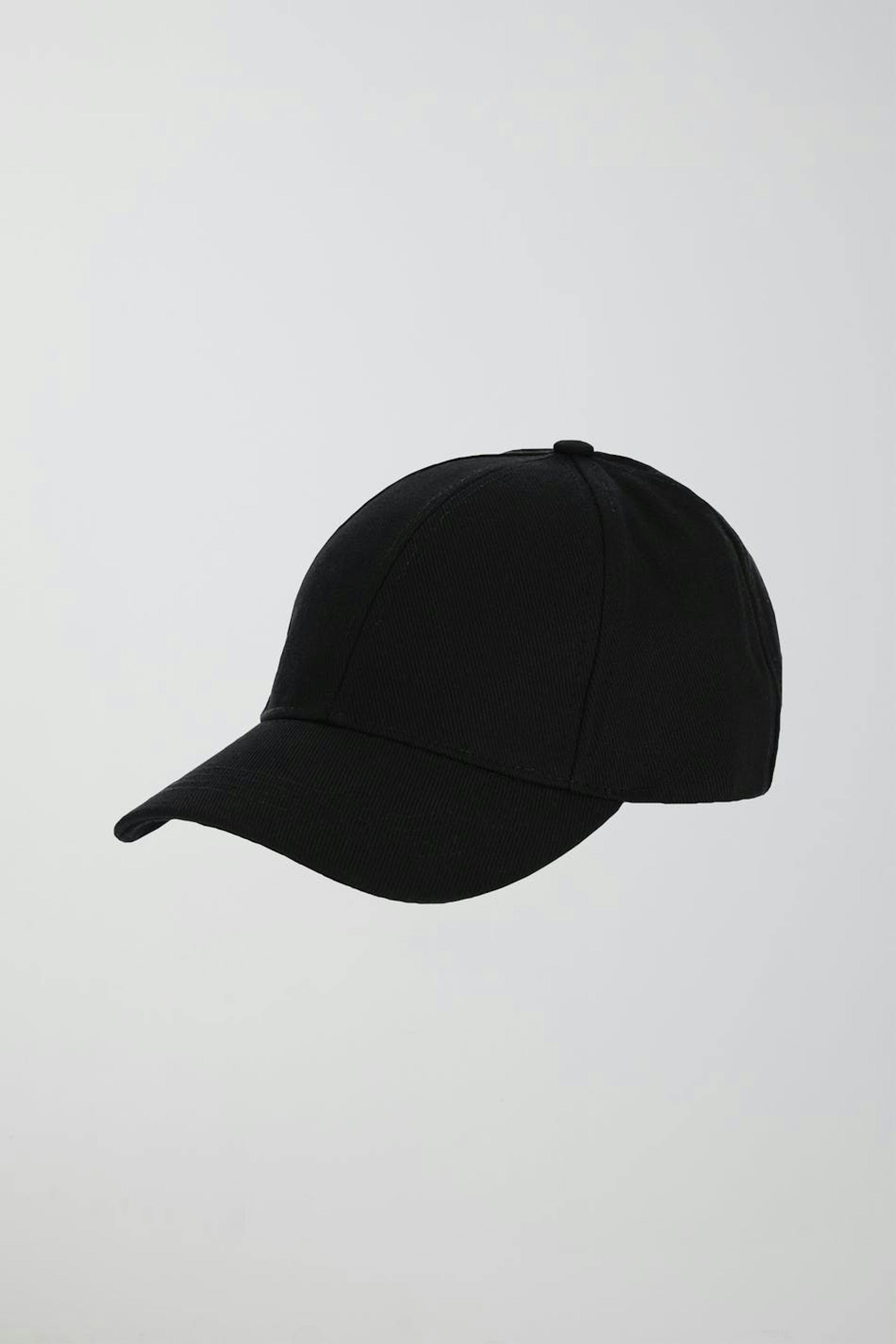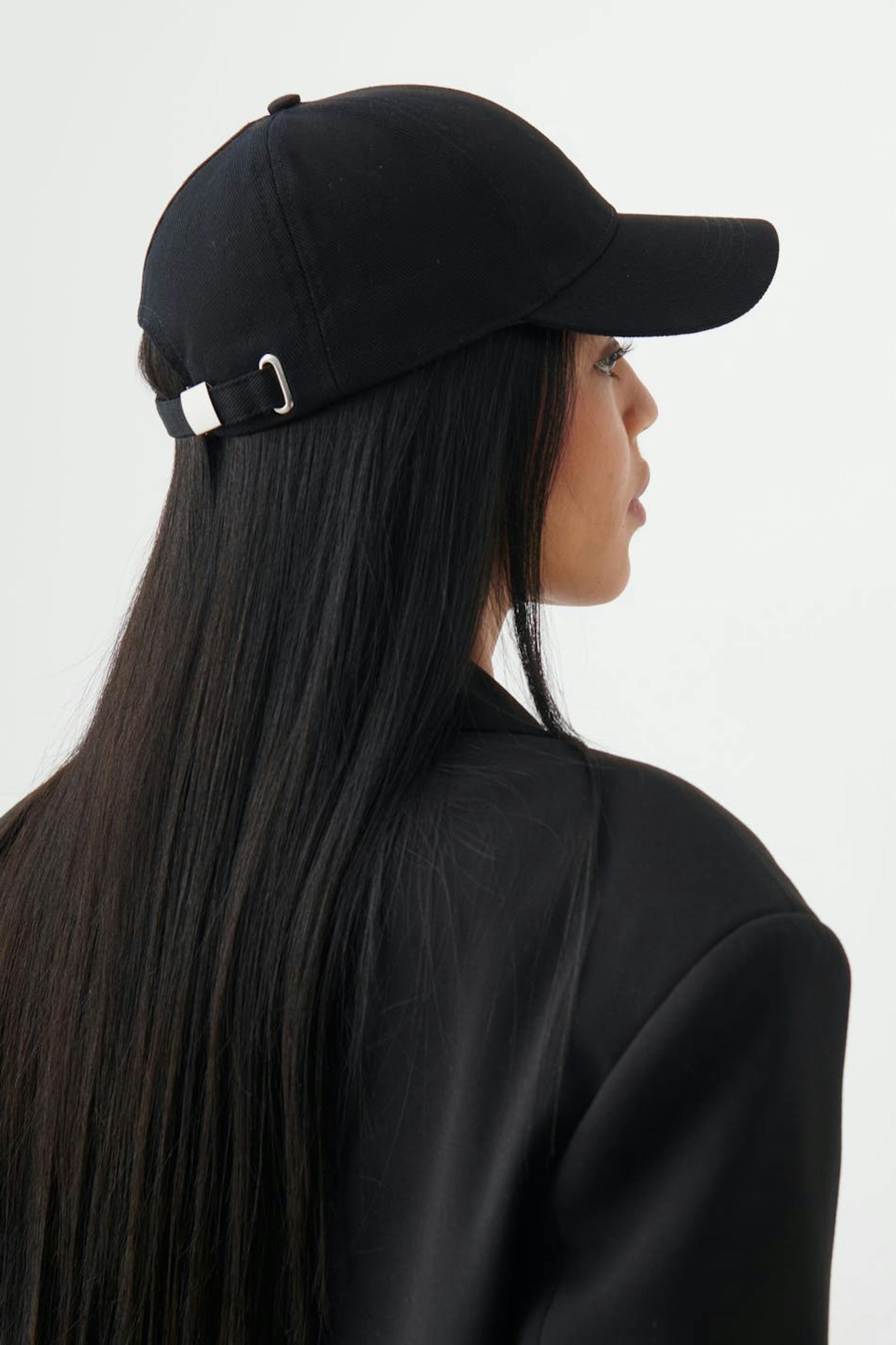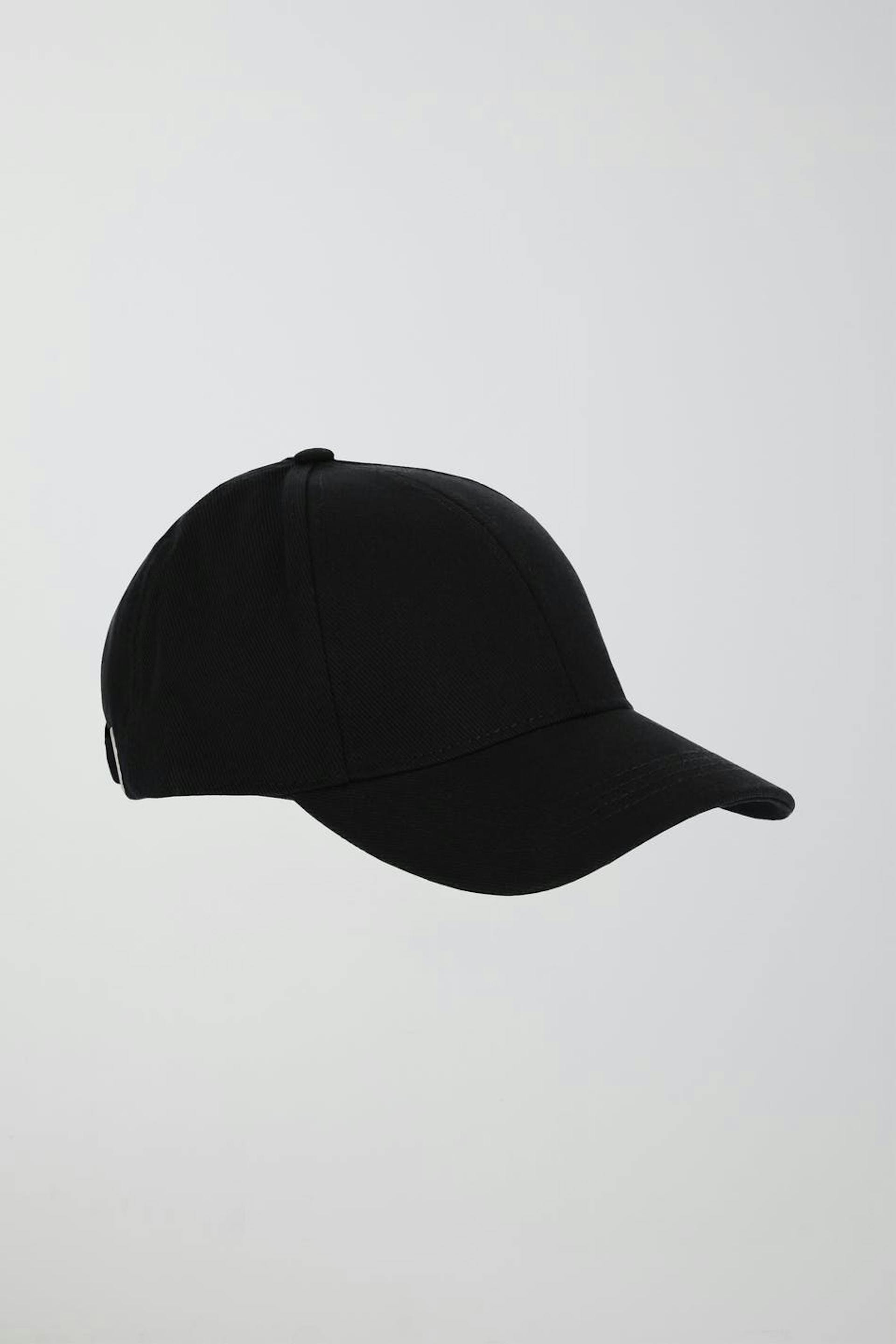 Sporty cap with adjustable tab at the back. The cap is black.