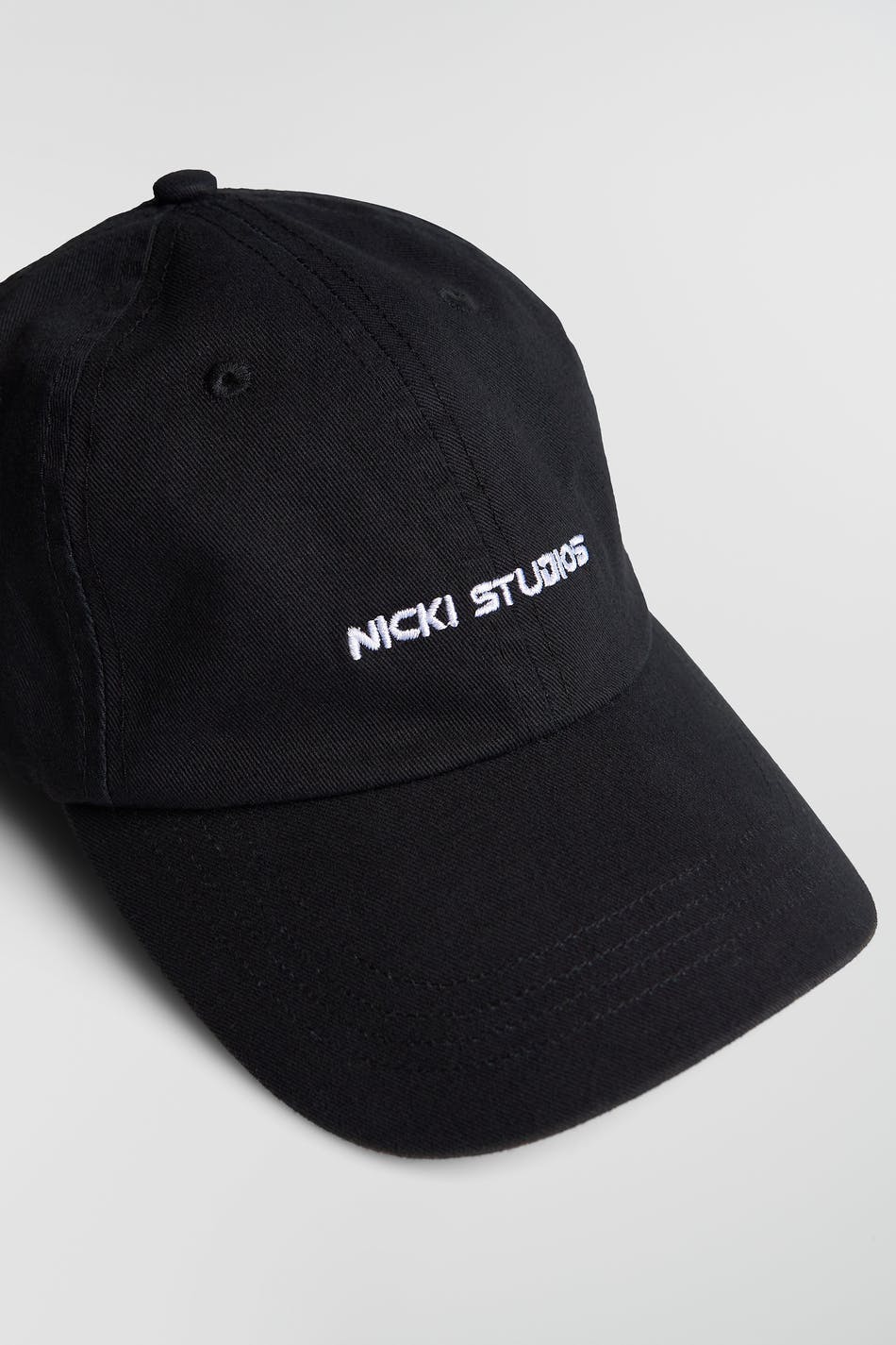 Nicki Studios X Gina Tricot. Cap with adjustable size. The cap is black and has brand embroidery at the front.