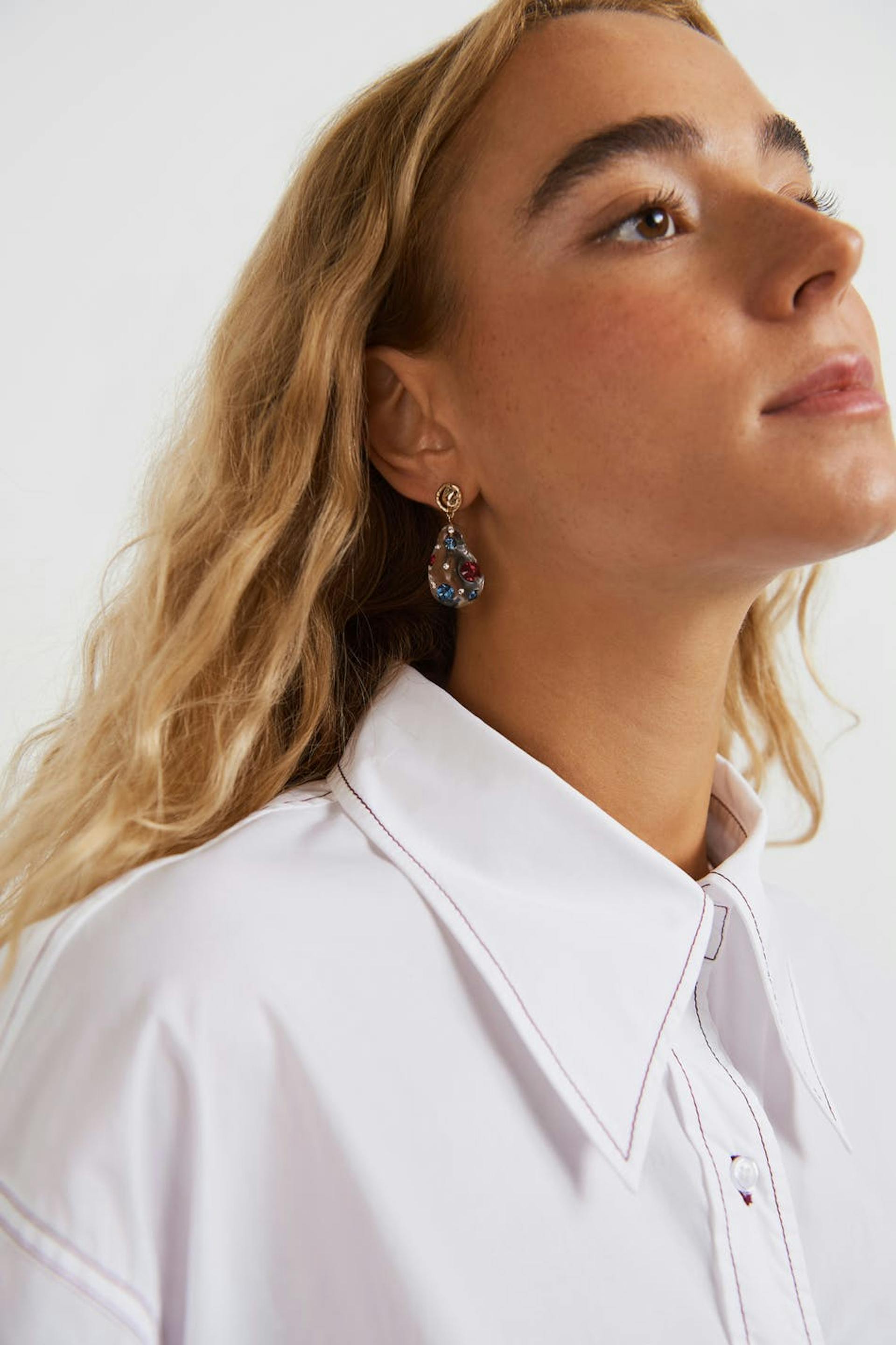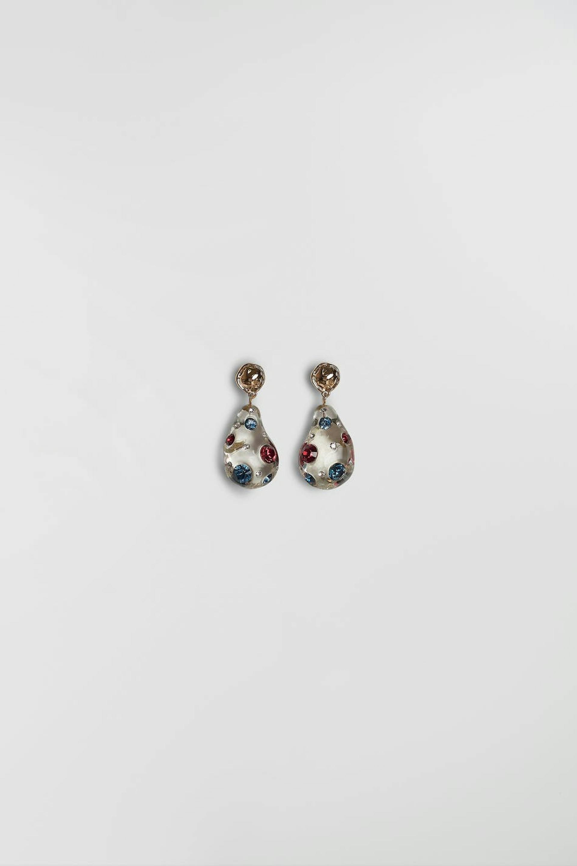 Hobnob X Gina Tricot. Drop earrings with colourful, small stones.