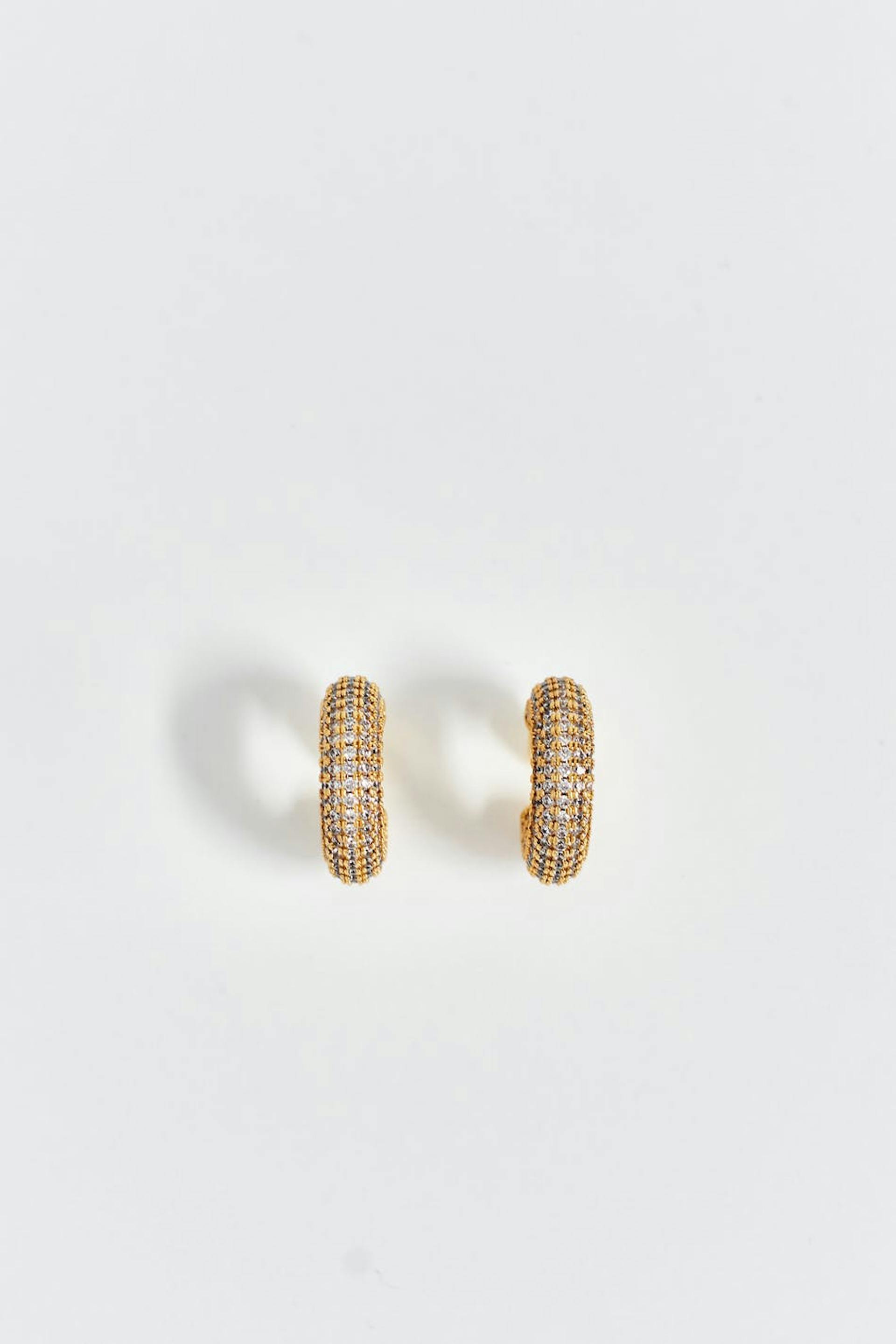 Pave gold hoops earrings