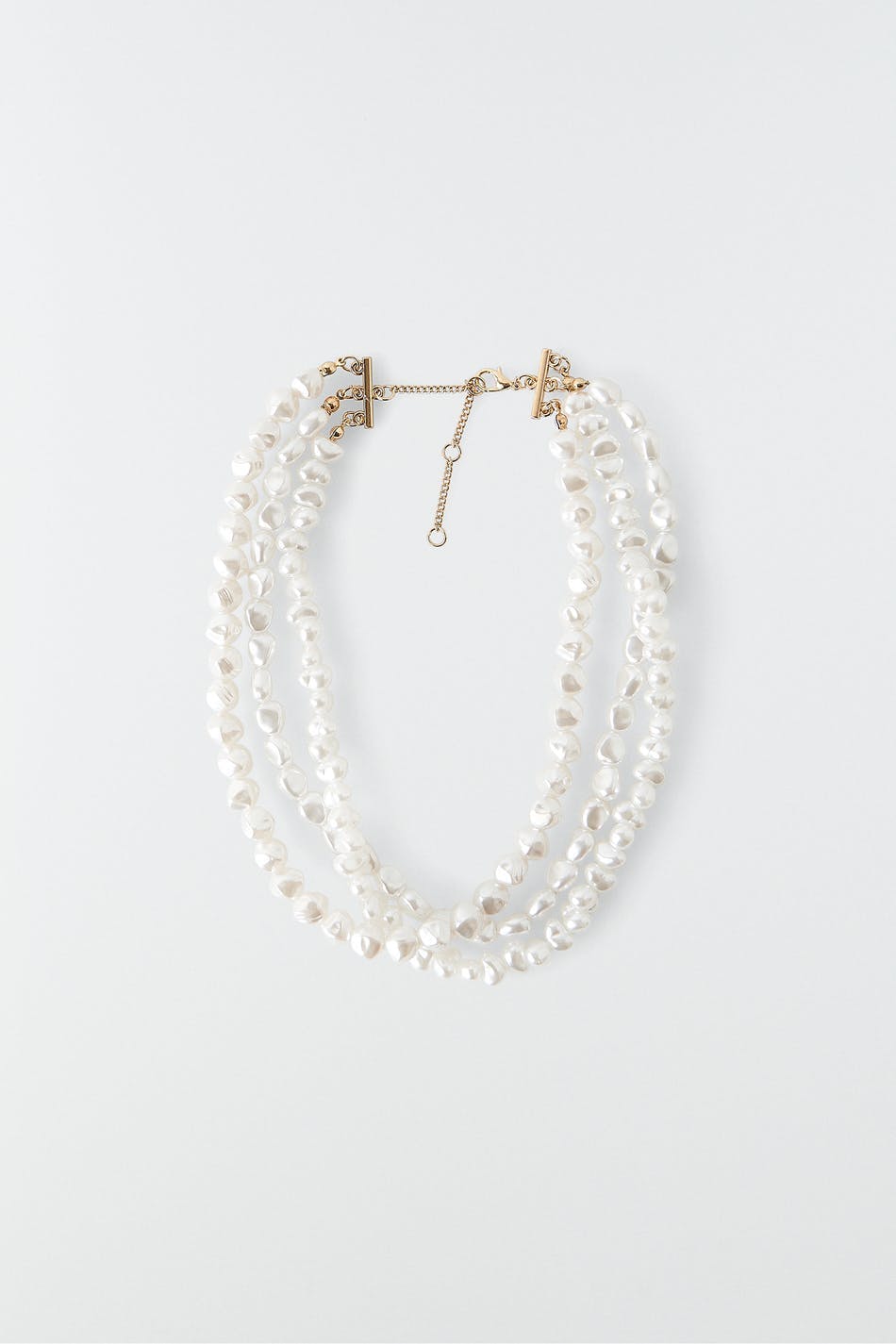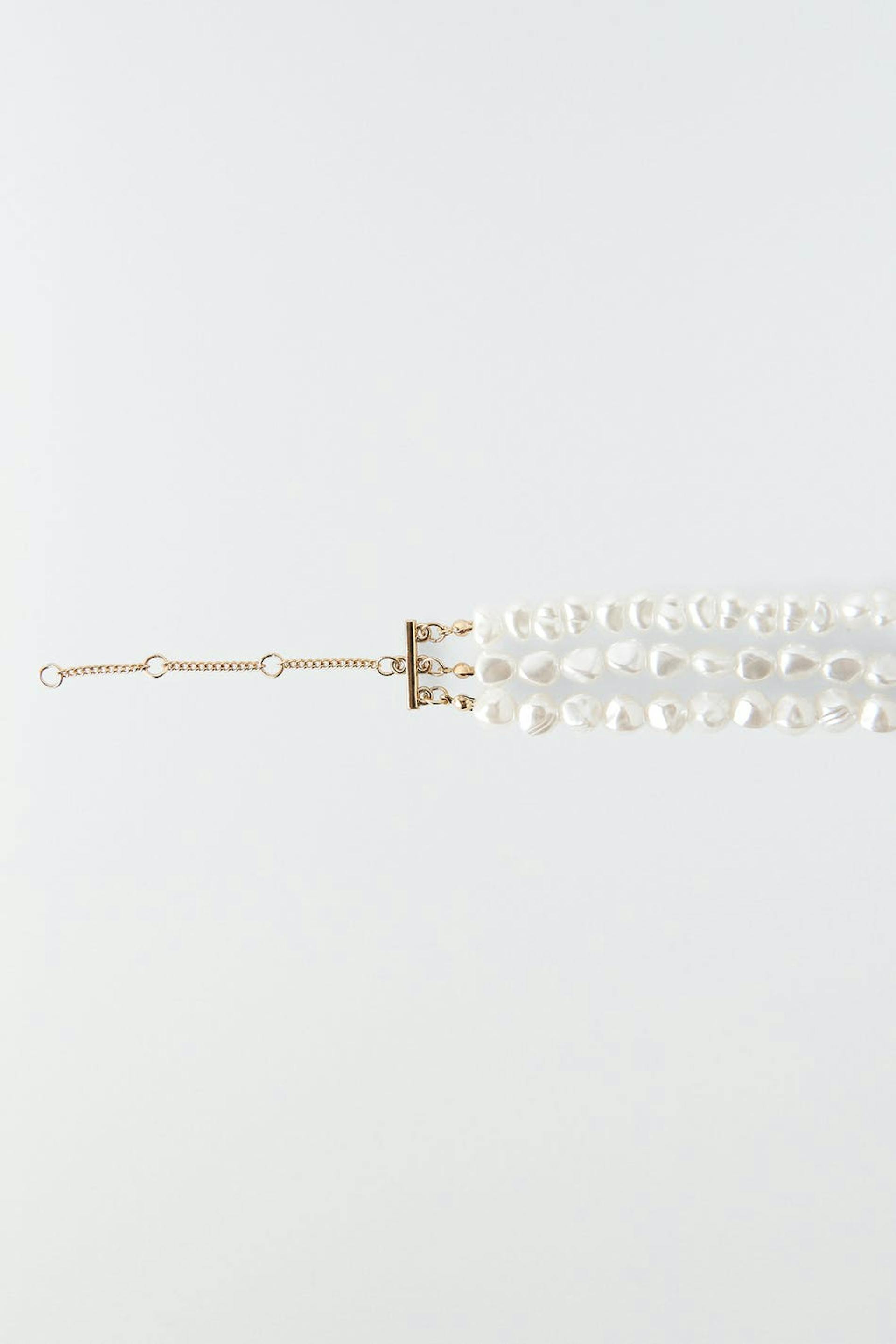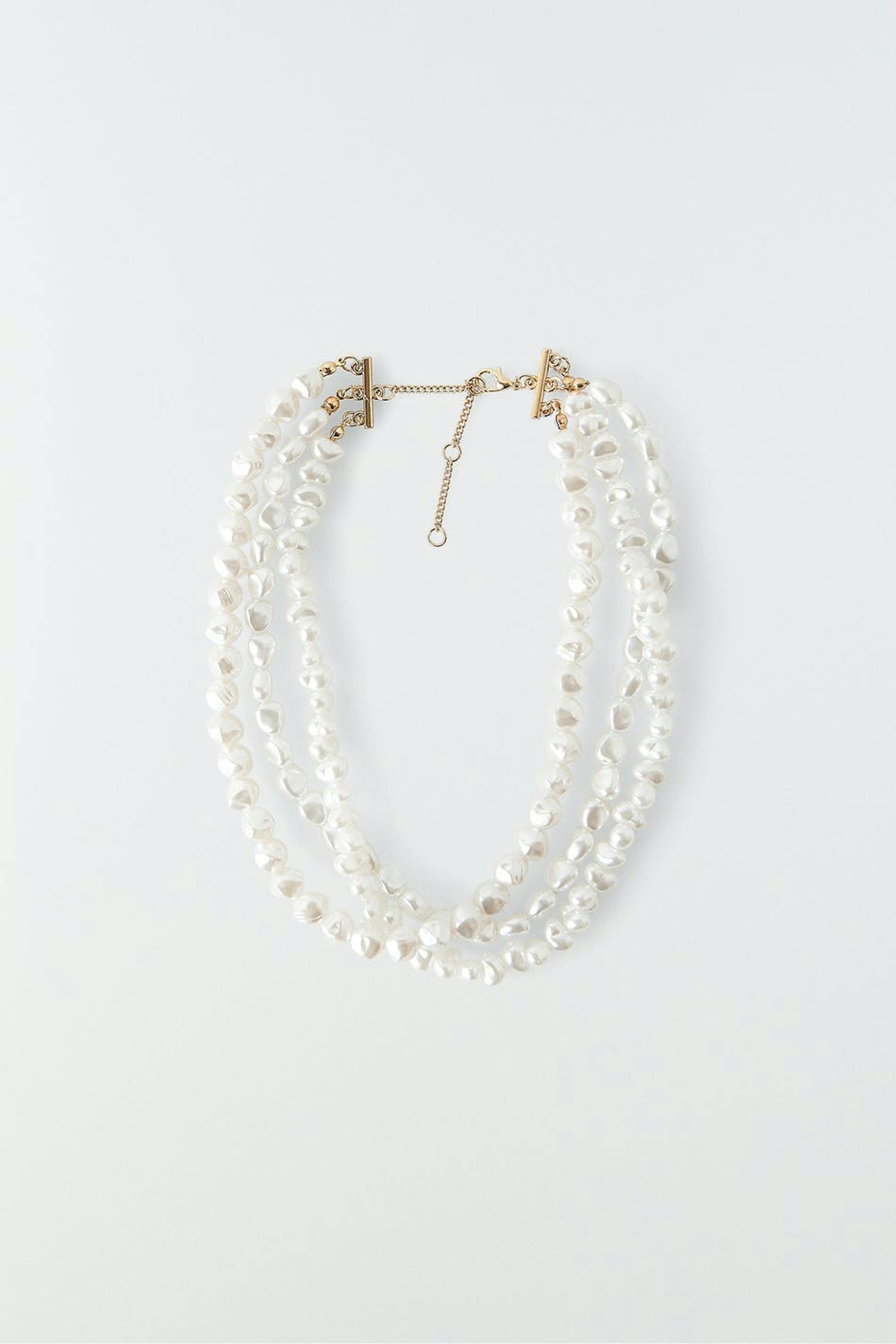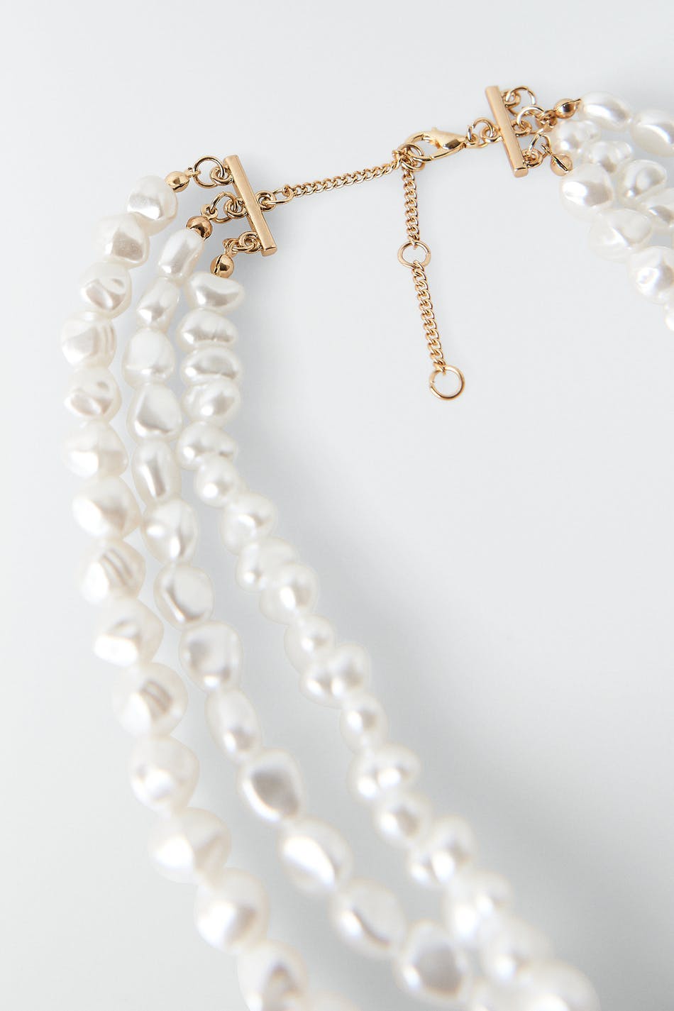 Pearl necklace with sterling freshwater pearls. The necklace is white and has an adjustable size with fastener at the back.