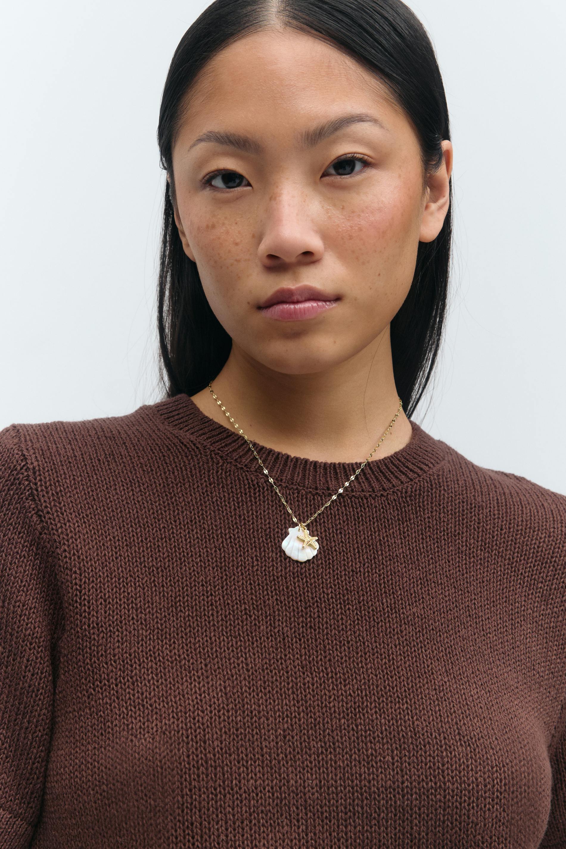 Freshwater Shell 80%, Zinc alloy 10%, Brass 10%