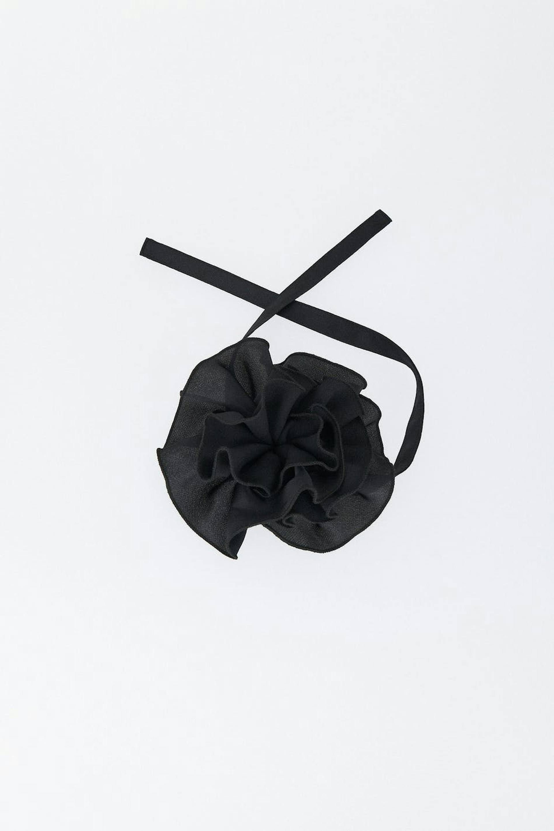 Choker in polyester with big, decorative rose.