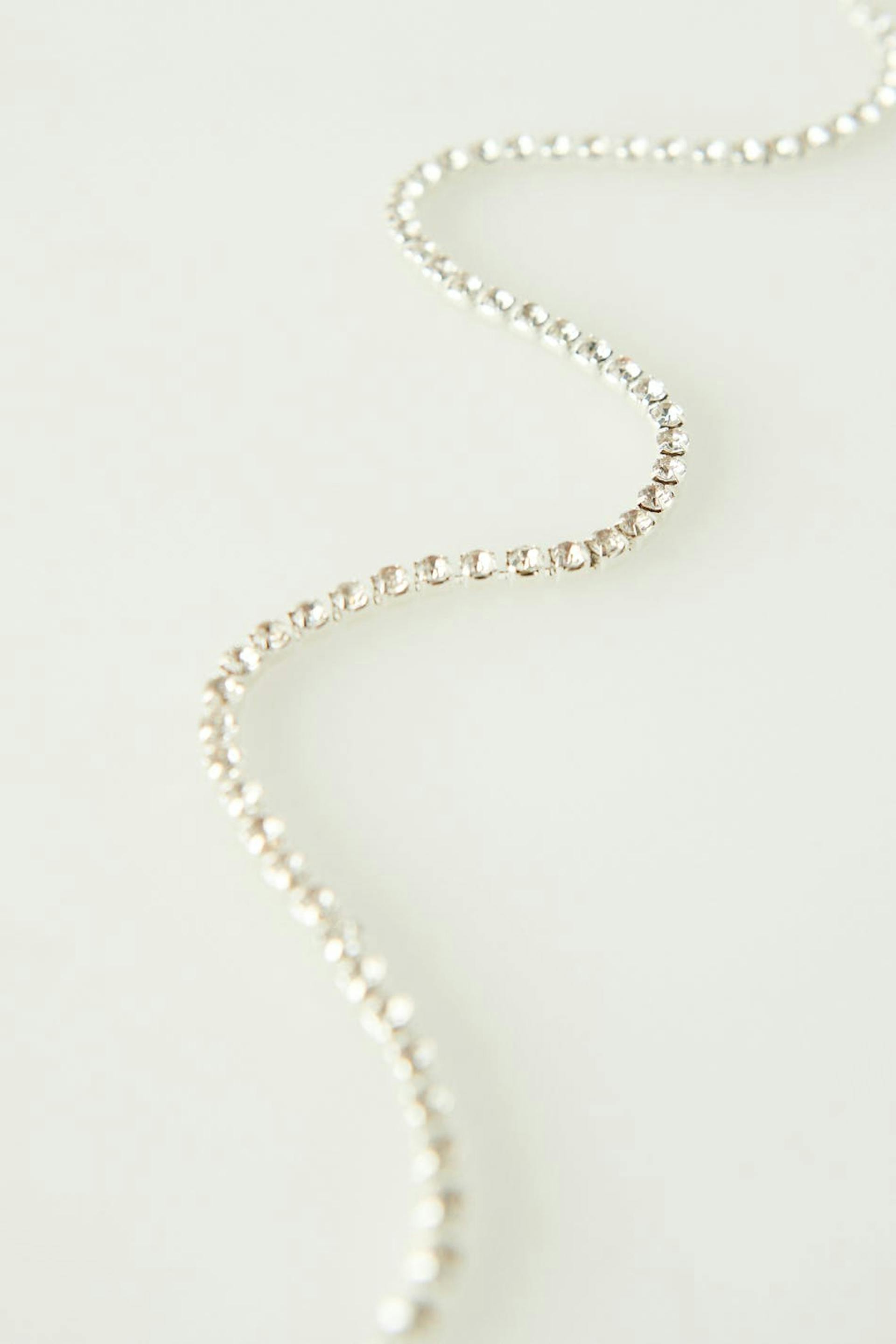 Necklace with rhinestone embellishment. The jewellery is silver coloured and has closure with lobster clasp closure.