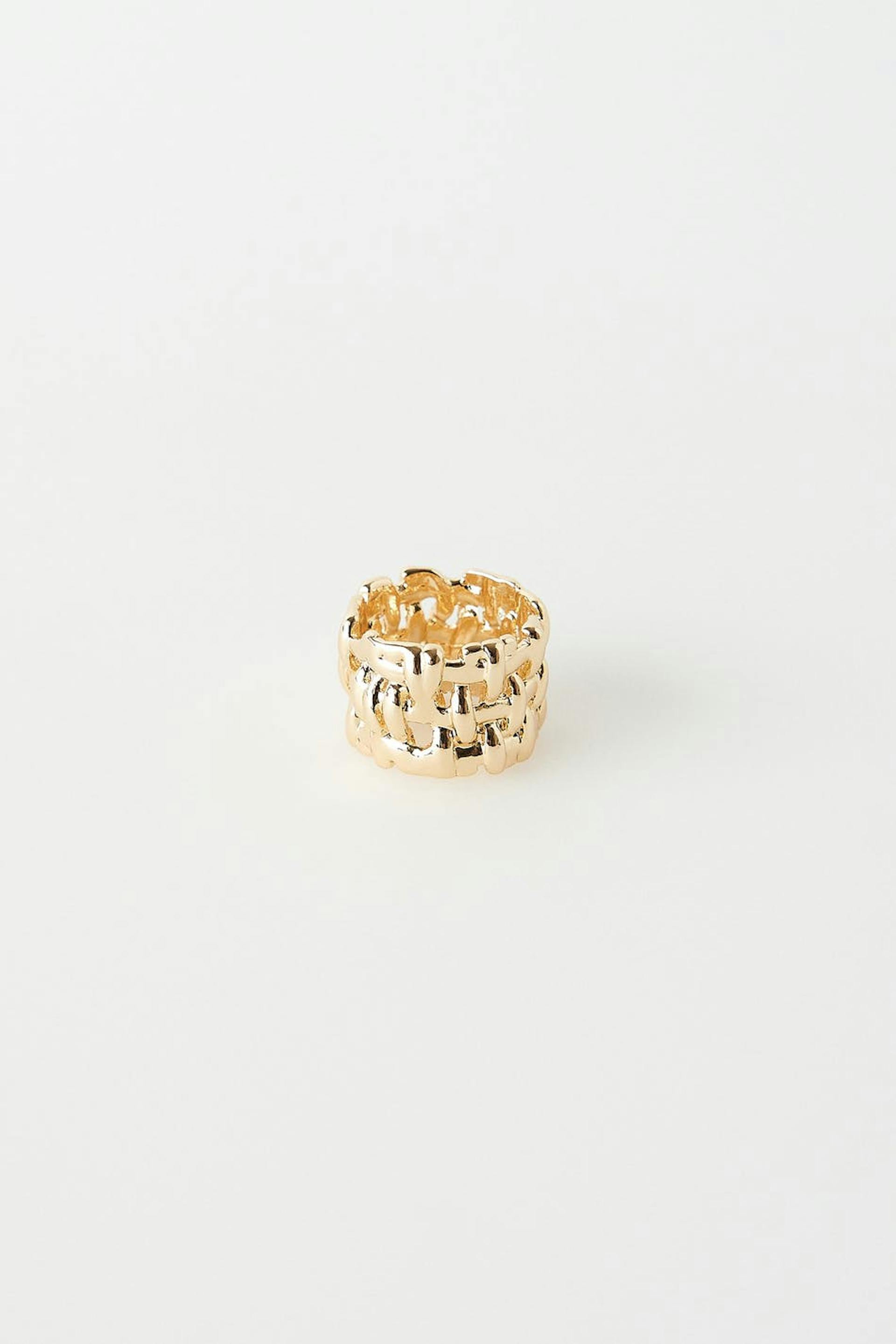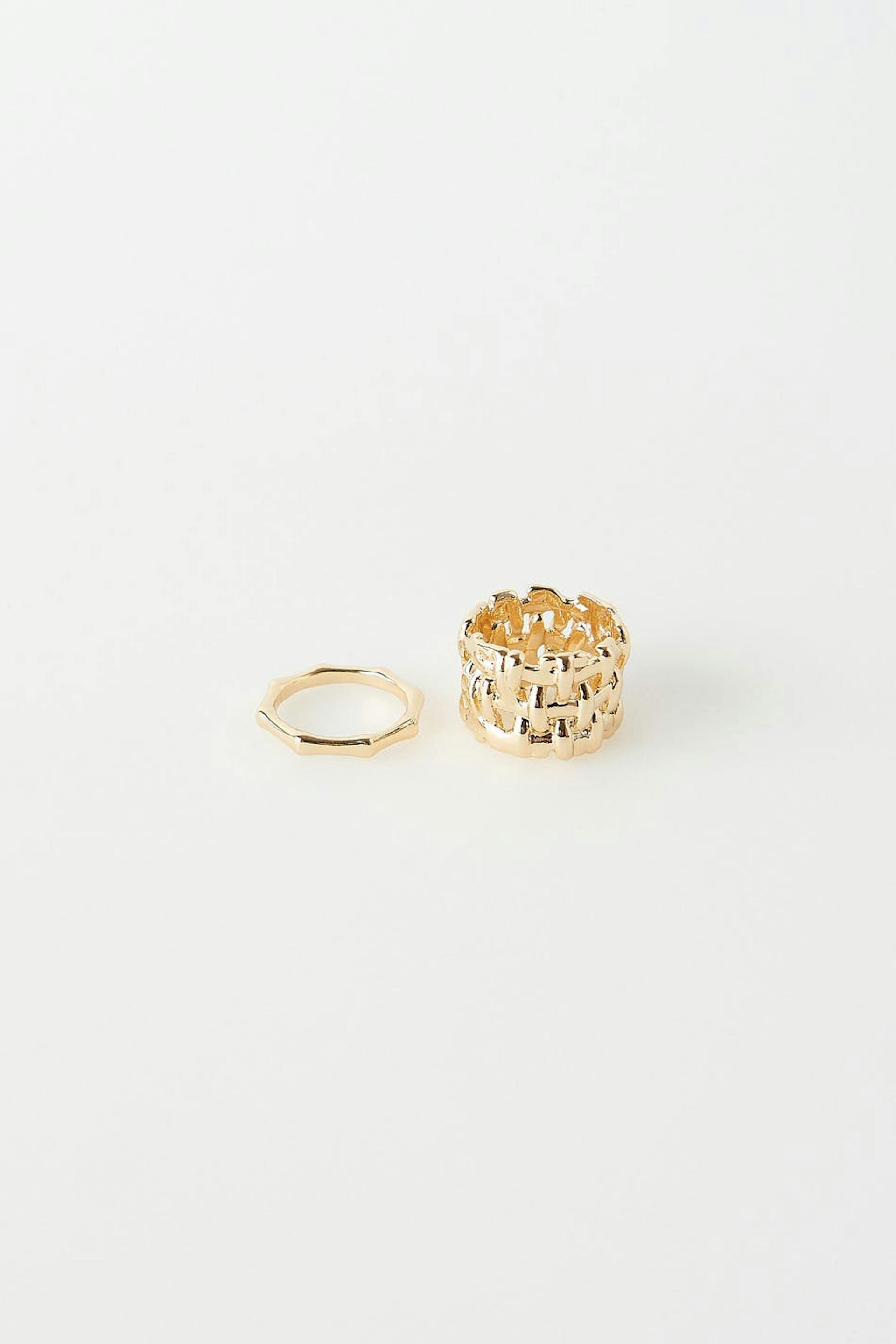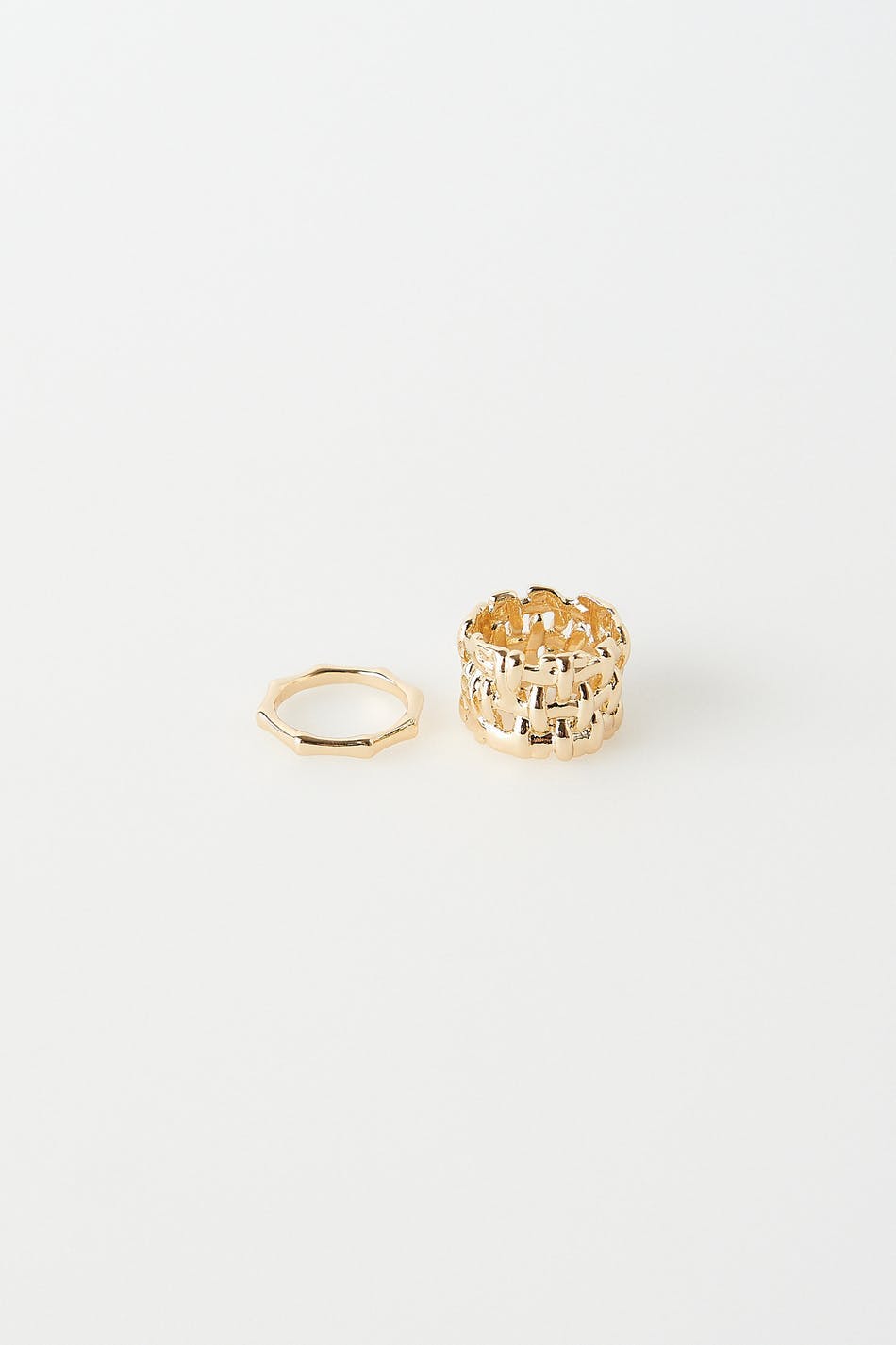 2-pack rings with mixed texture. The rings are gold coloured and have a braided design.