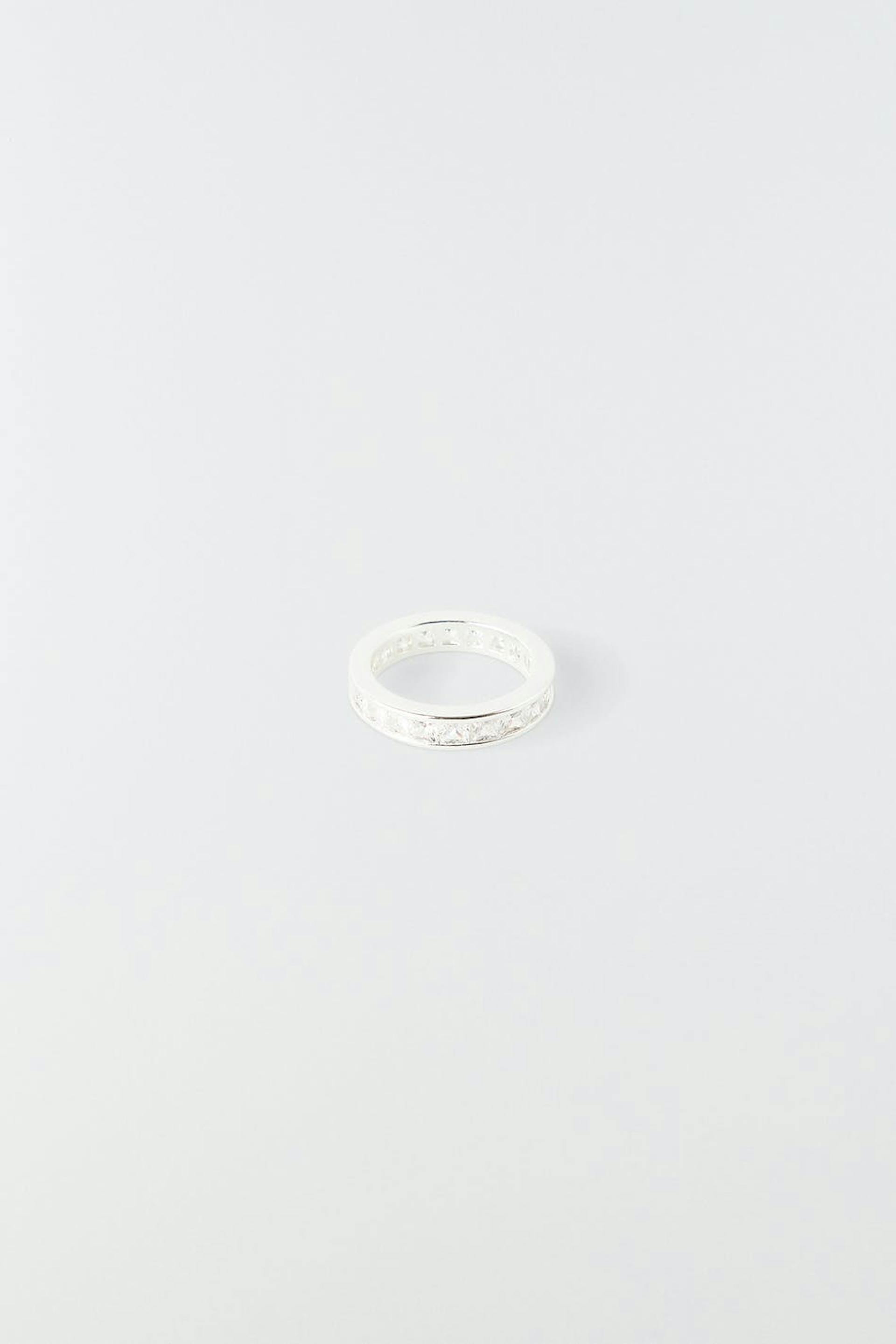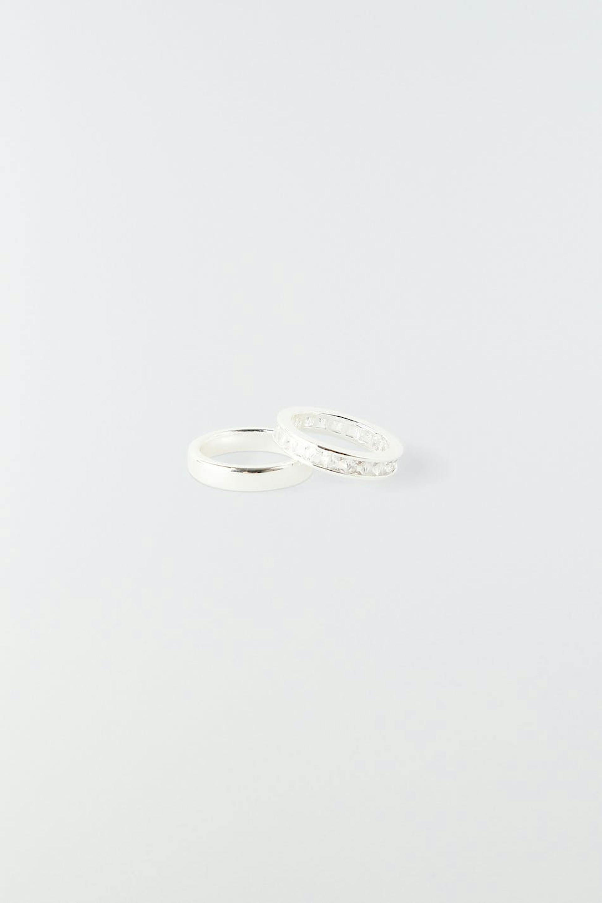 Two rings with a ring with a silver coloured rhinestone detail. The two rings are silver coloured.