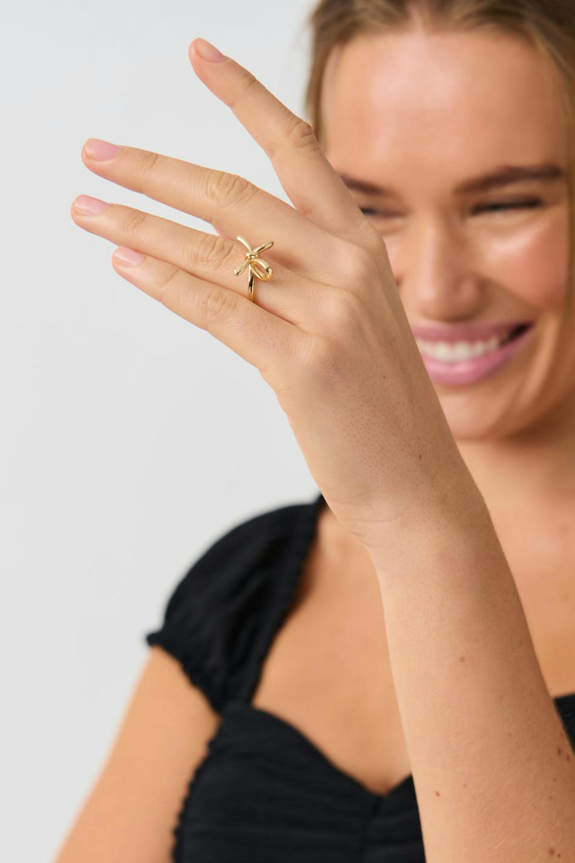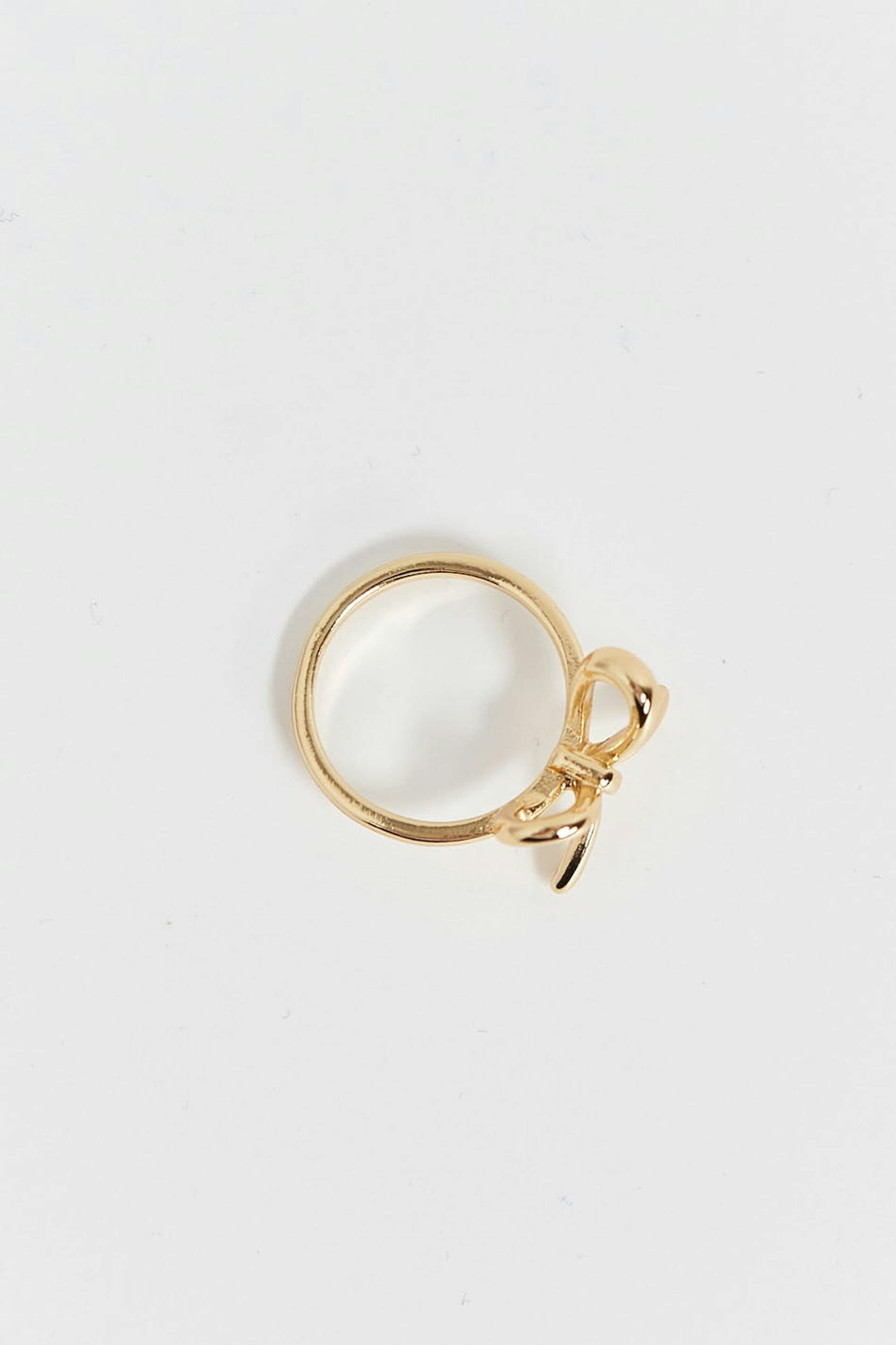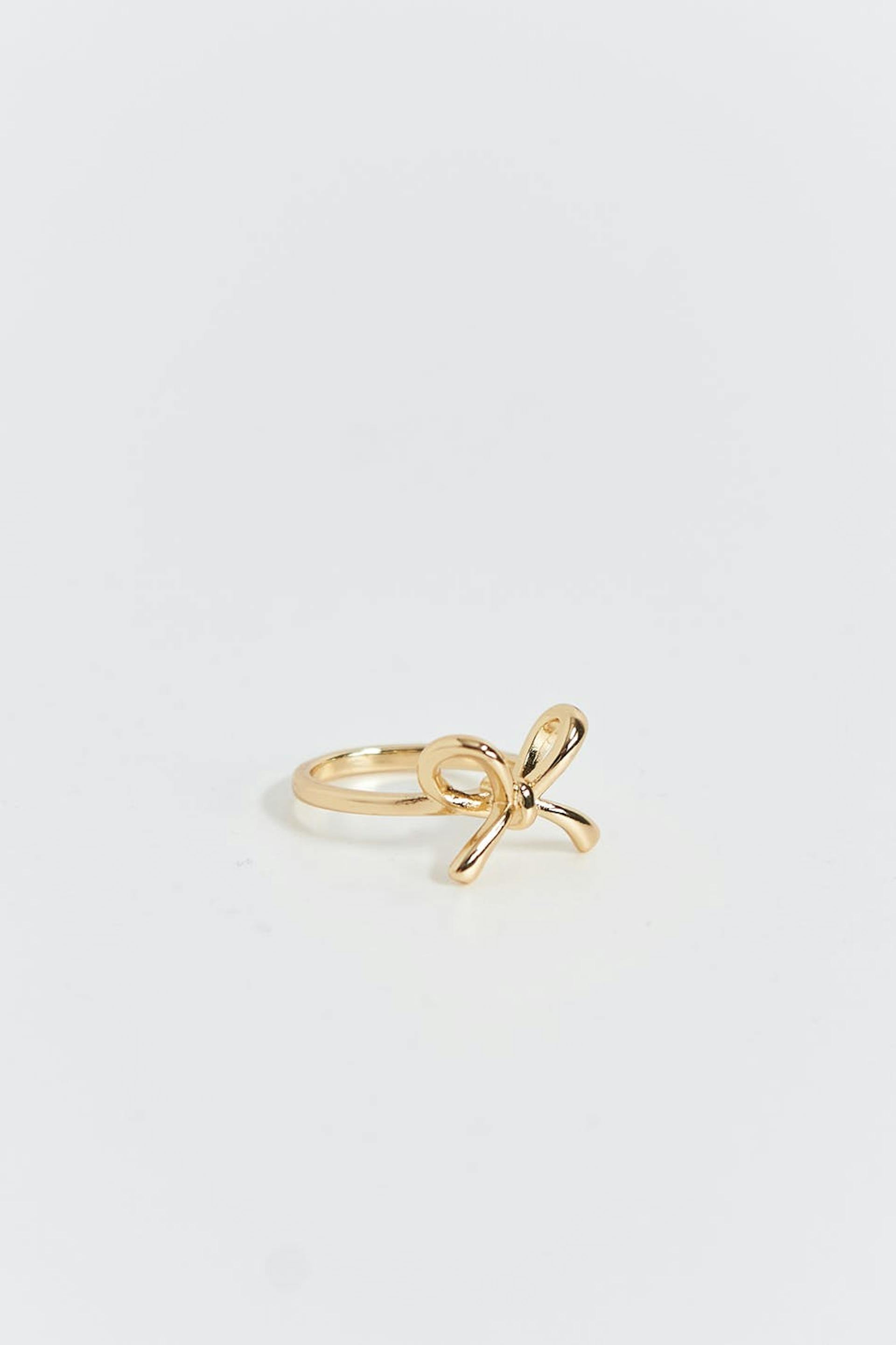 Neat ring with bow. The ring is gold coloured and has shiny finish.