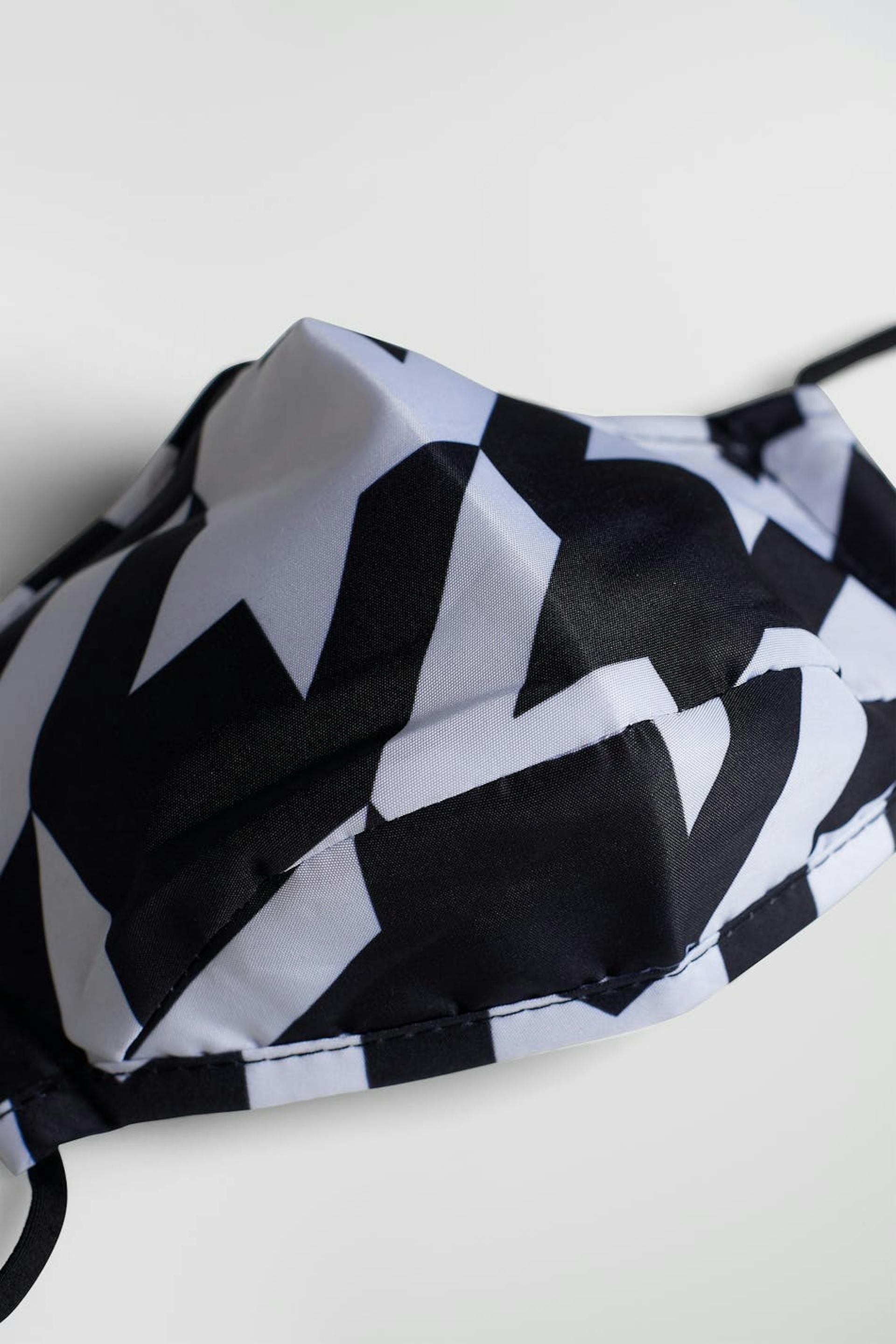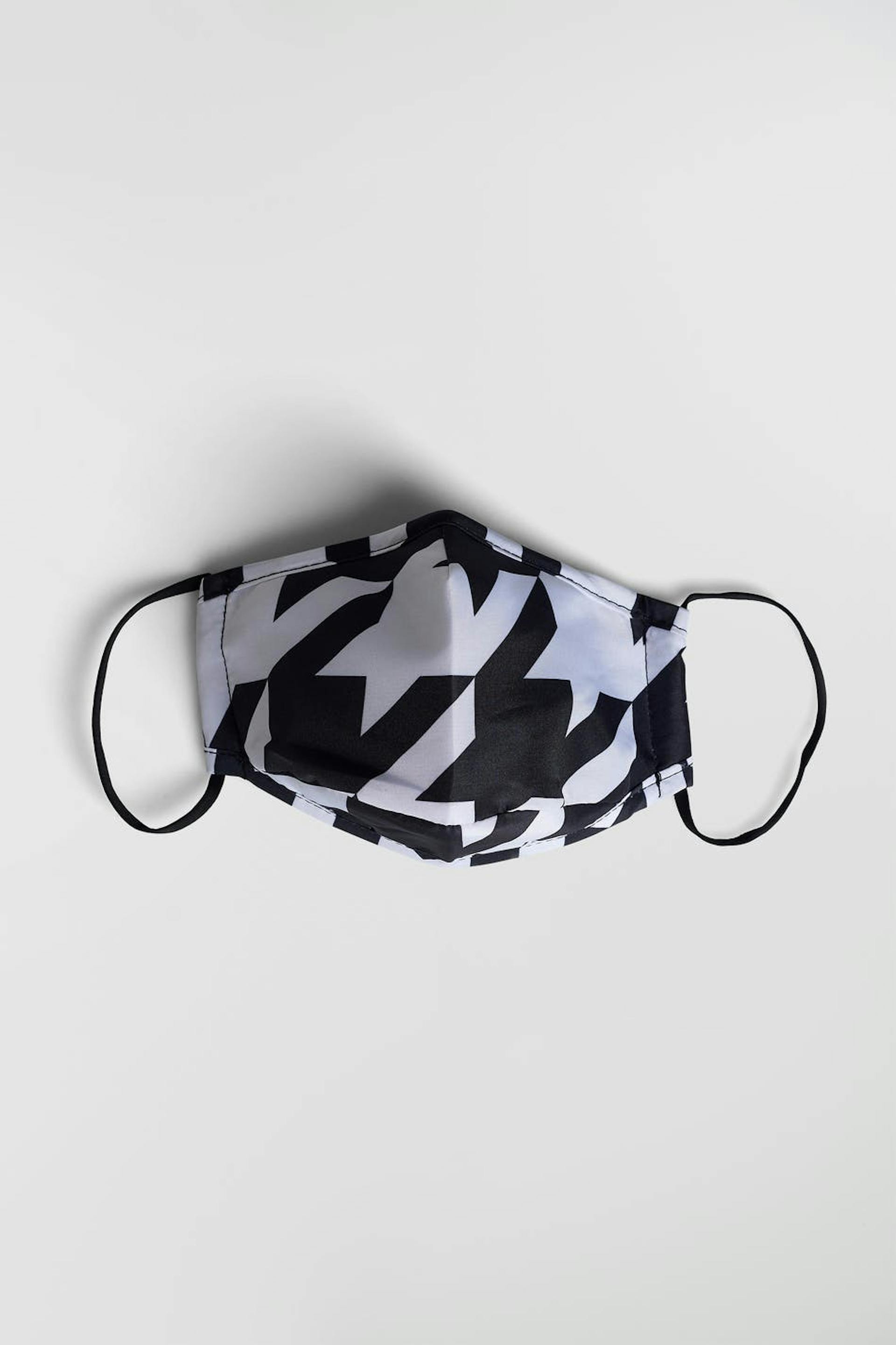Dog tooth patterned face mask for personal use with elastic strap on the sides. Warning! This is not a medical product. It provides no protection against bacterial or other types of infection. Be sure to follow all other recommendations to reduce the spread of infection. For personal use only. The product can be washed and re-used multiple times. Our returns policy is not applicable to this product. Once the product packaging seal is broken, the product will be considered used, and for reasons of hygiene the product can no longer be returned.