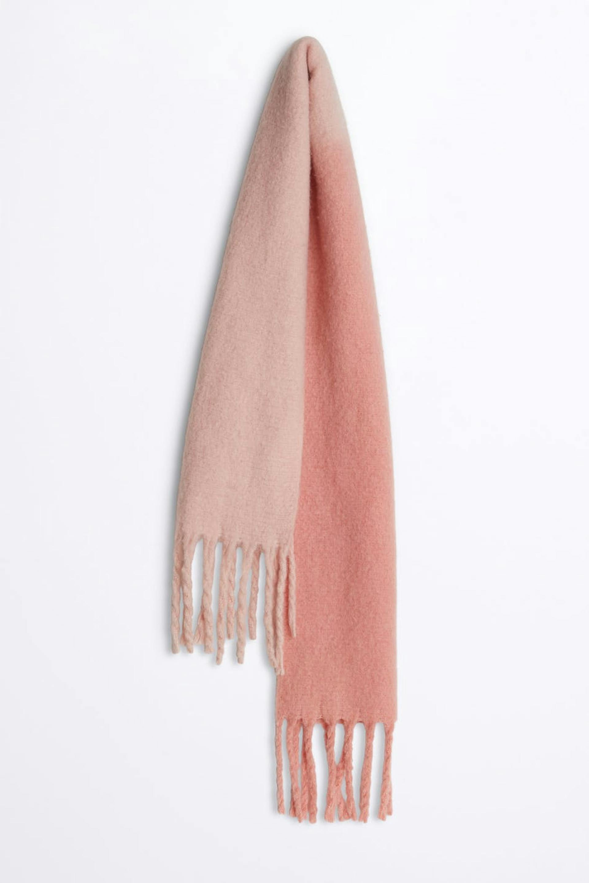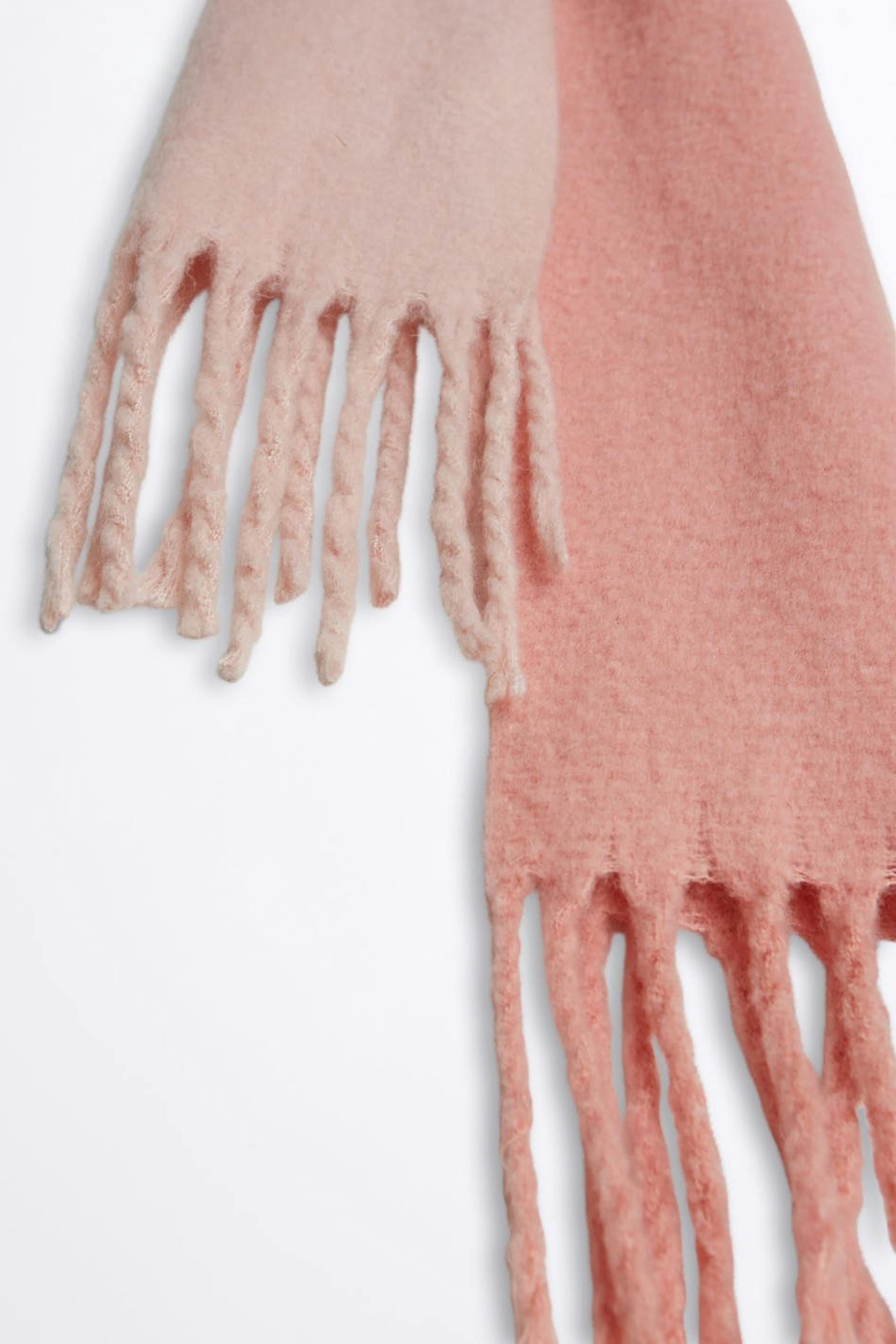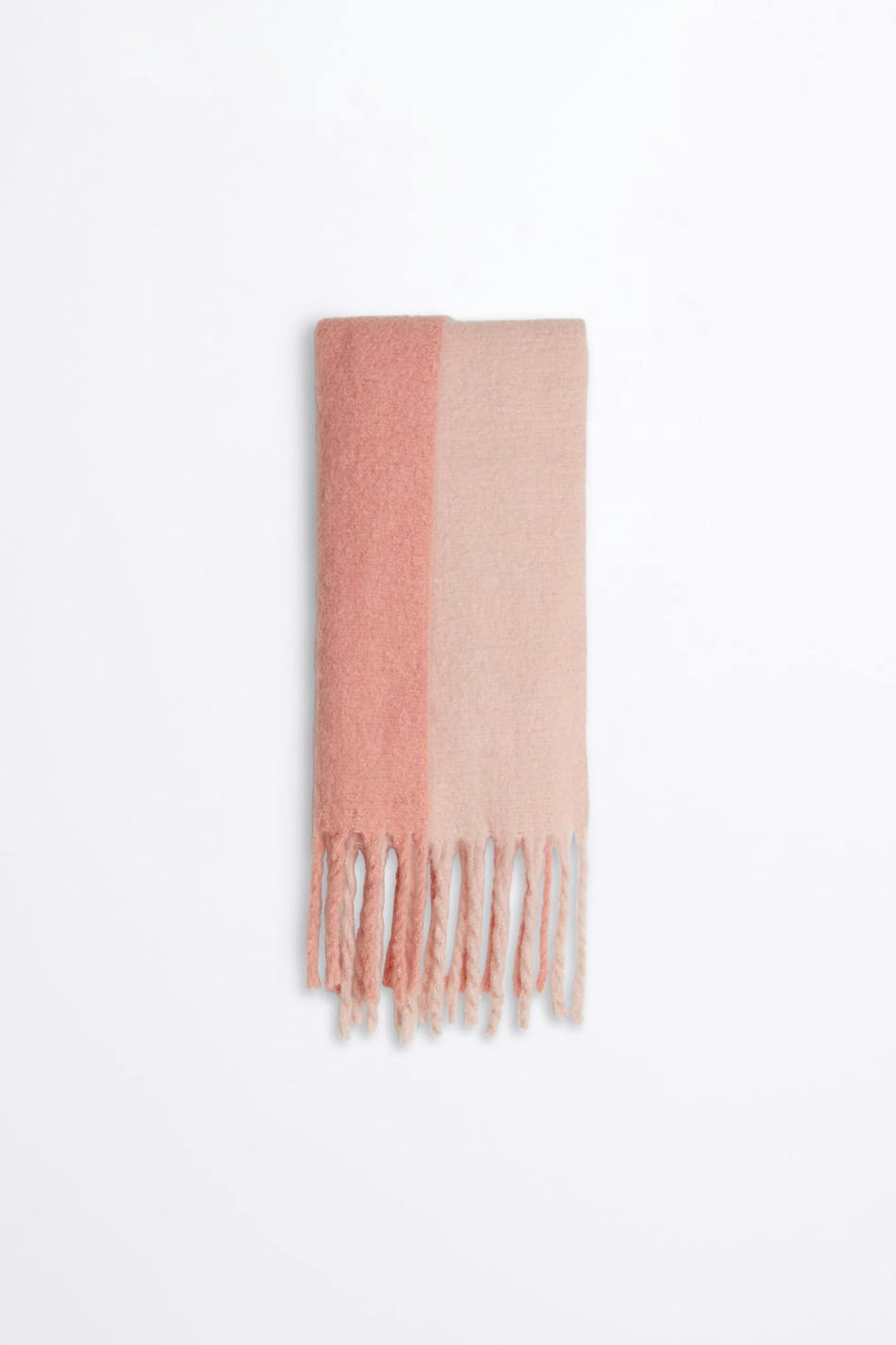 Brushed scarf. The scarf is pink.