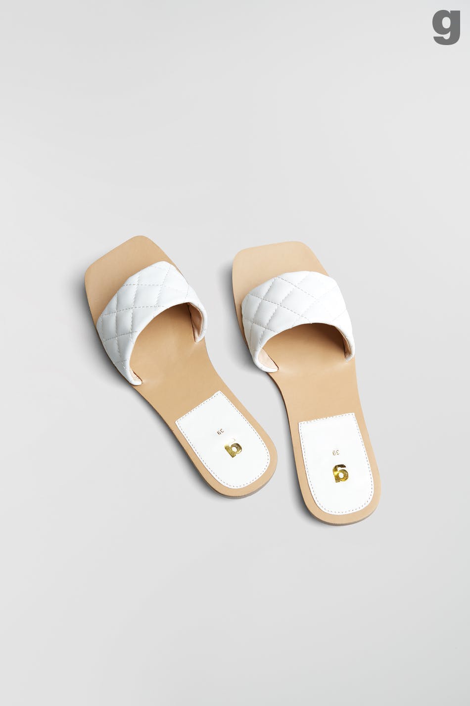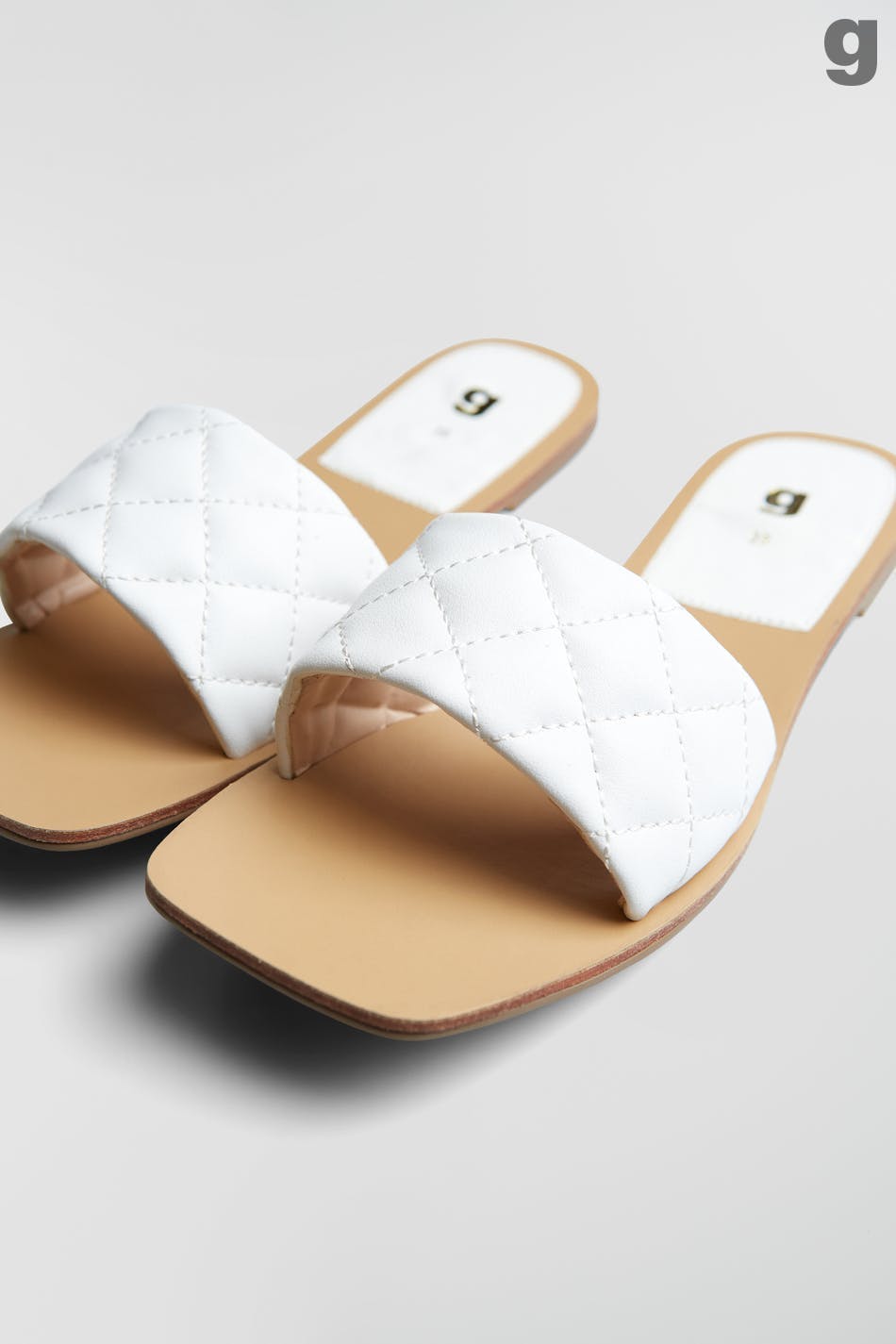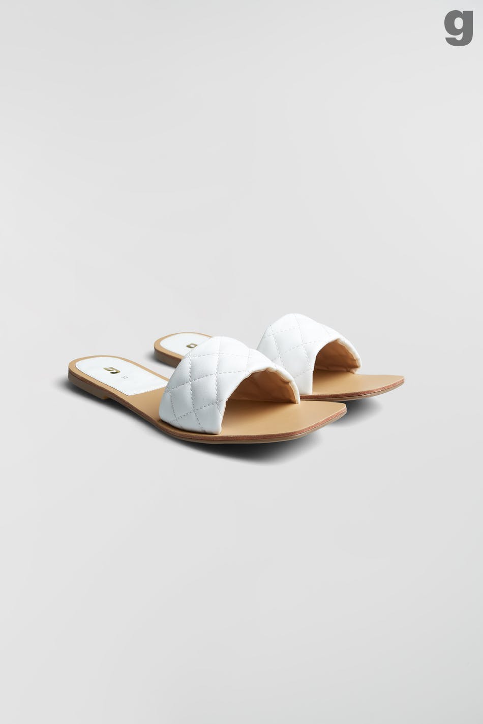 Flat sandals with quilted detail in PU. The sandals are white.