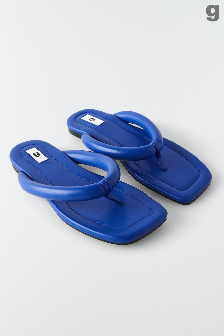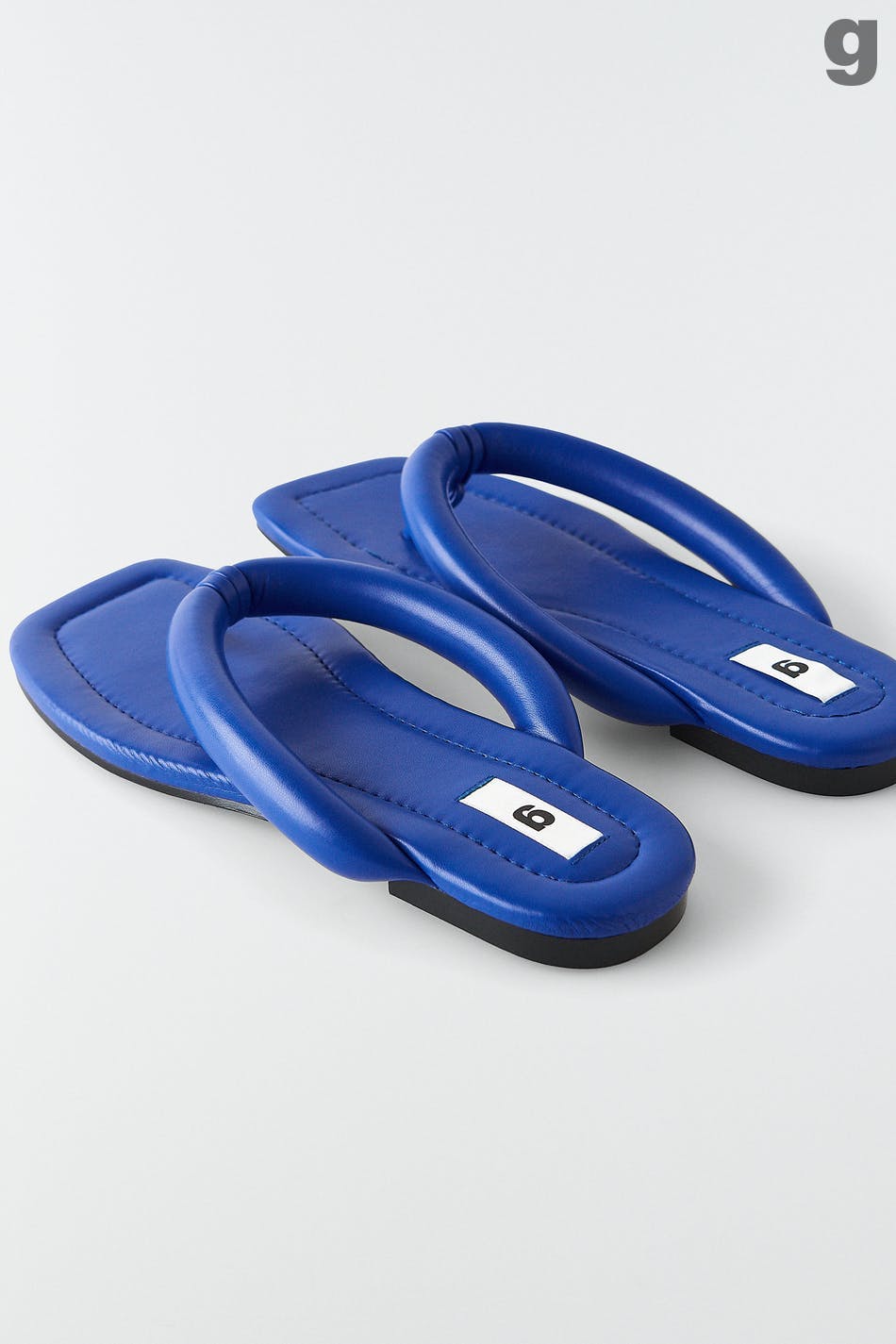 Quilted sandal in PU with a padded toe strap. The sandal is blue.