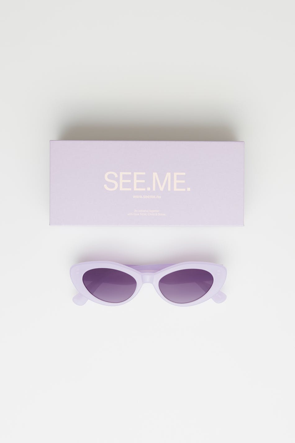 Chimi X Gina tricot. Sunglasses in collaboration with Chimi & Braive. Fashionable sunglasses. The sunglasses are purple.