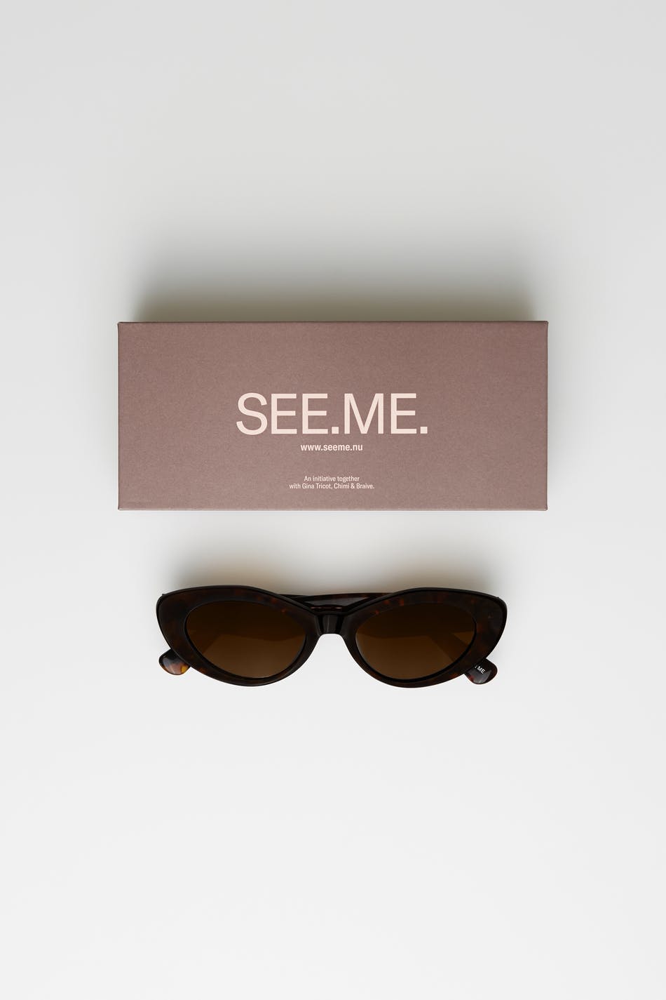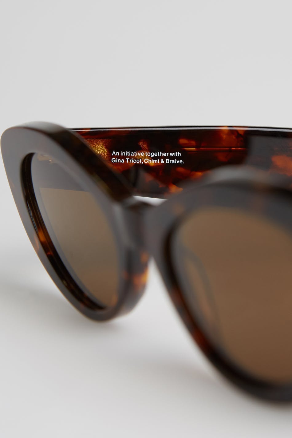 Chimi X Gina tricot. Sunglasses in collaboration with Chimi & Braive. Fashionable sunglasses. The sunglasses is brown.