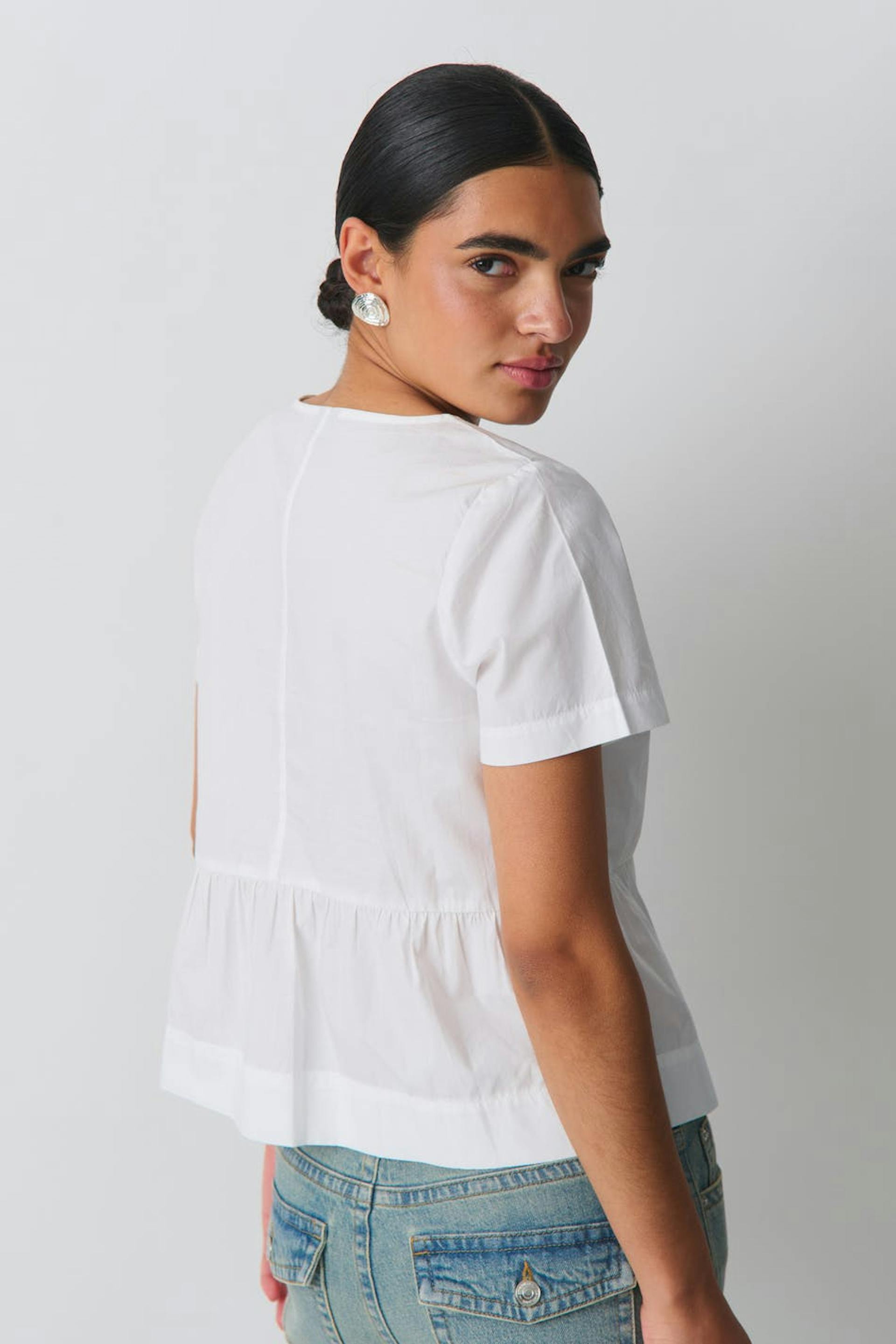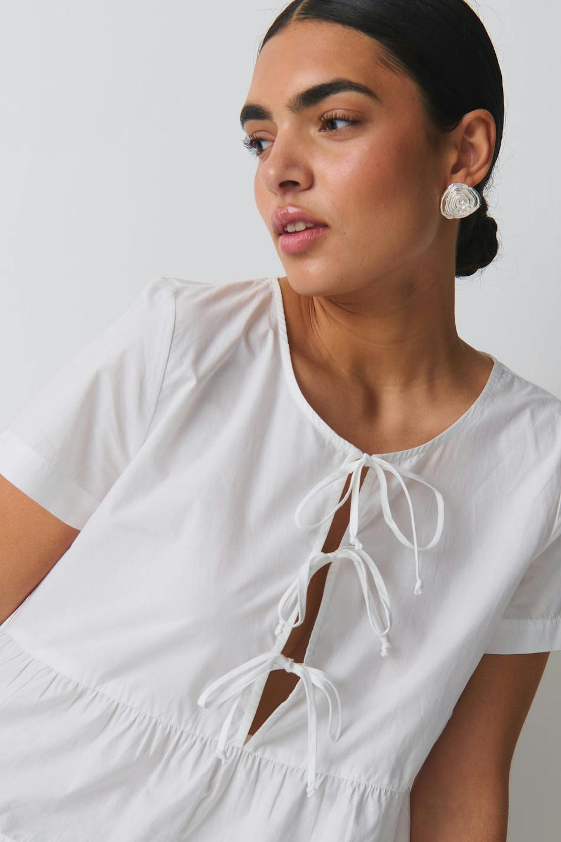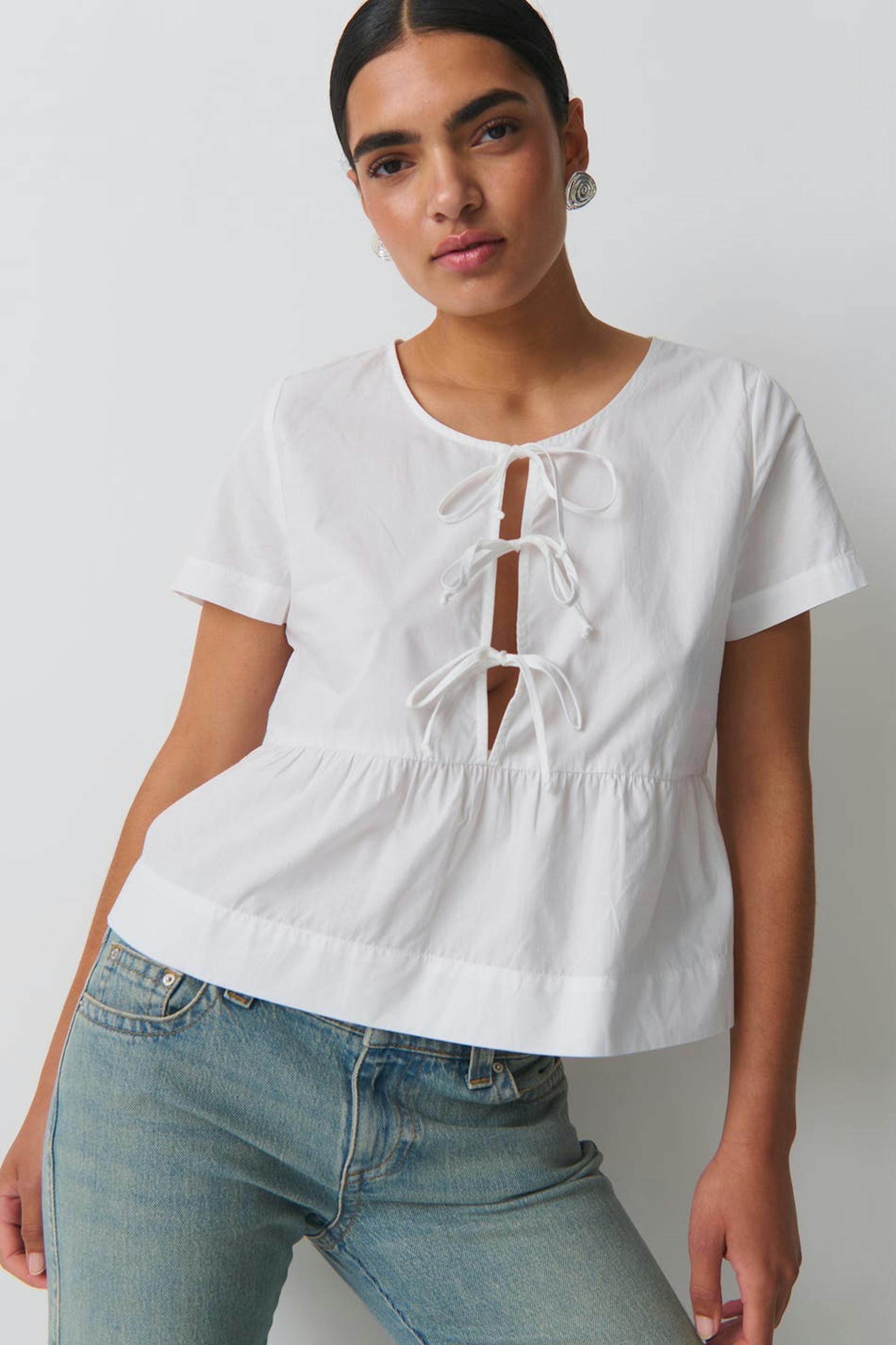peplum tie blouse