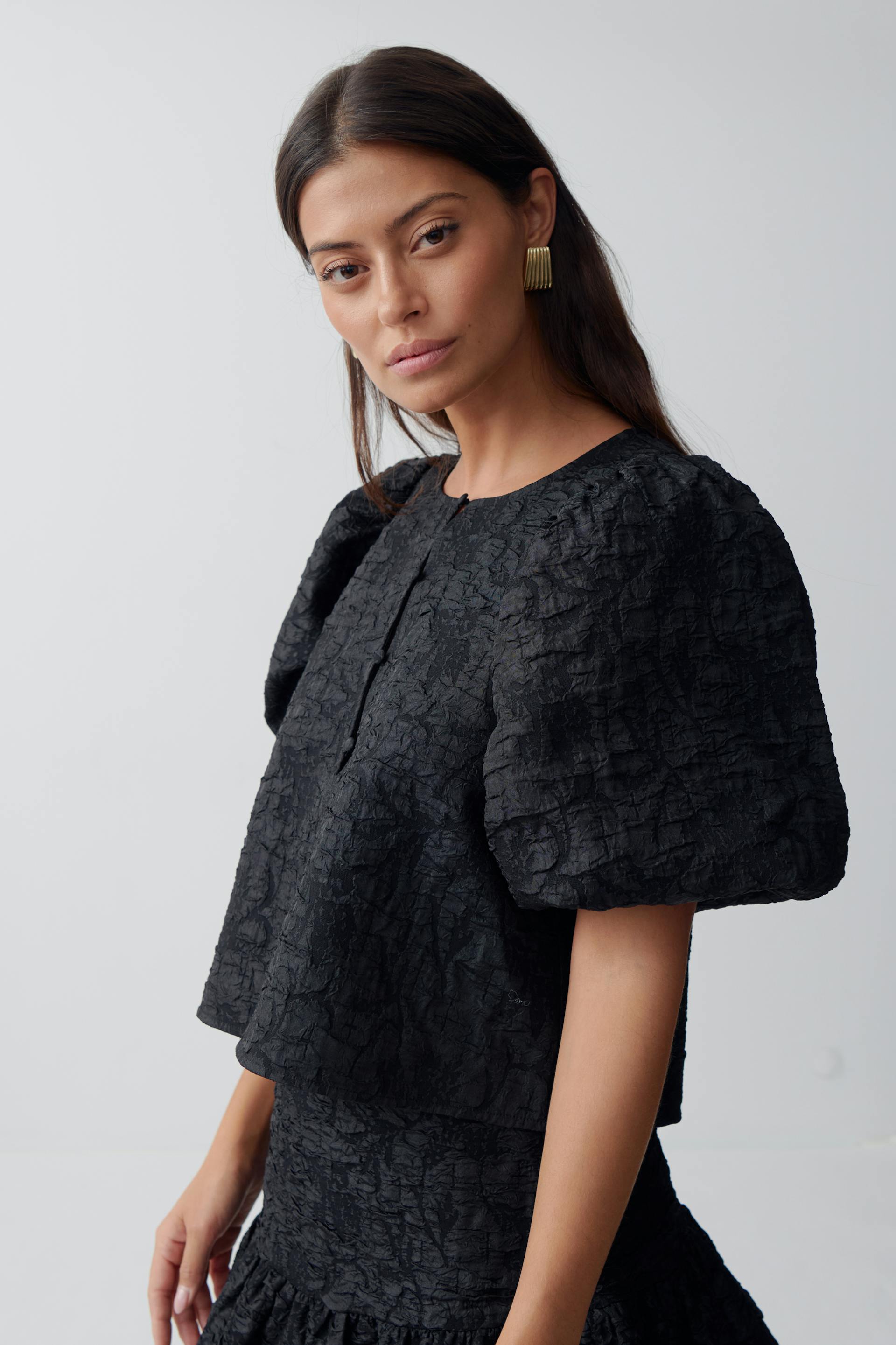 brocade puff sleeve blouse