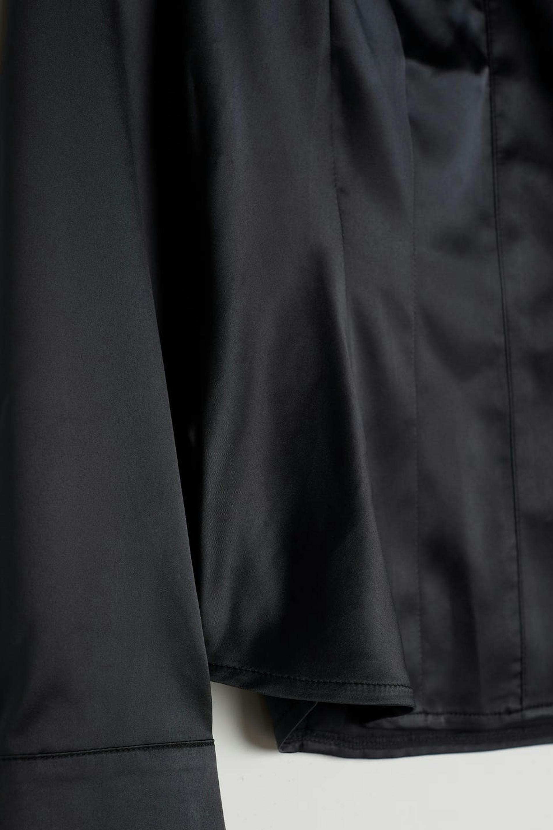 Shirt with slim fit. The shirt is grey and has soft satin material. It has a collar, seam details at the front, wide cuffs and a hidden button closure at the front.