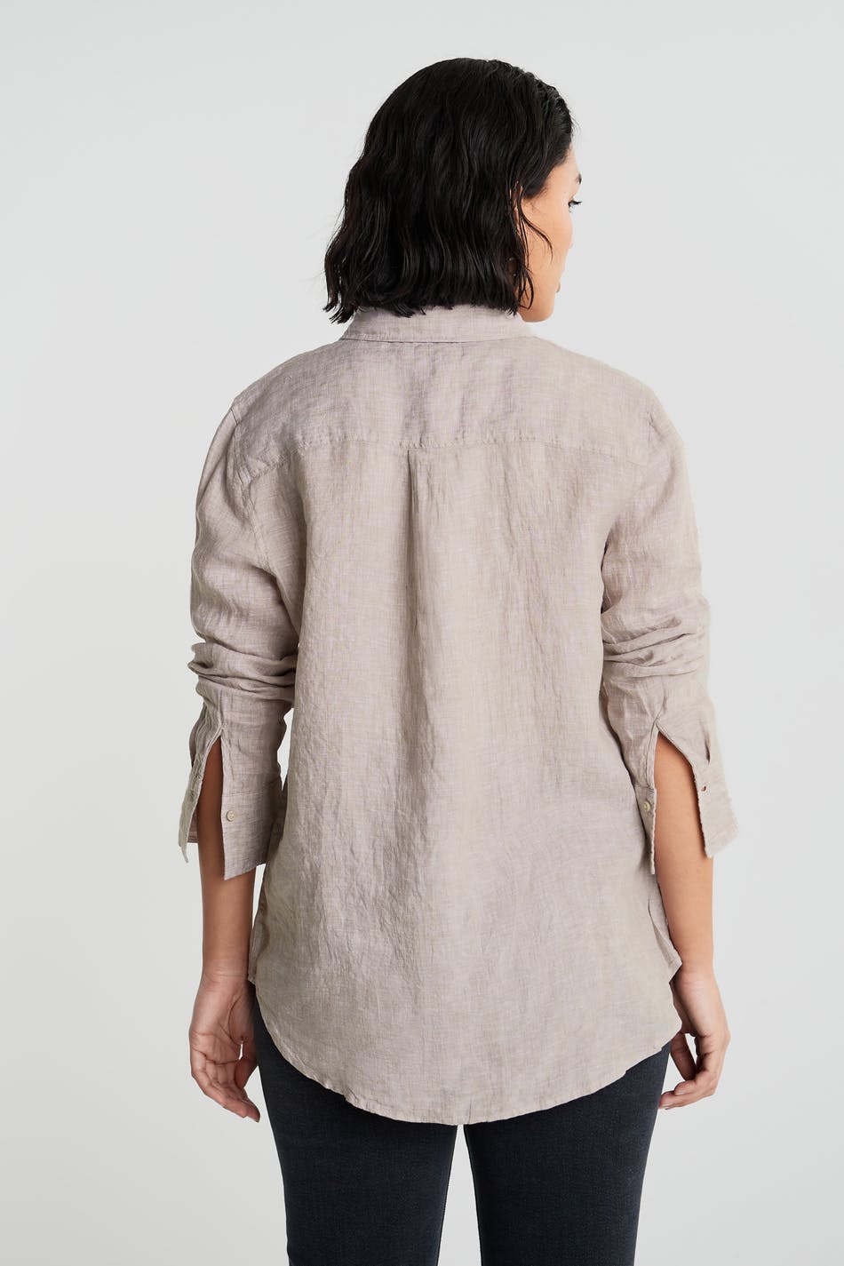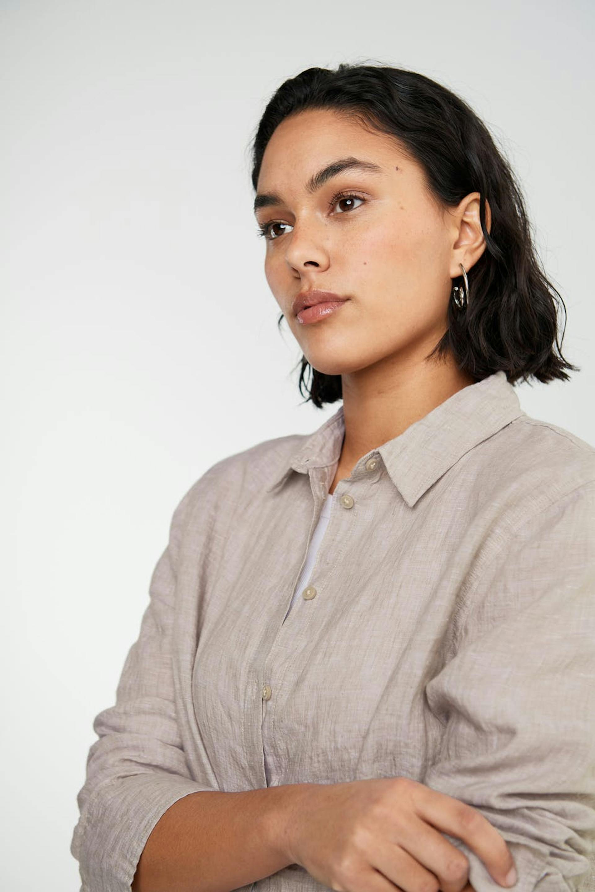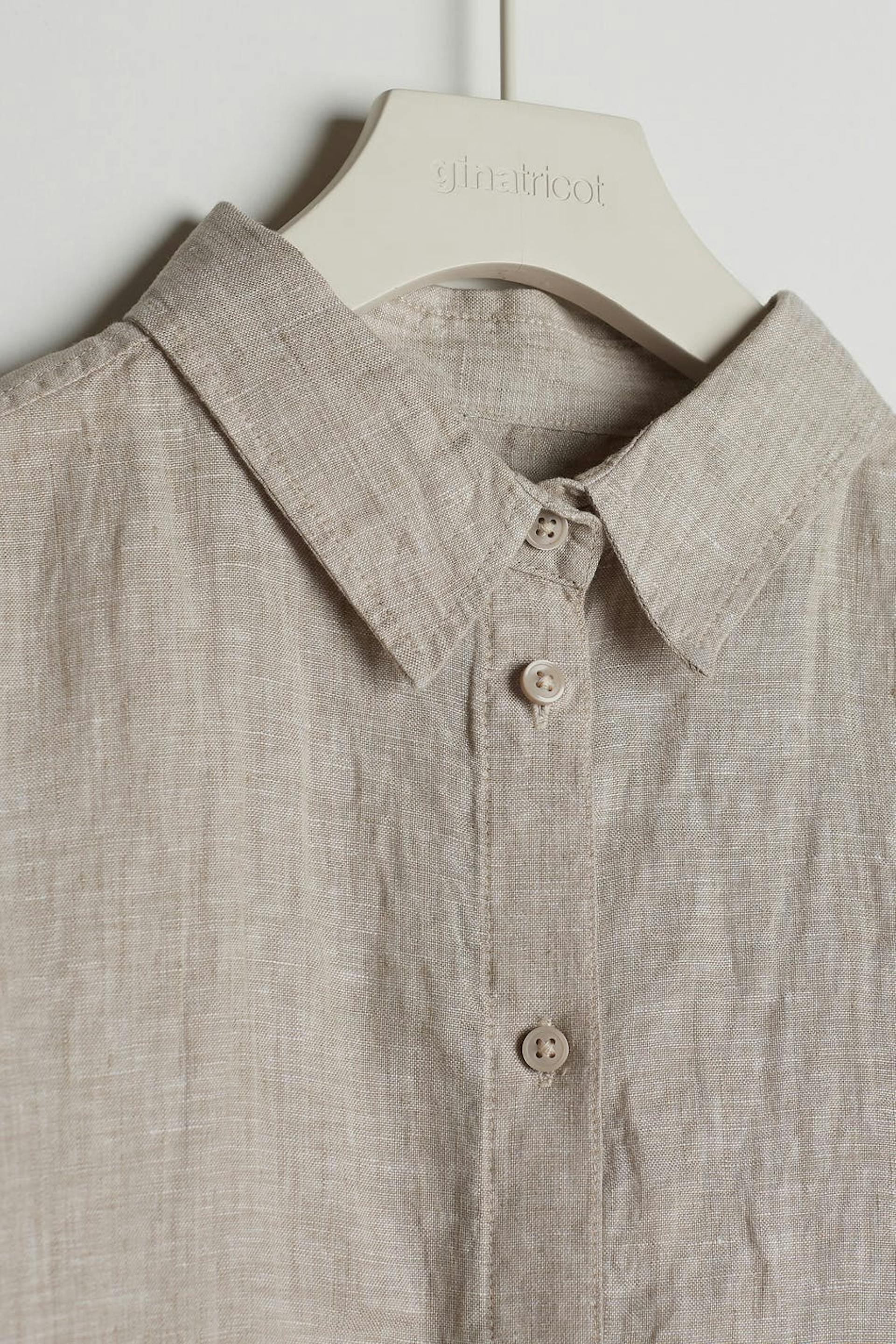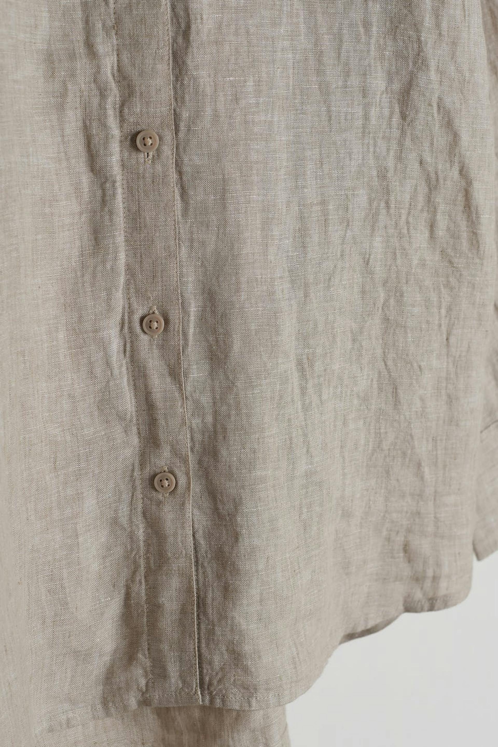 Shirt with a relaxed fit. The shirt is beige and has buttons at the front. It is made of linen.