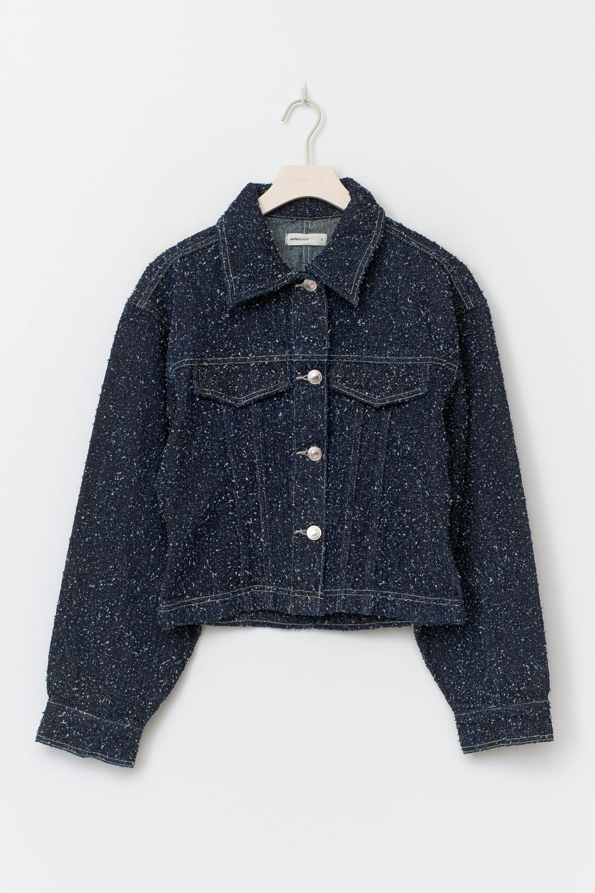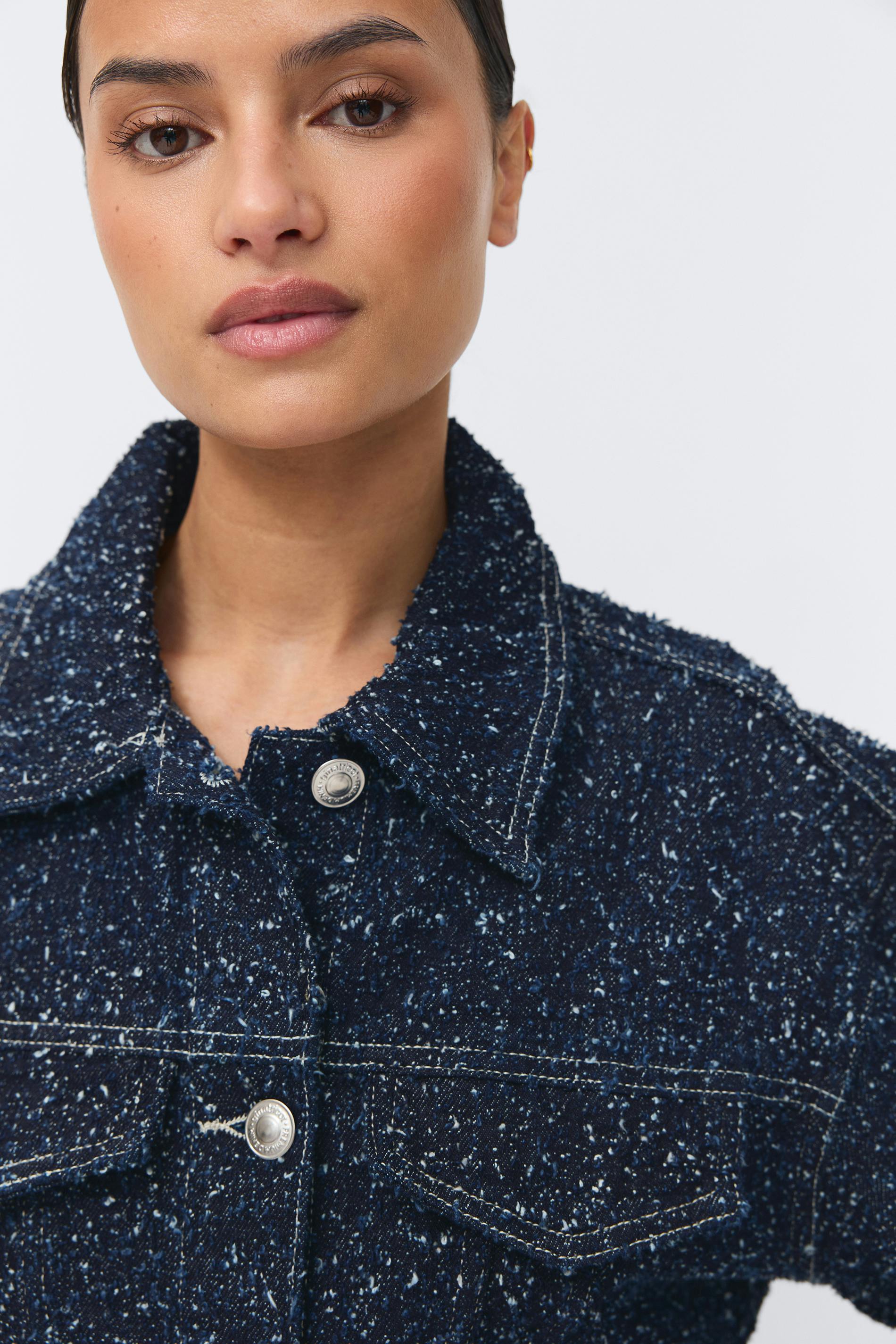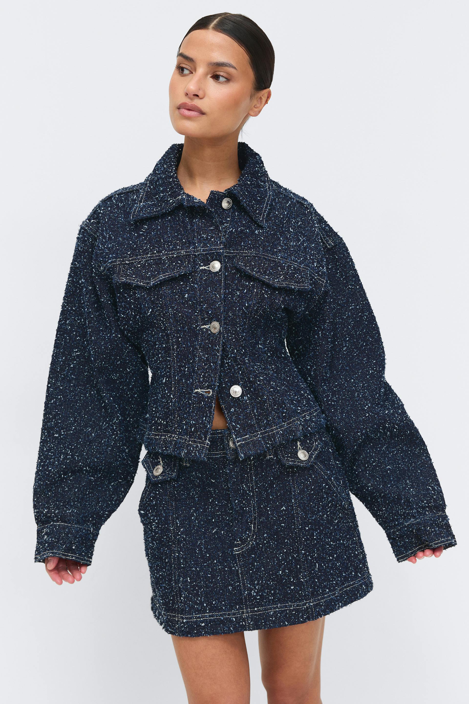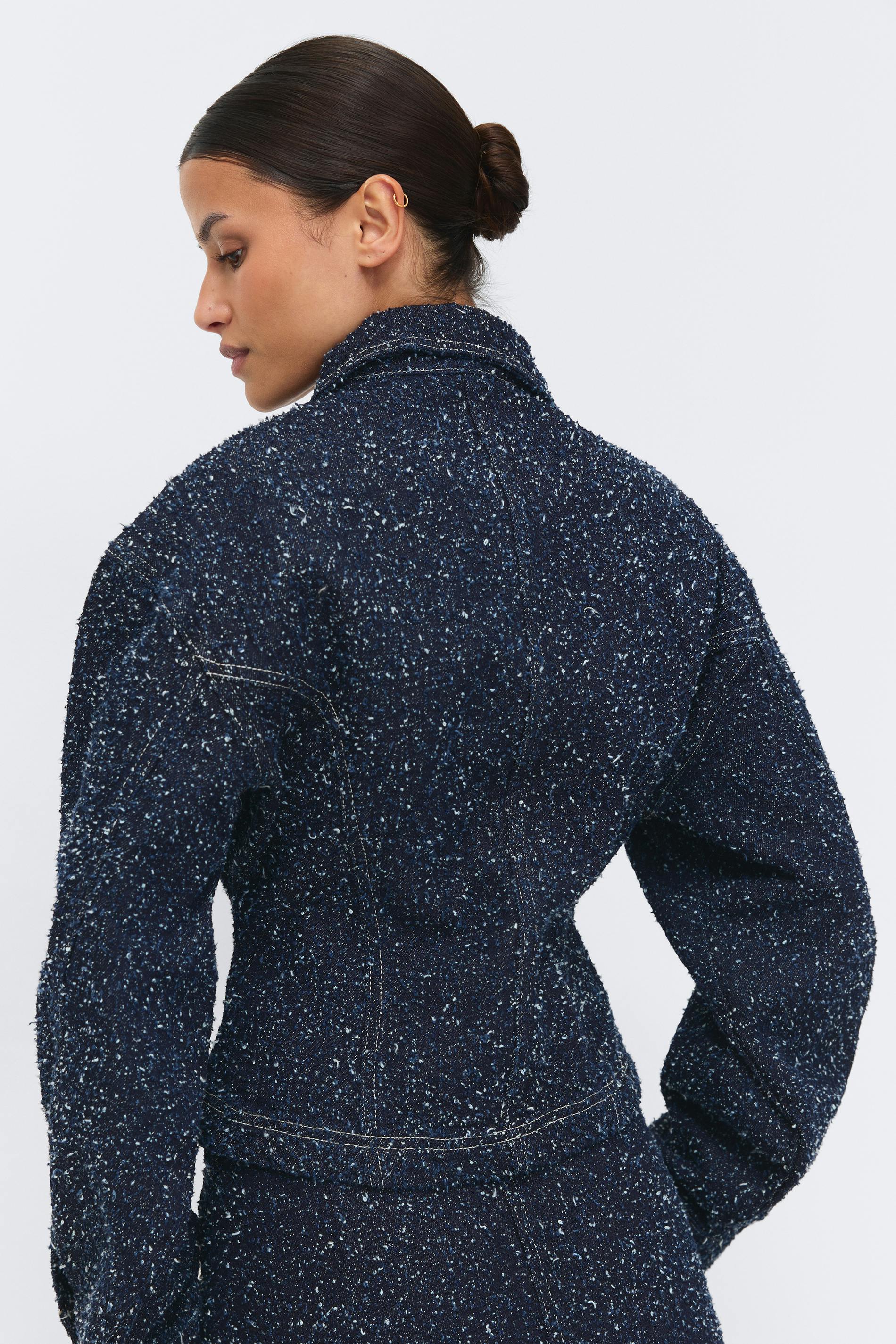 Peplum boucle denim jacket