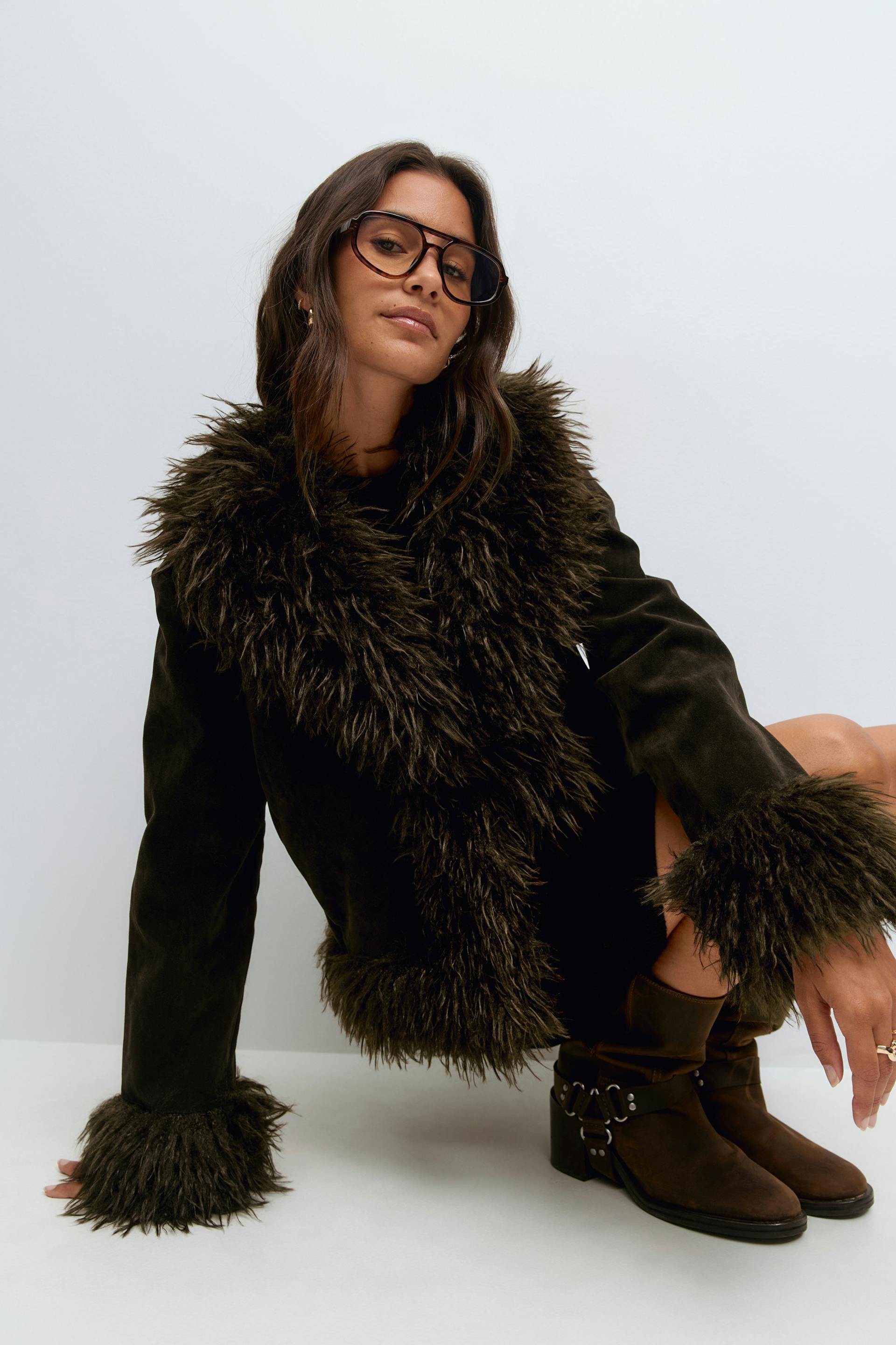 Faux suede fur jacket
