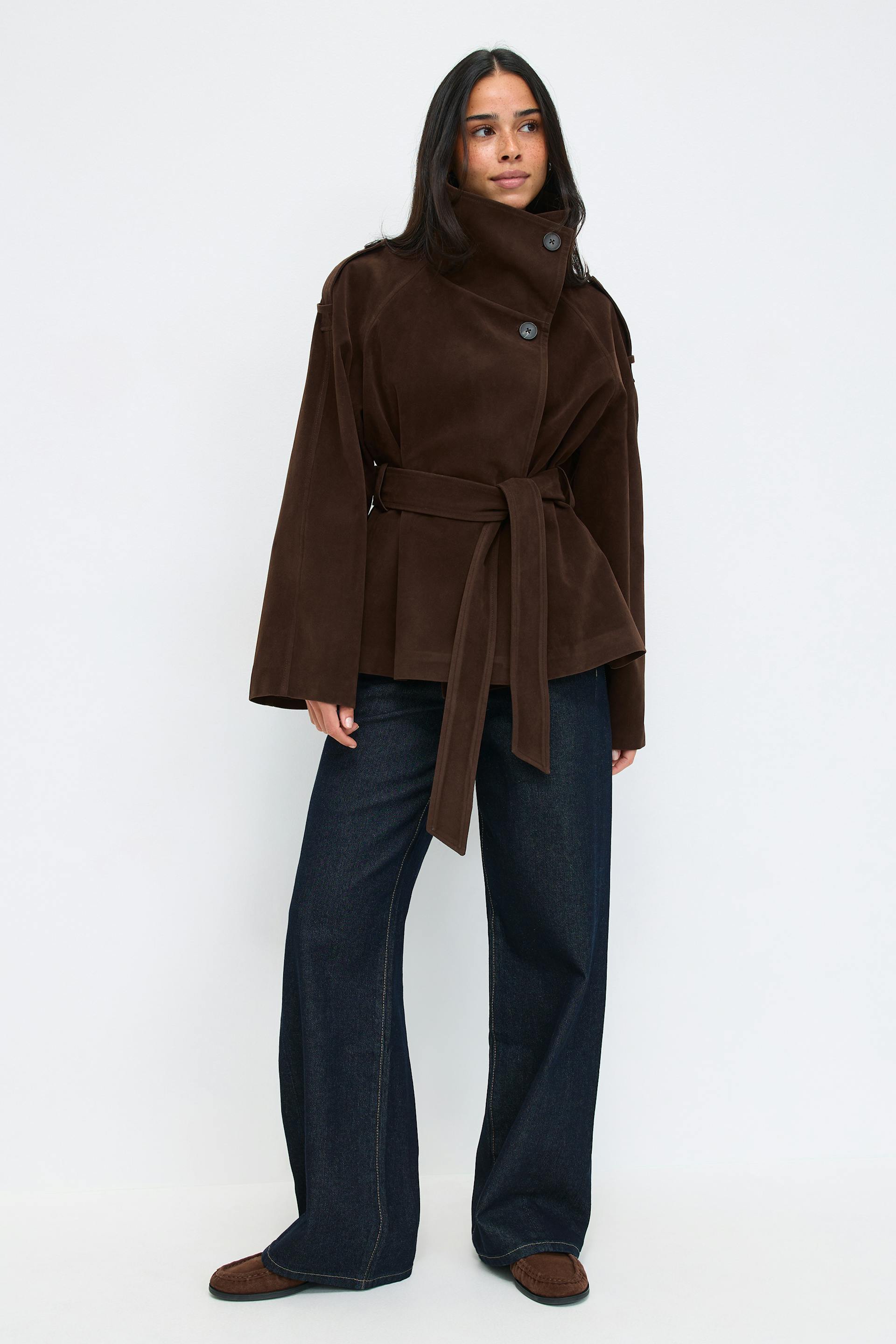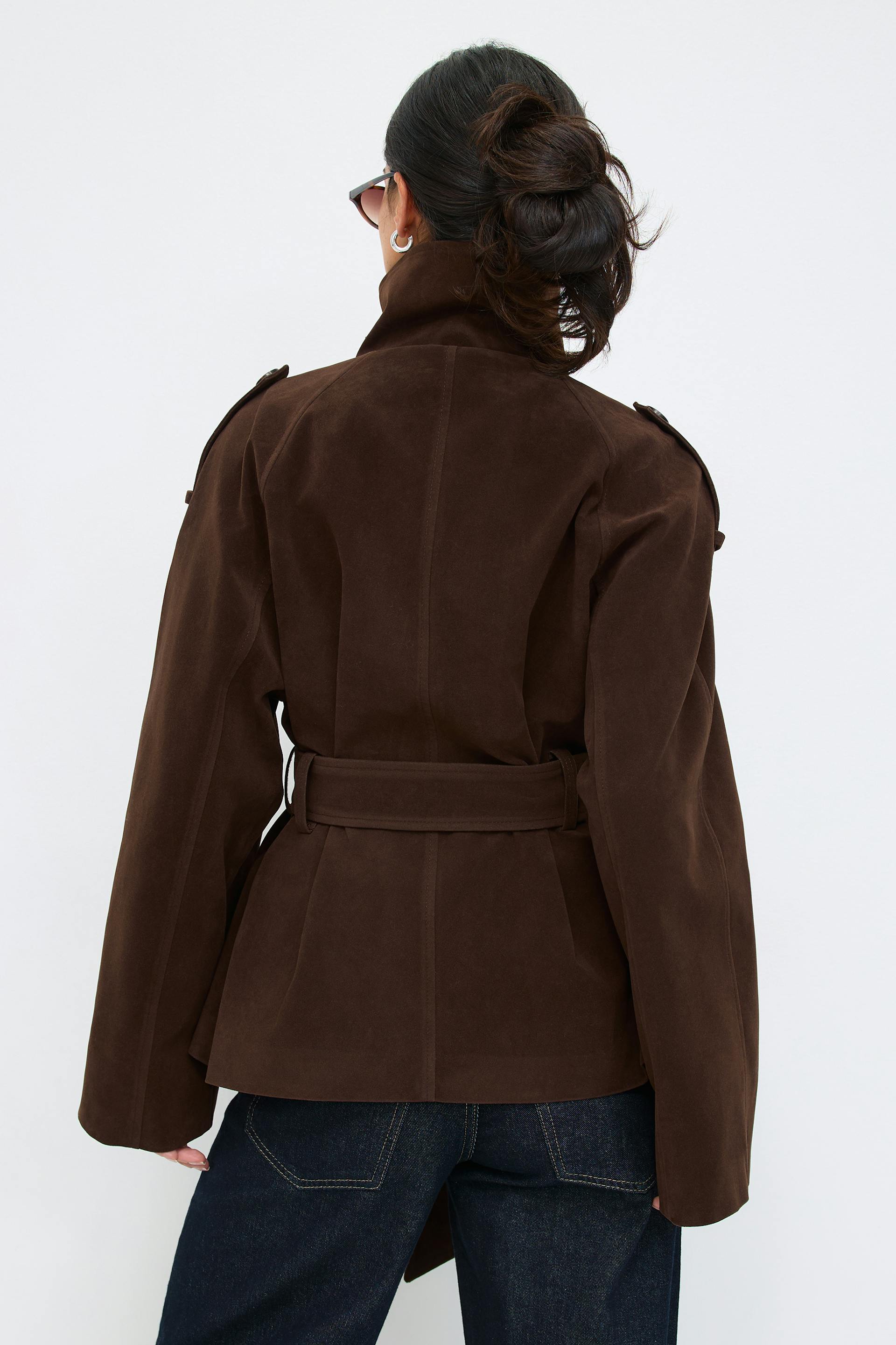 Faux suede trench jacket