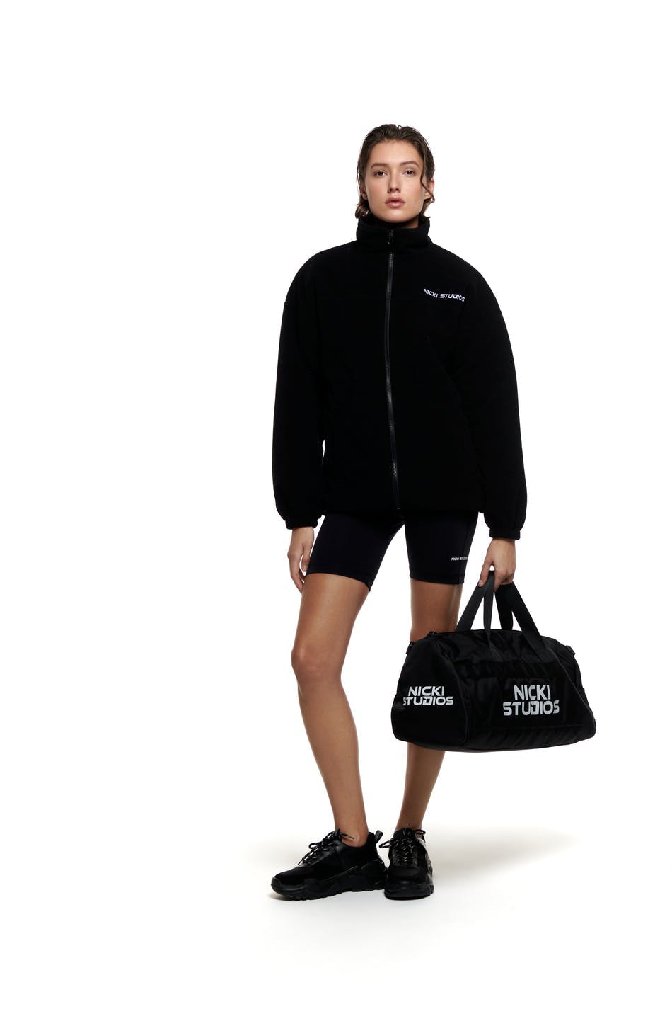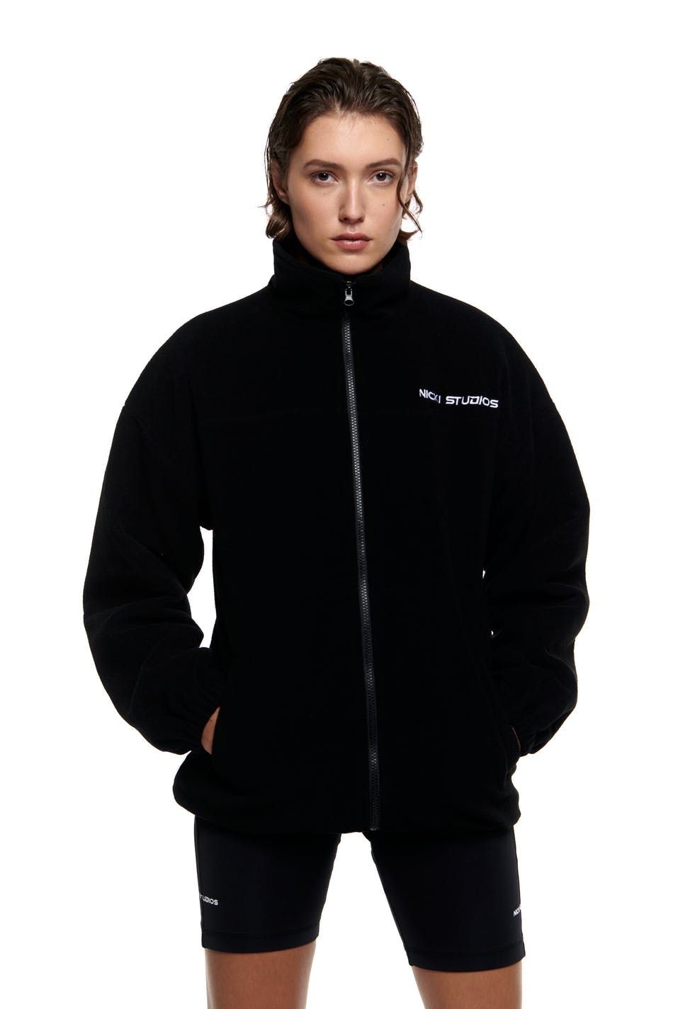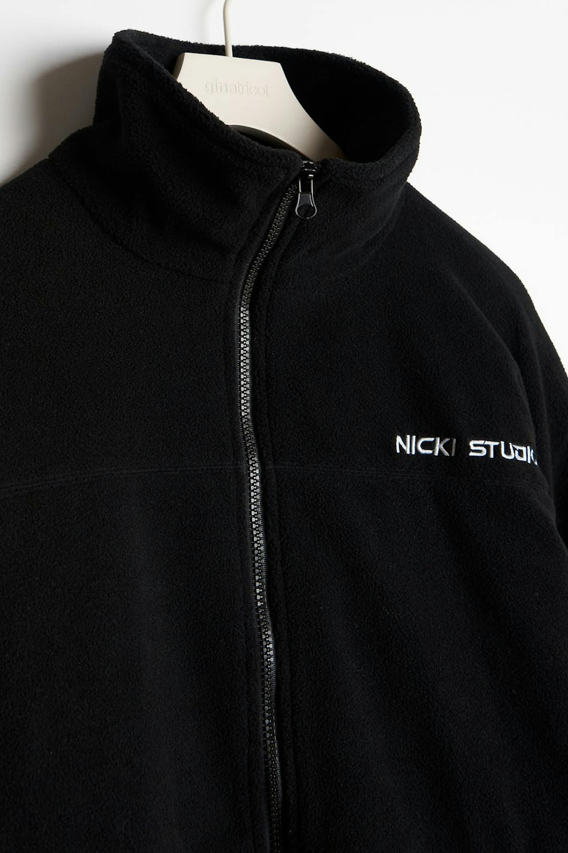 NICKI STUDIOS / GINA TRICOT Fleece jacket with zip as front closure. Long and oversized fit. Big logo at chest. Detail seams at chest and at arms. Supplier: Sinoproud ImportAndExport Corporation, Haiyan Hongsheng Garments co.,ltd SHELL: 100% Polyester LINING: 100% Polyester
