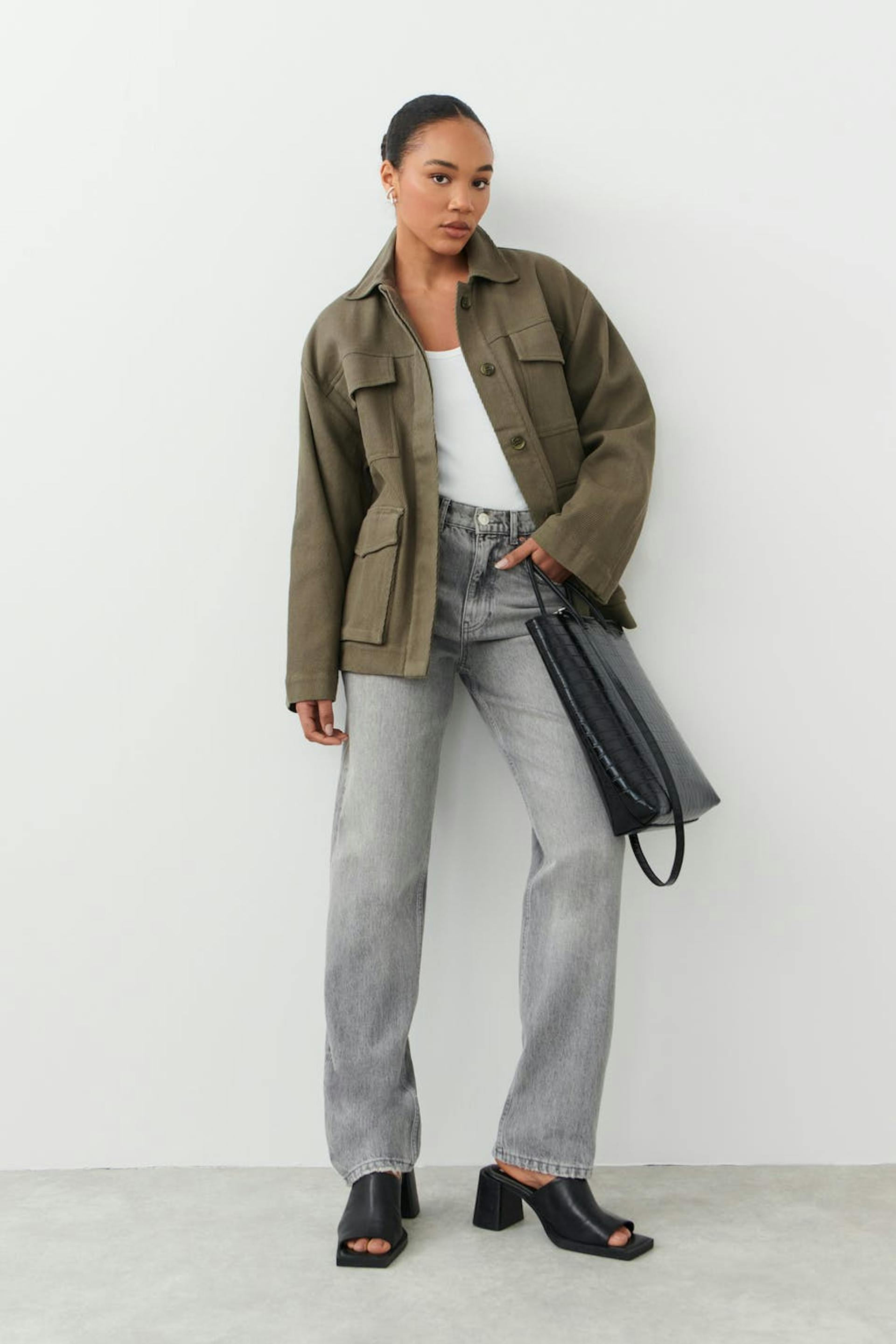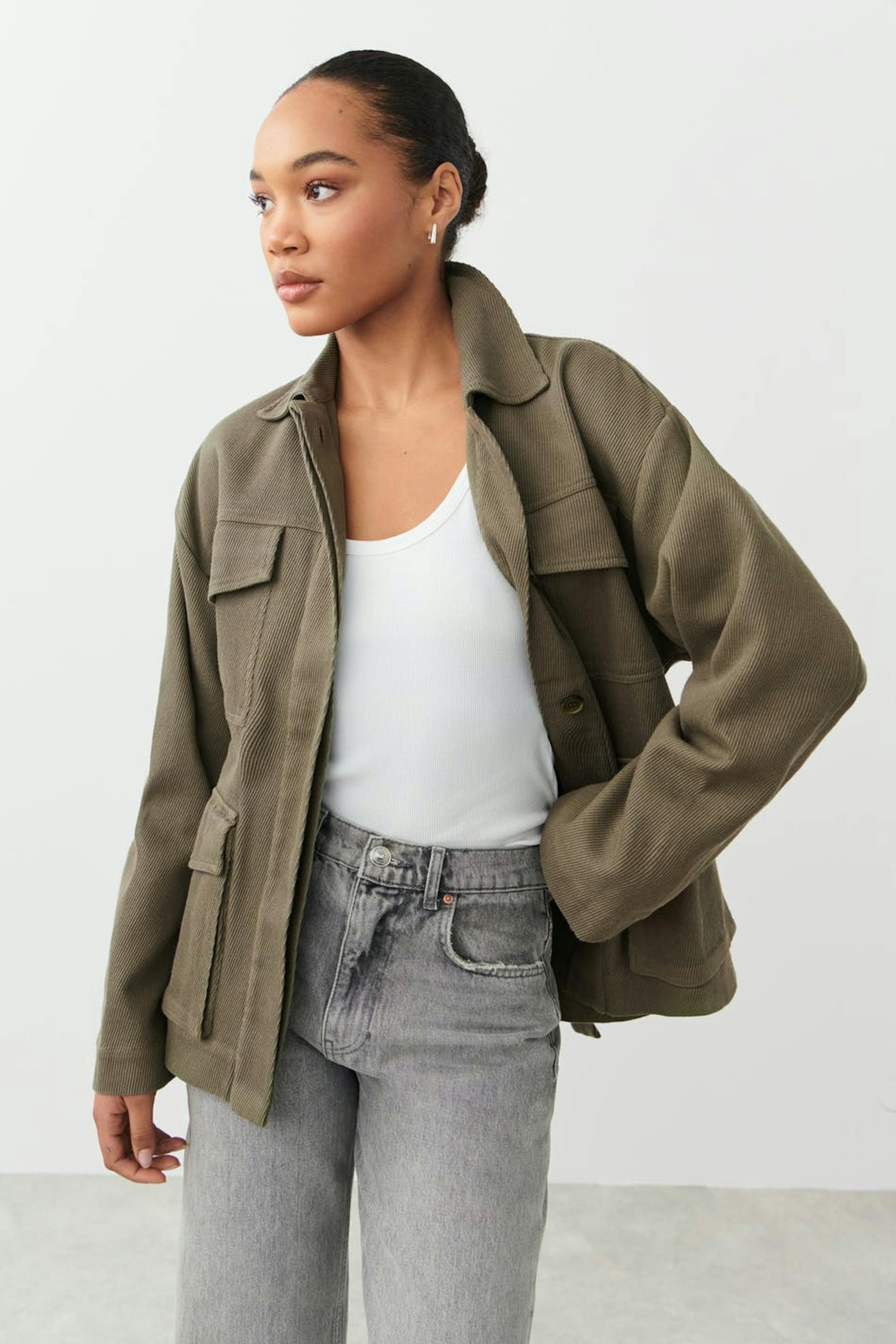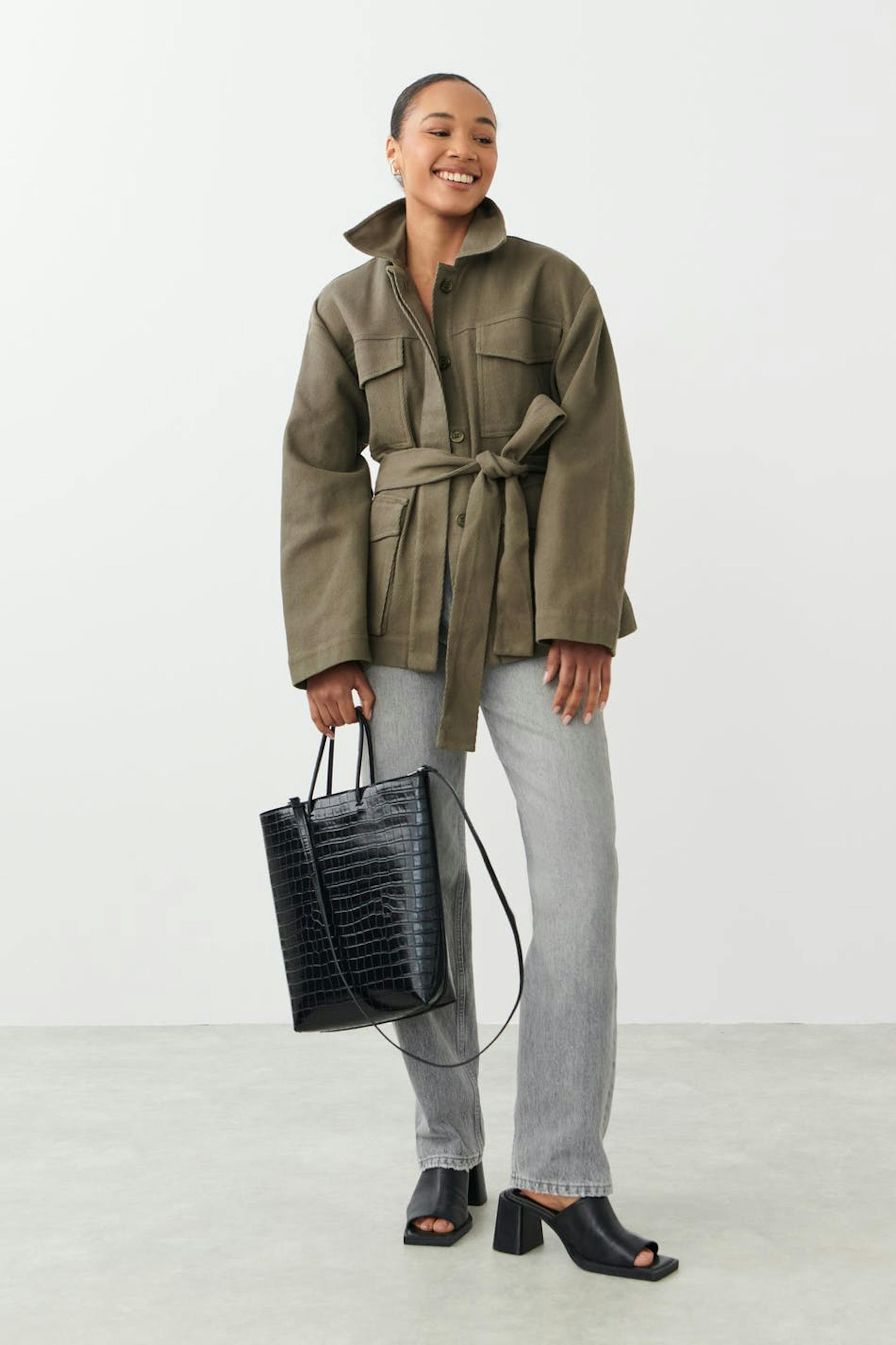 Belted shirt jacket