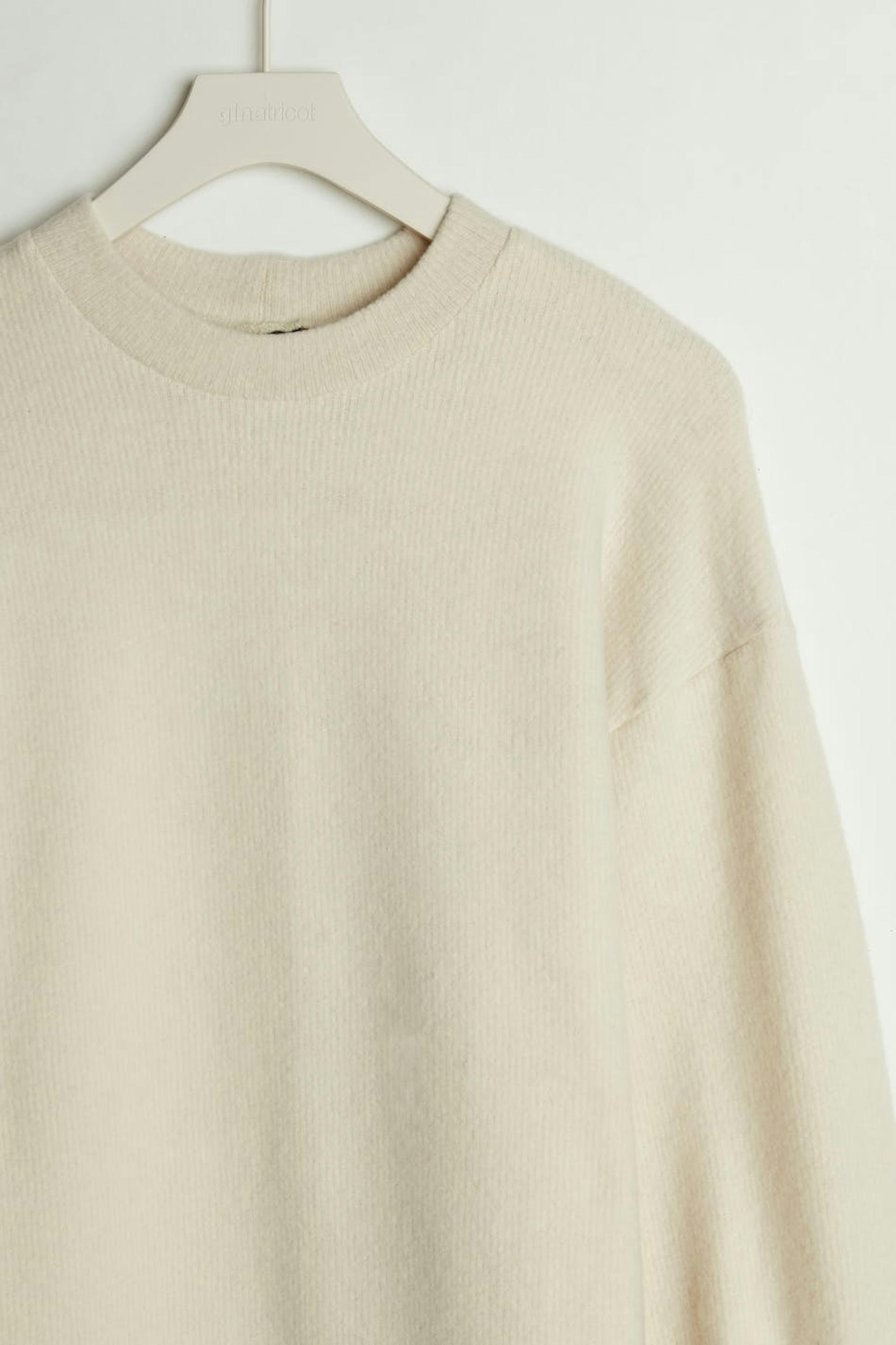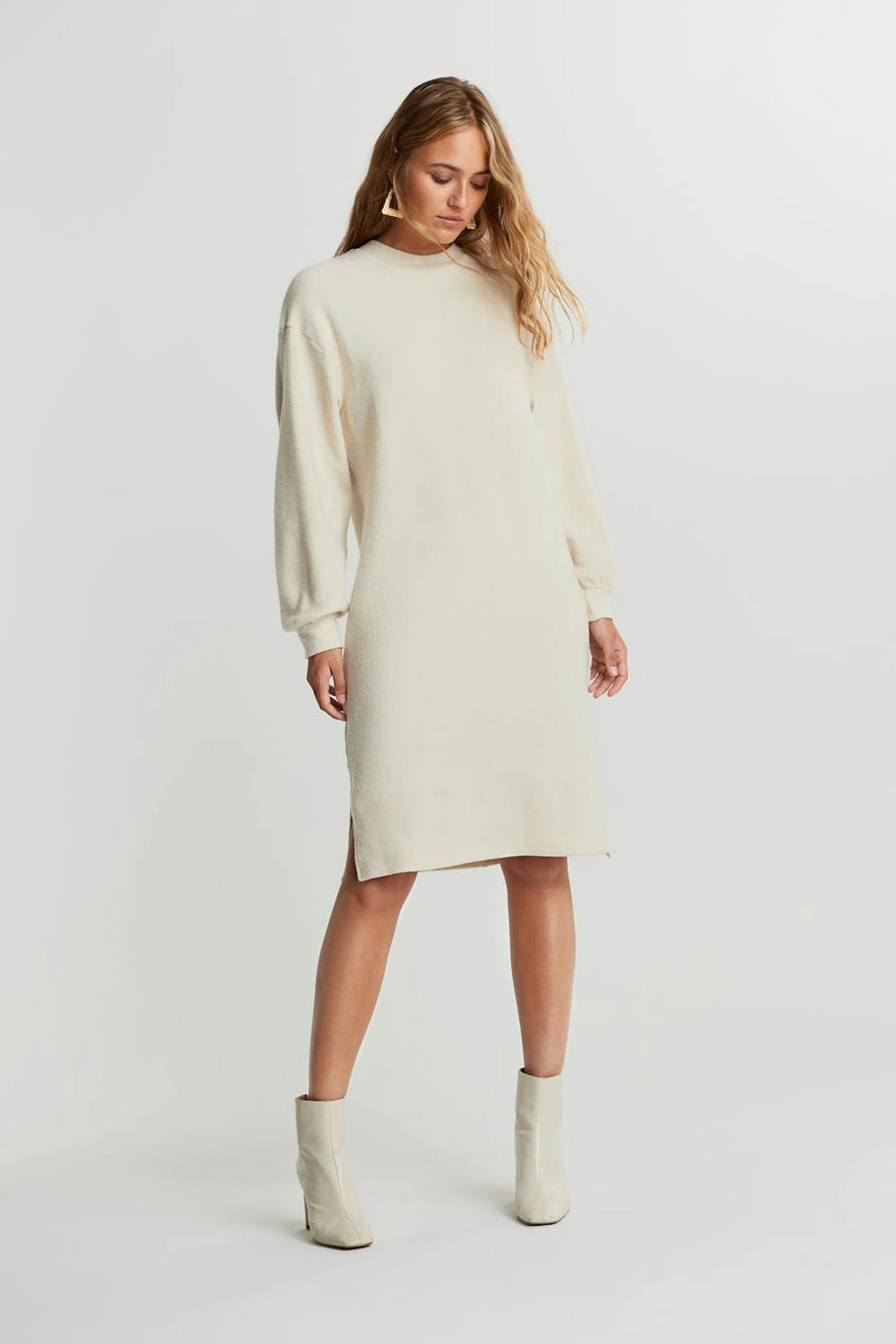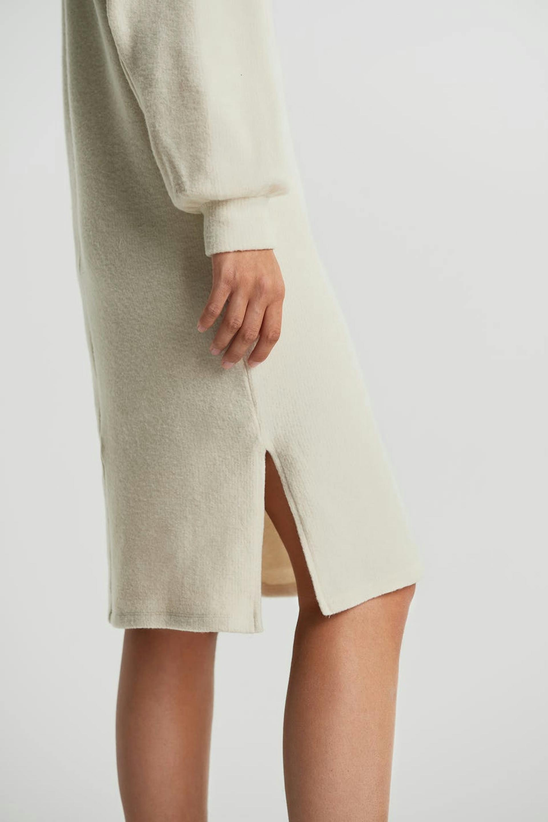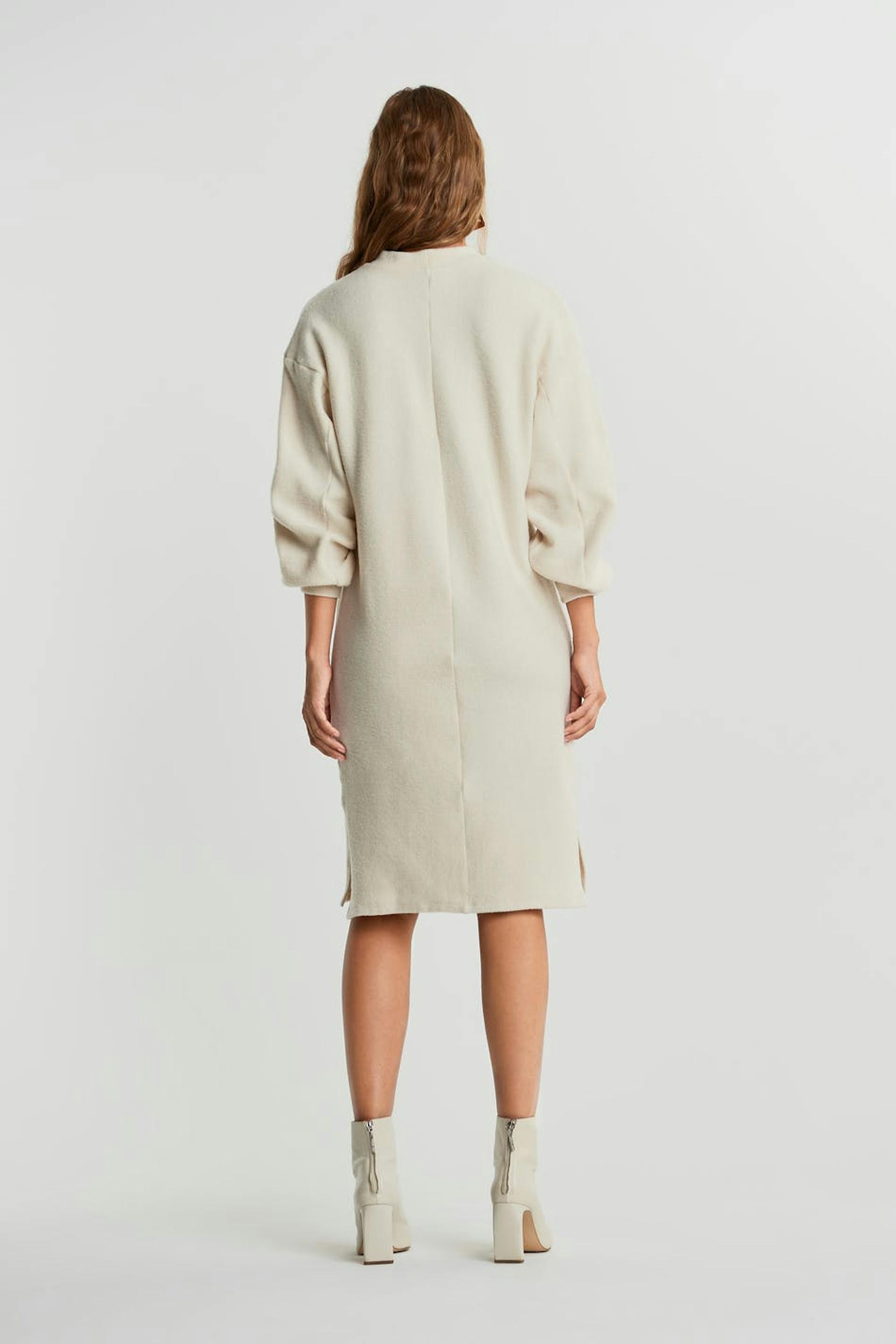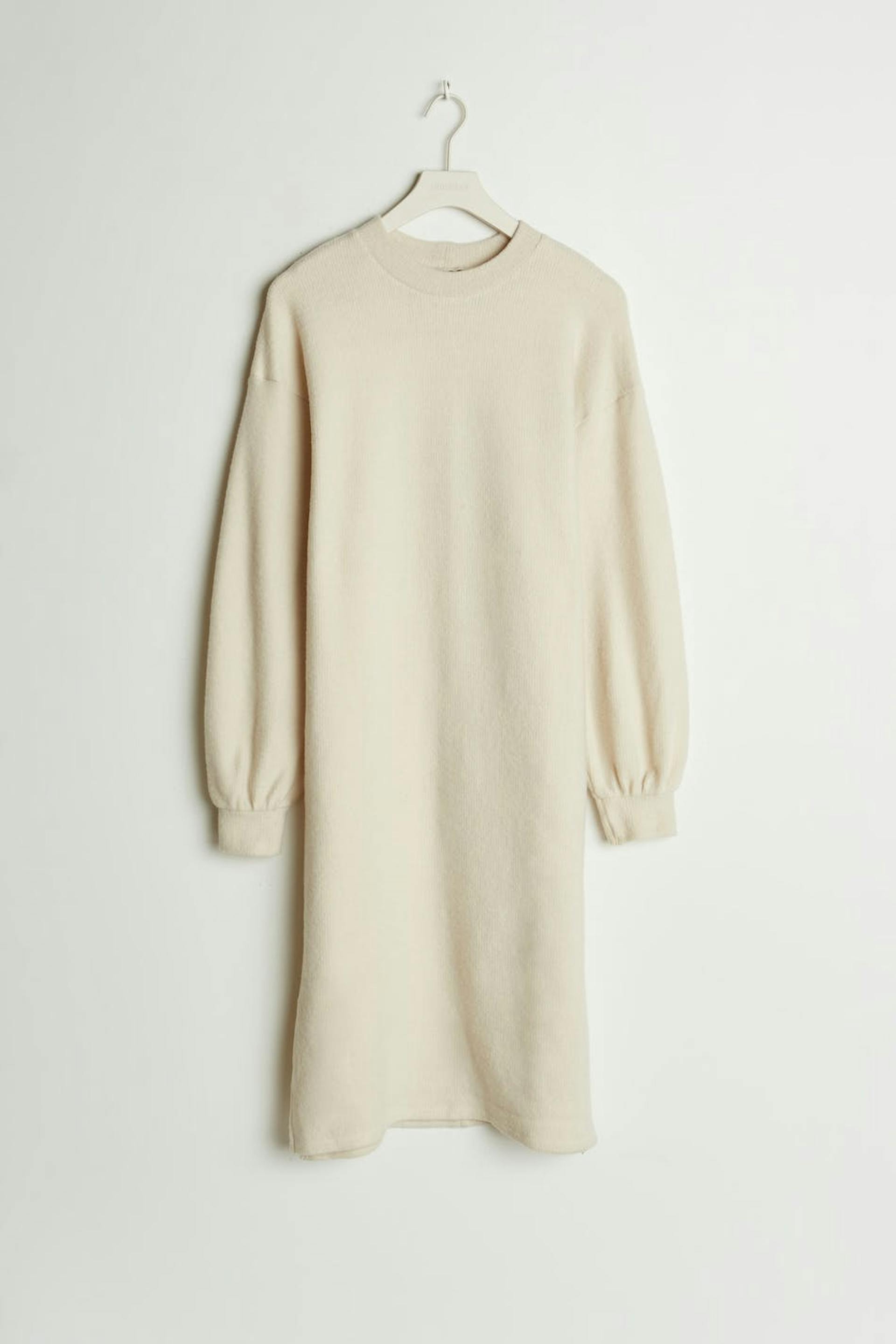 Long-sleeved dress with an oversize fit. The dress is beige and soft and has slits on the sides.
