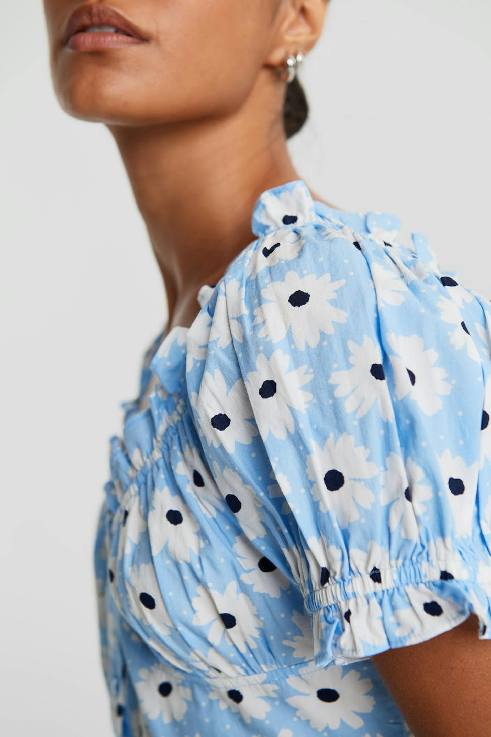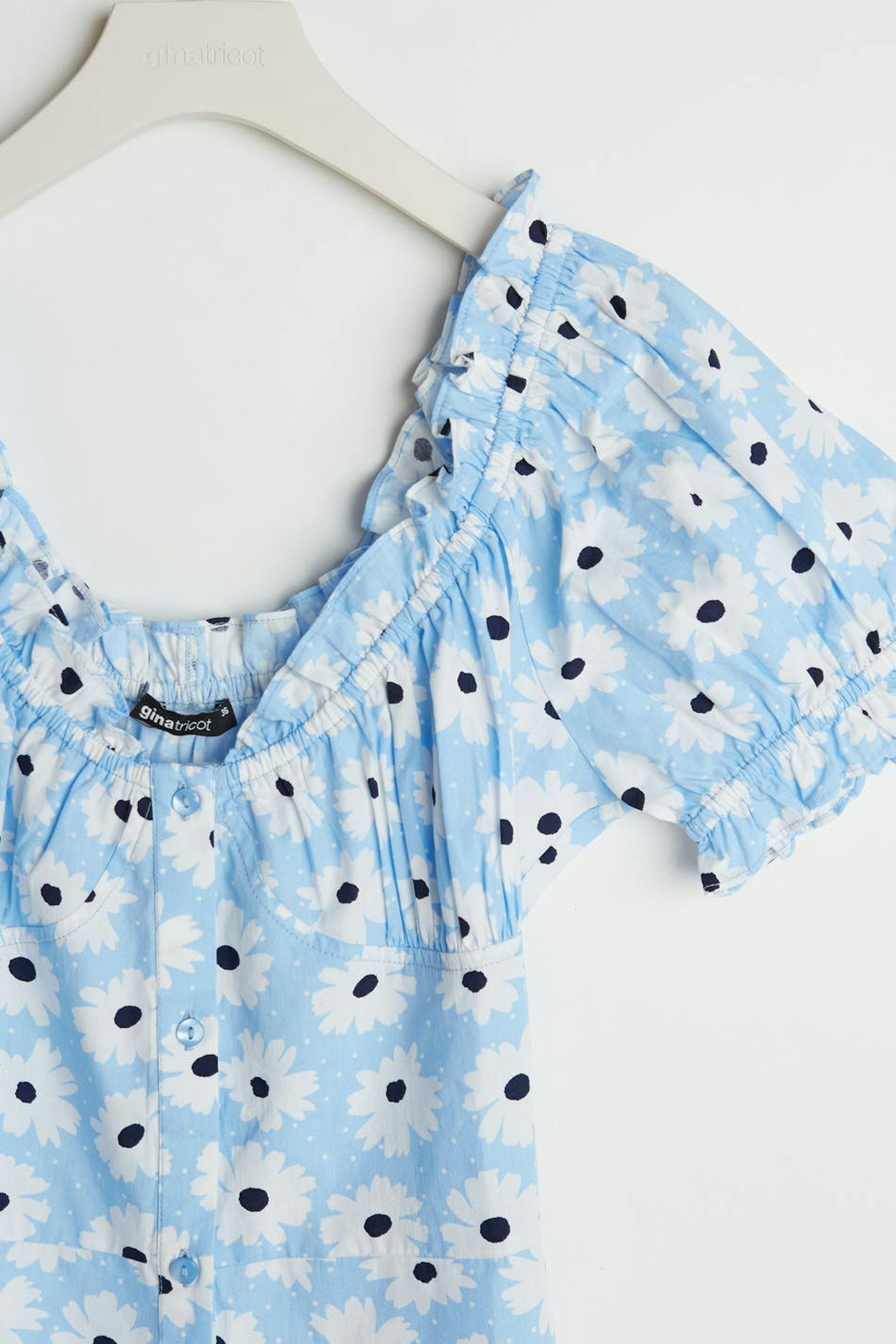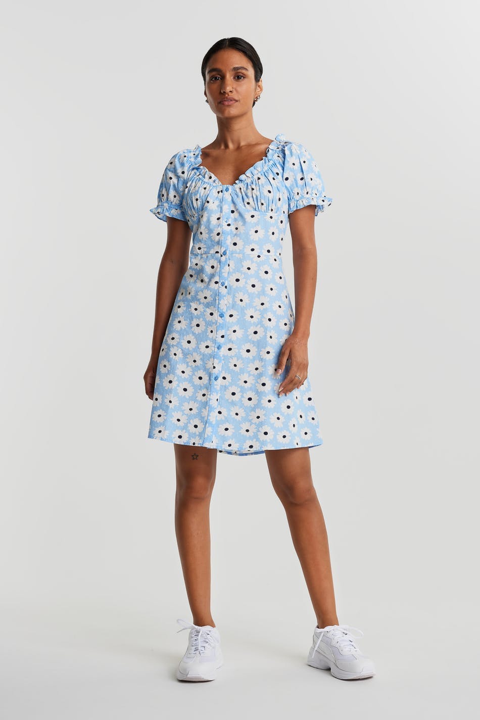 Floral dress with a regular fit. The dress has gathering at the top. It has buttons at the front.