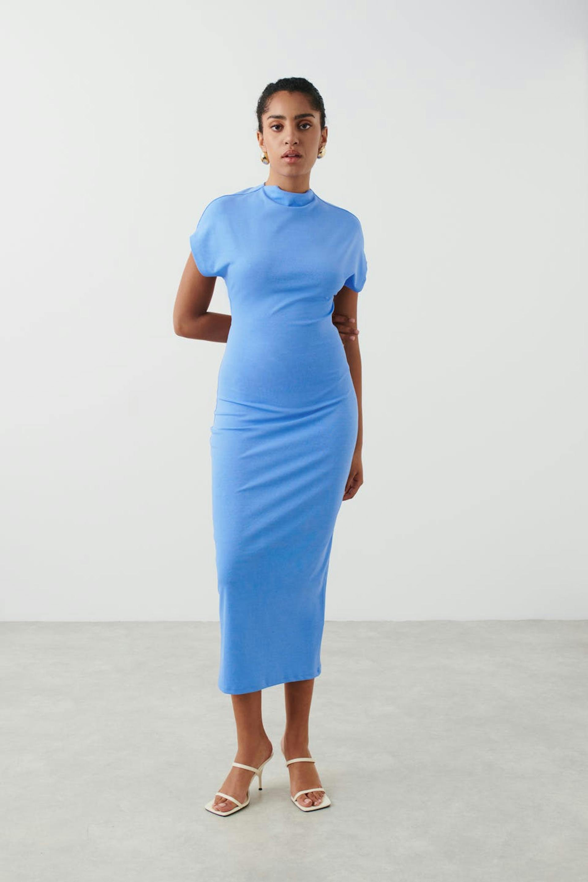 Open back funnel neck dress