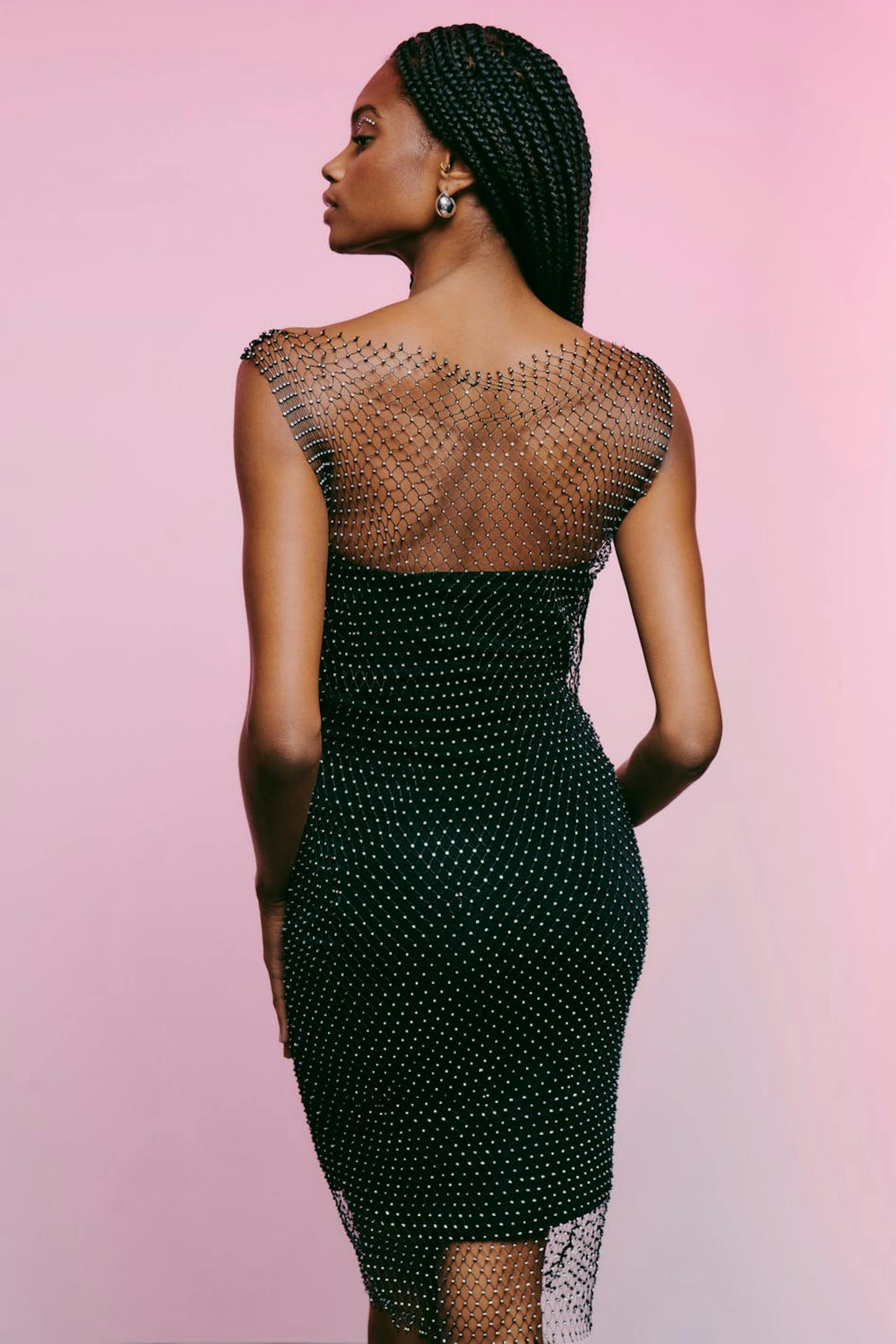 Sleeveless rhinestone dress with quality with a stretch. The dress is perfect for the party, black and unlined.