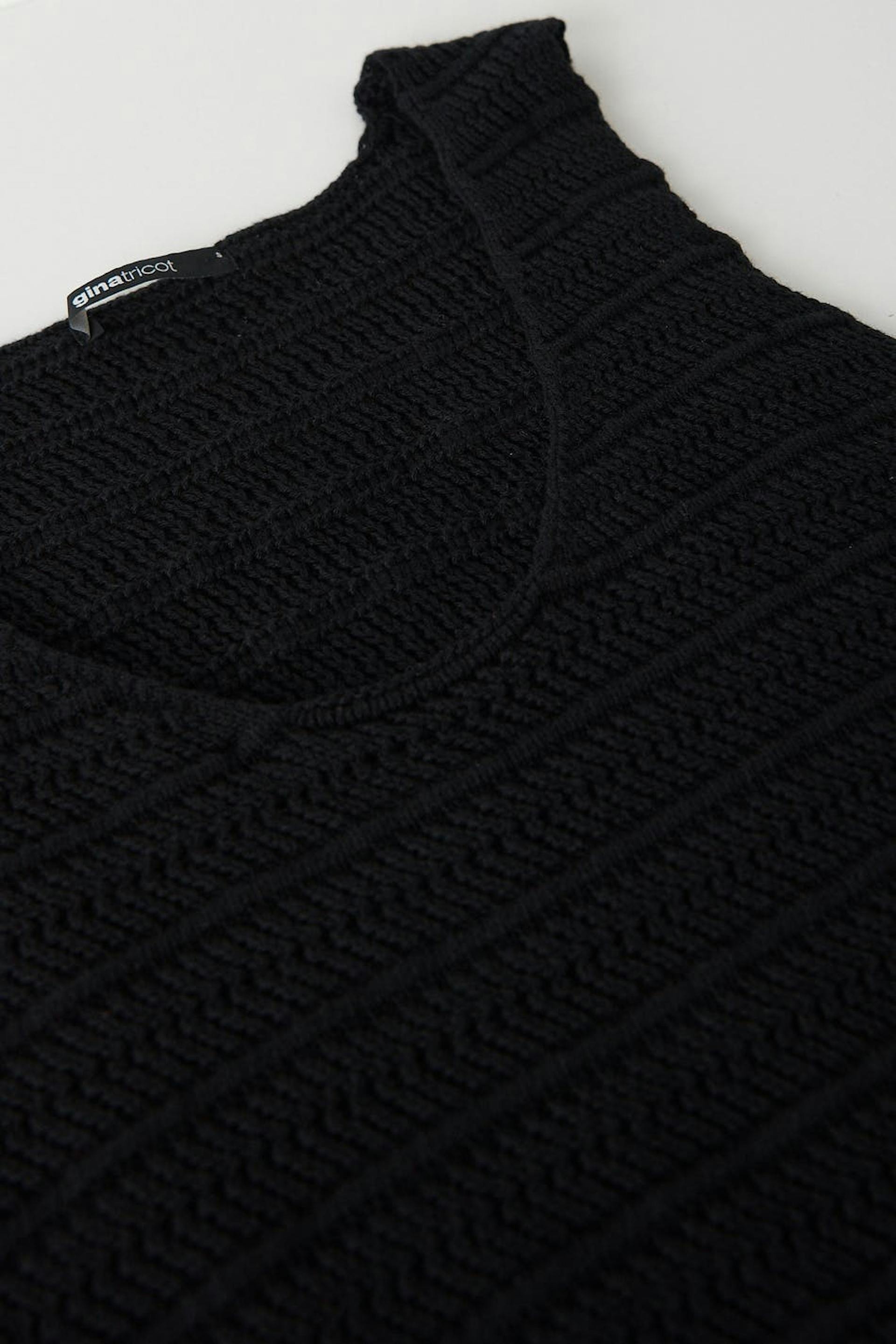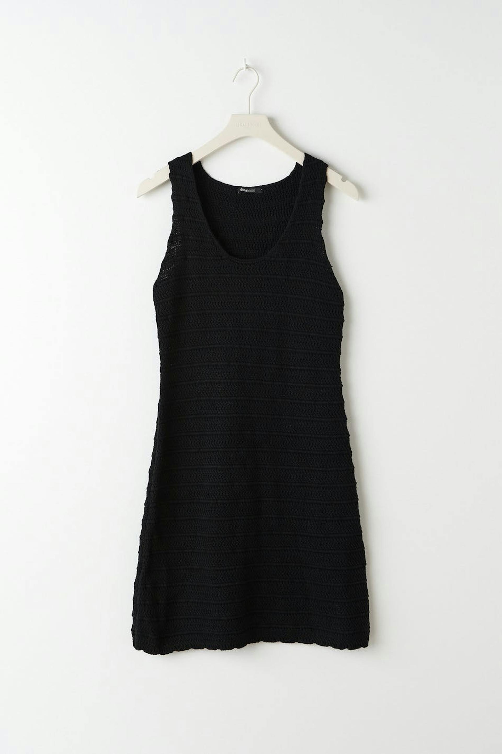 Knitted dress in cotton with u-neck. The dress is black, sleeveless and short.