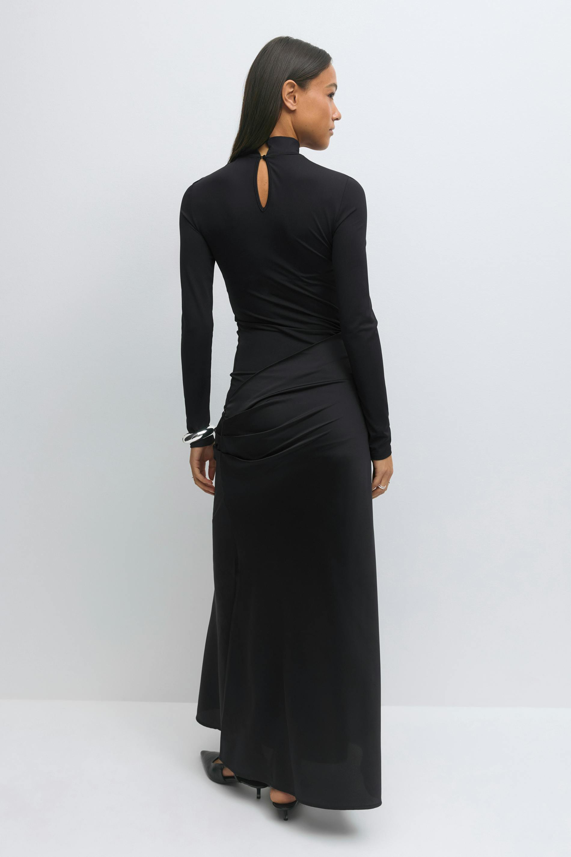 Draped satin maxi dress
