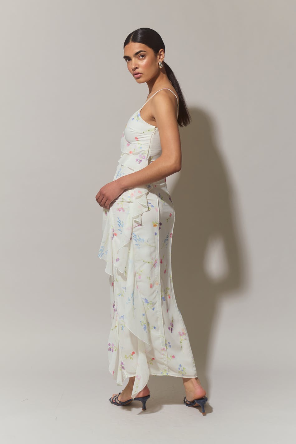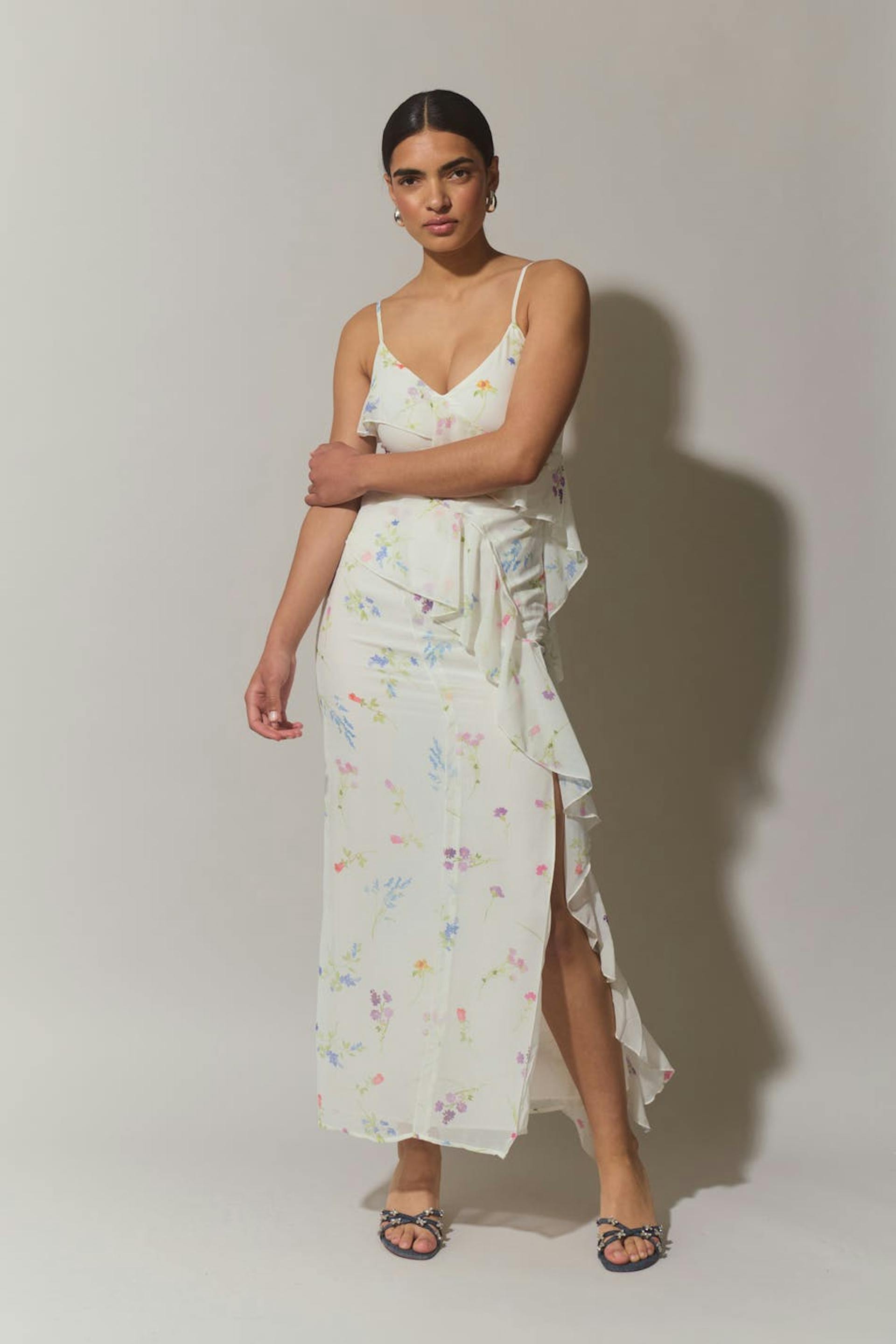 frill chiffon maxi dress