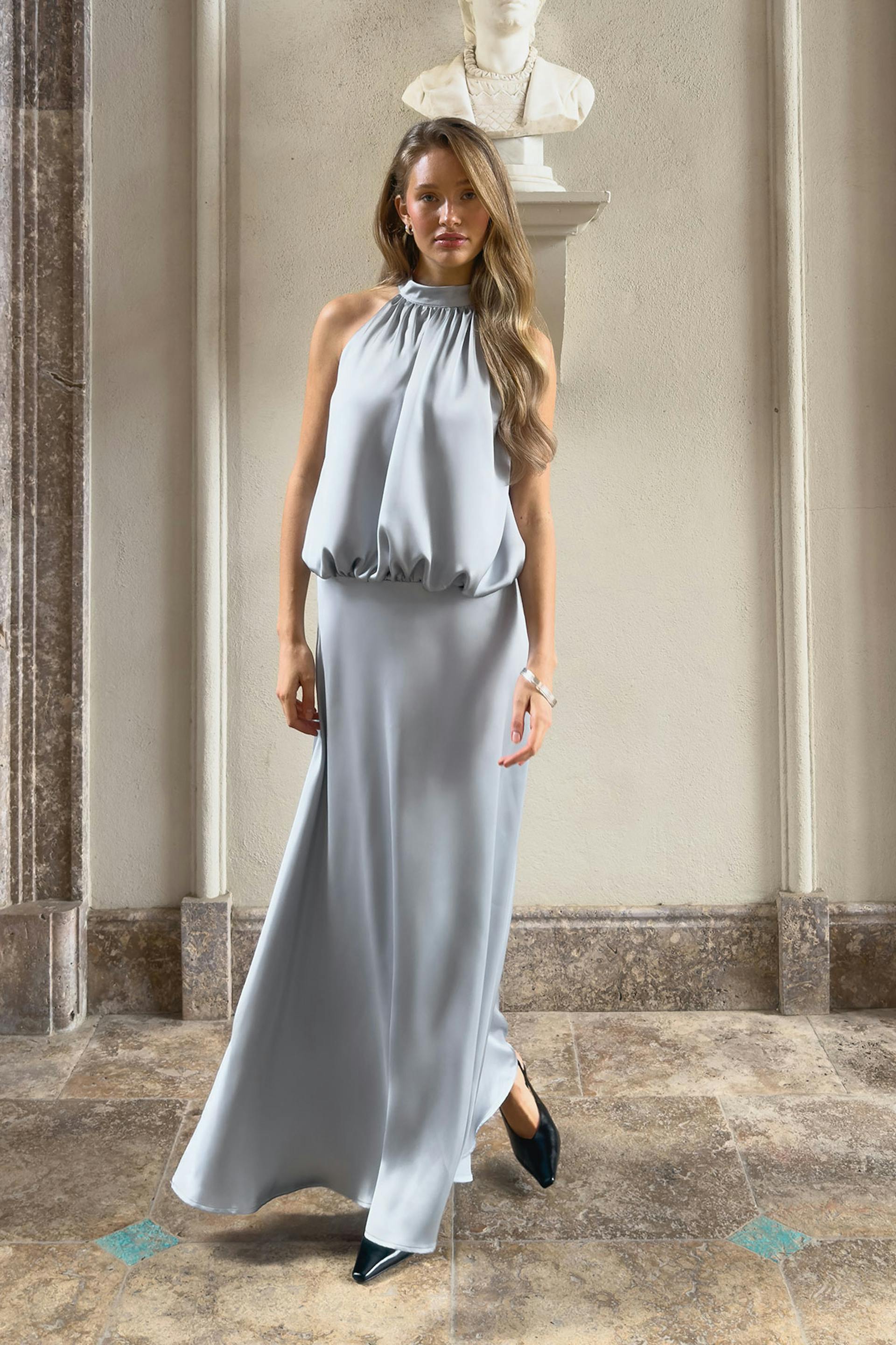 Satin halterneck maxi dress