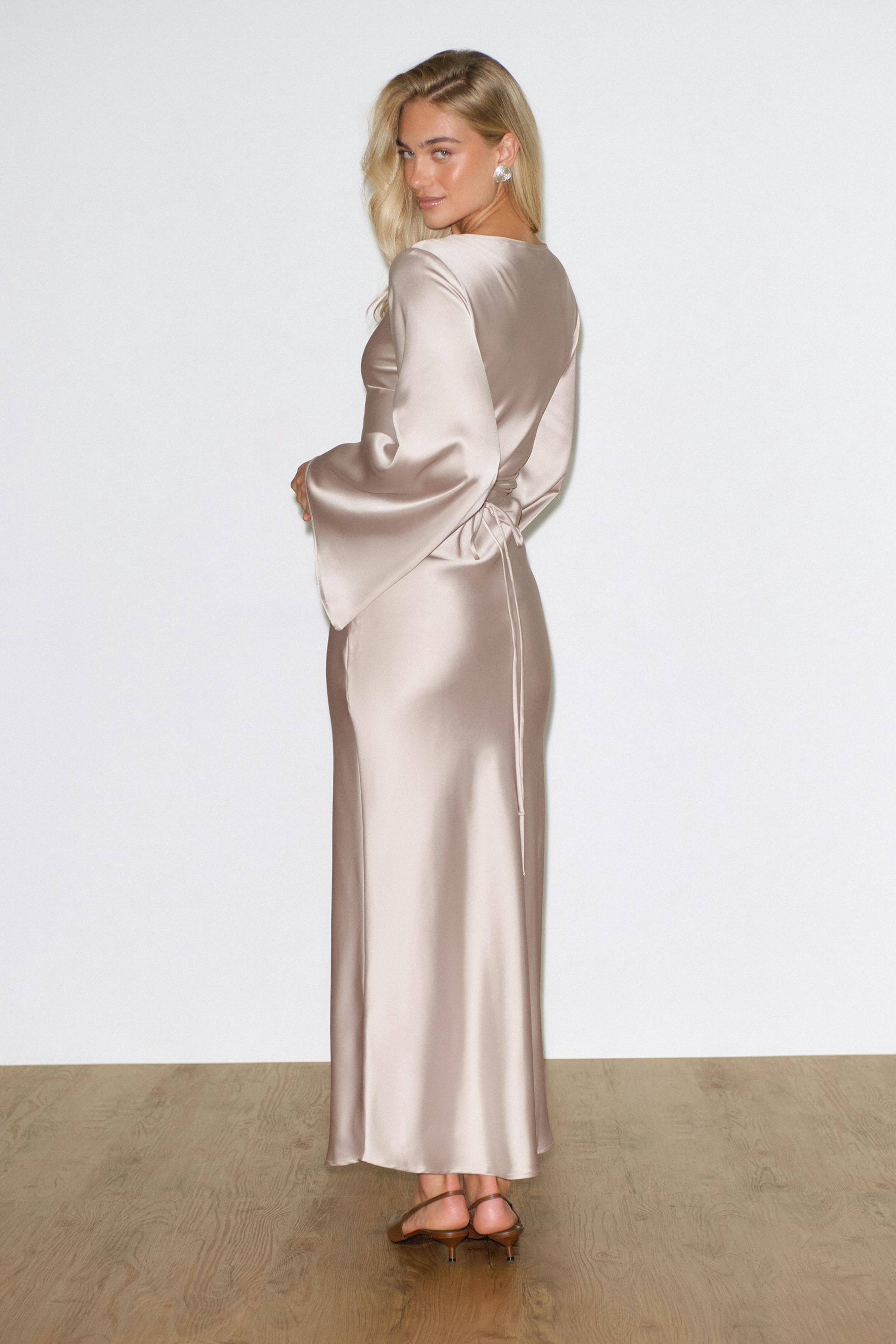 Satin wide sleeve maxi dress