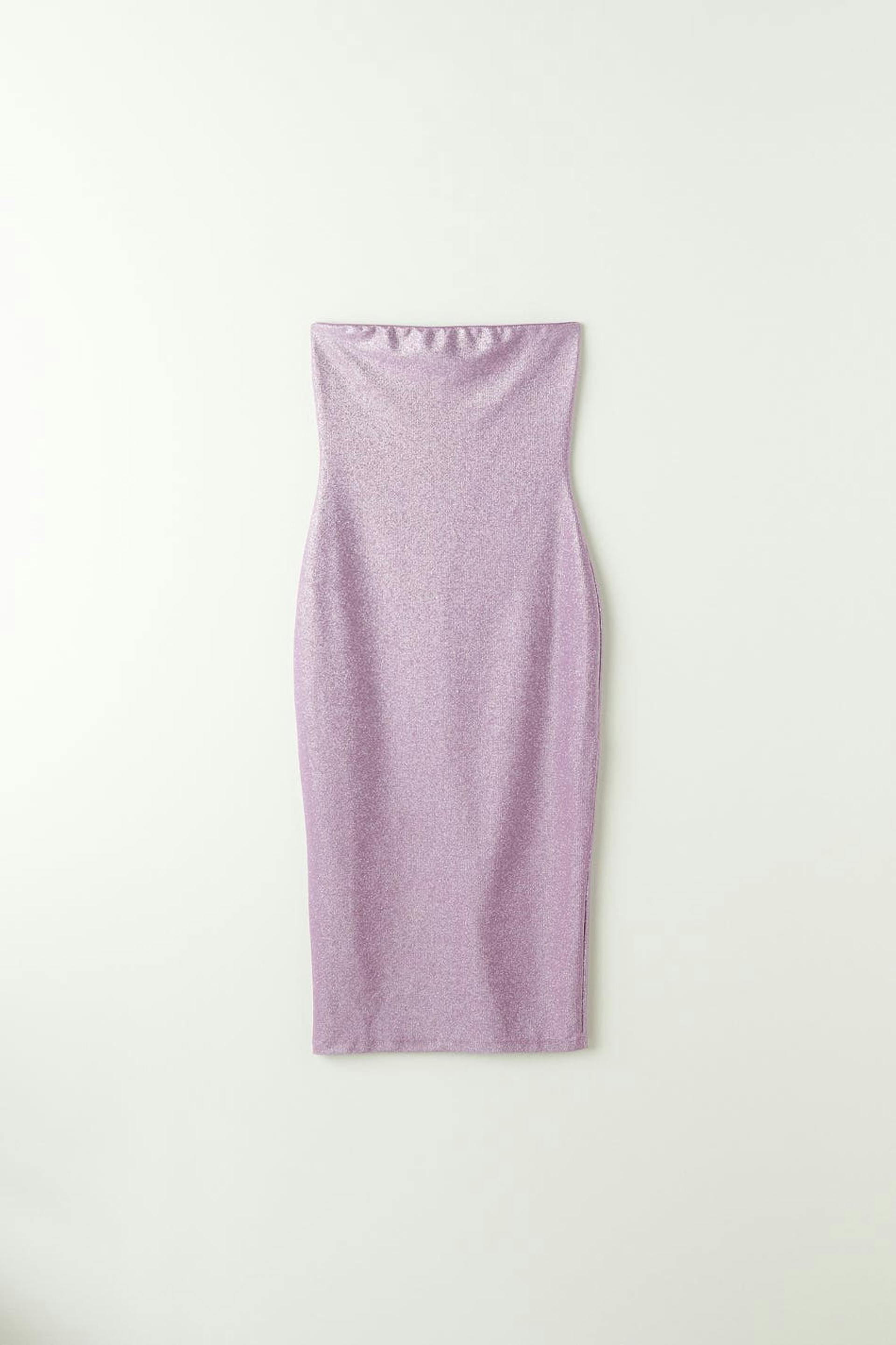 Glittery tube dress in jersey with slit at the back.