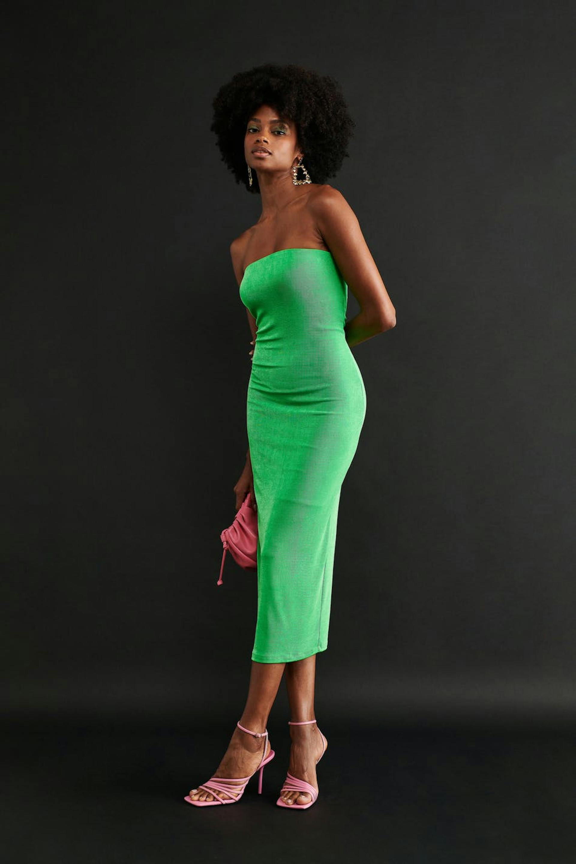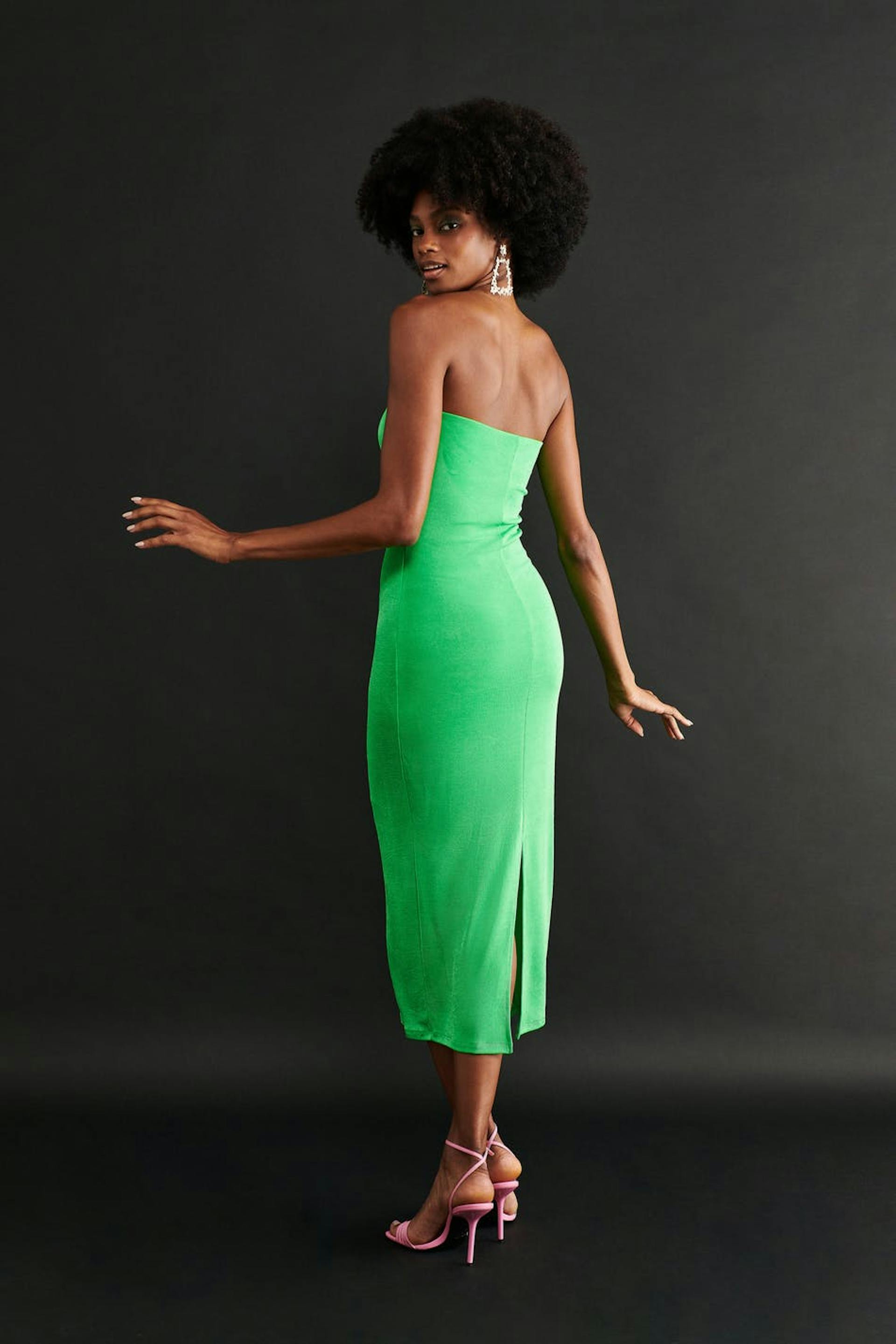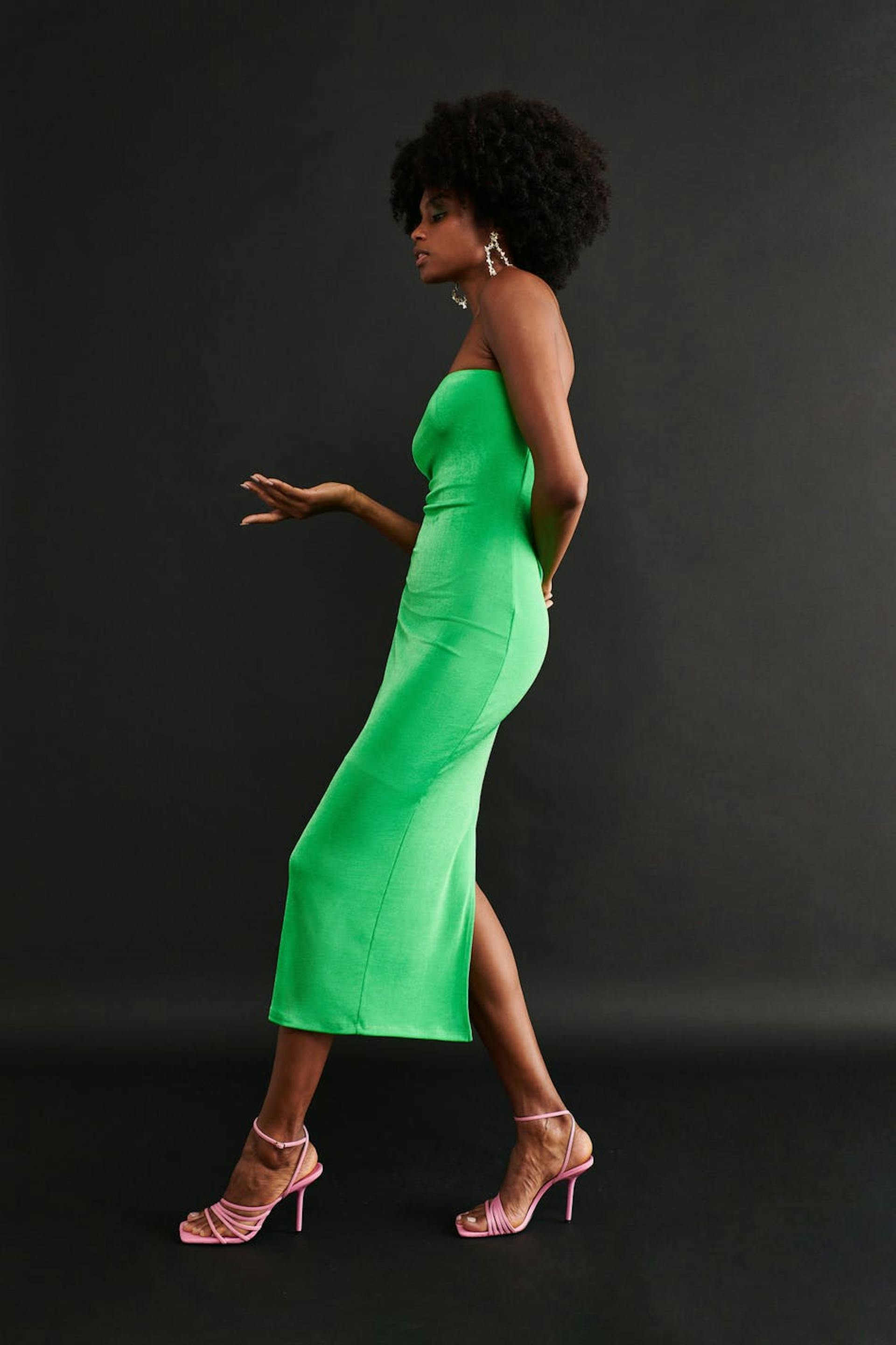 Tube dress with slit at the back. The dress is green and has a fitted fit.