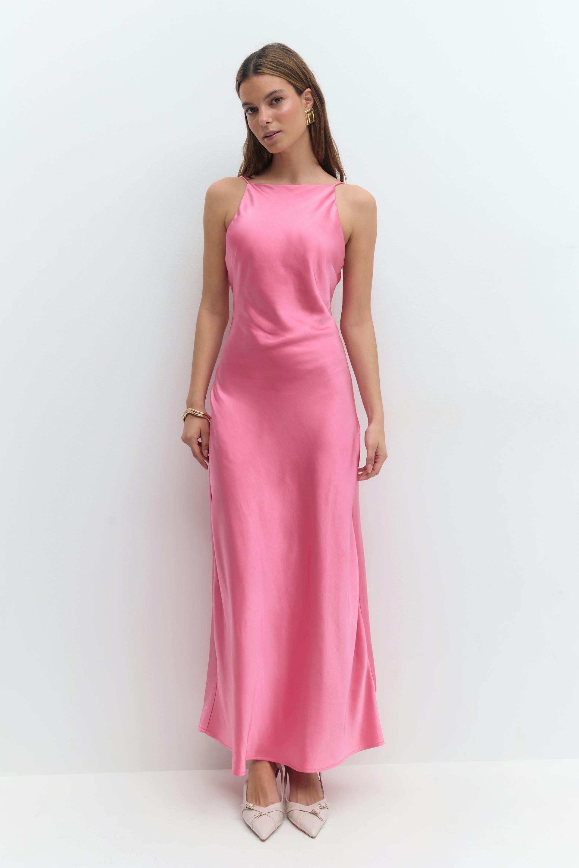 High neck satin dress