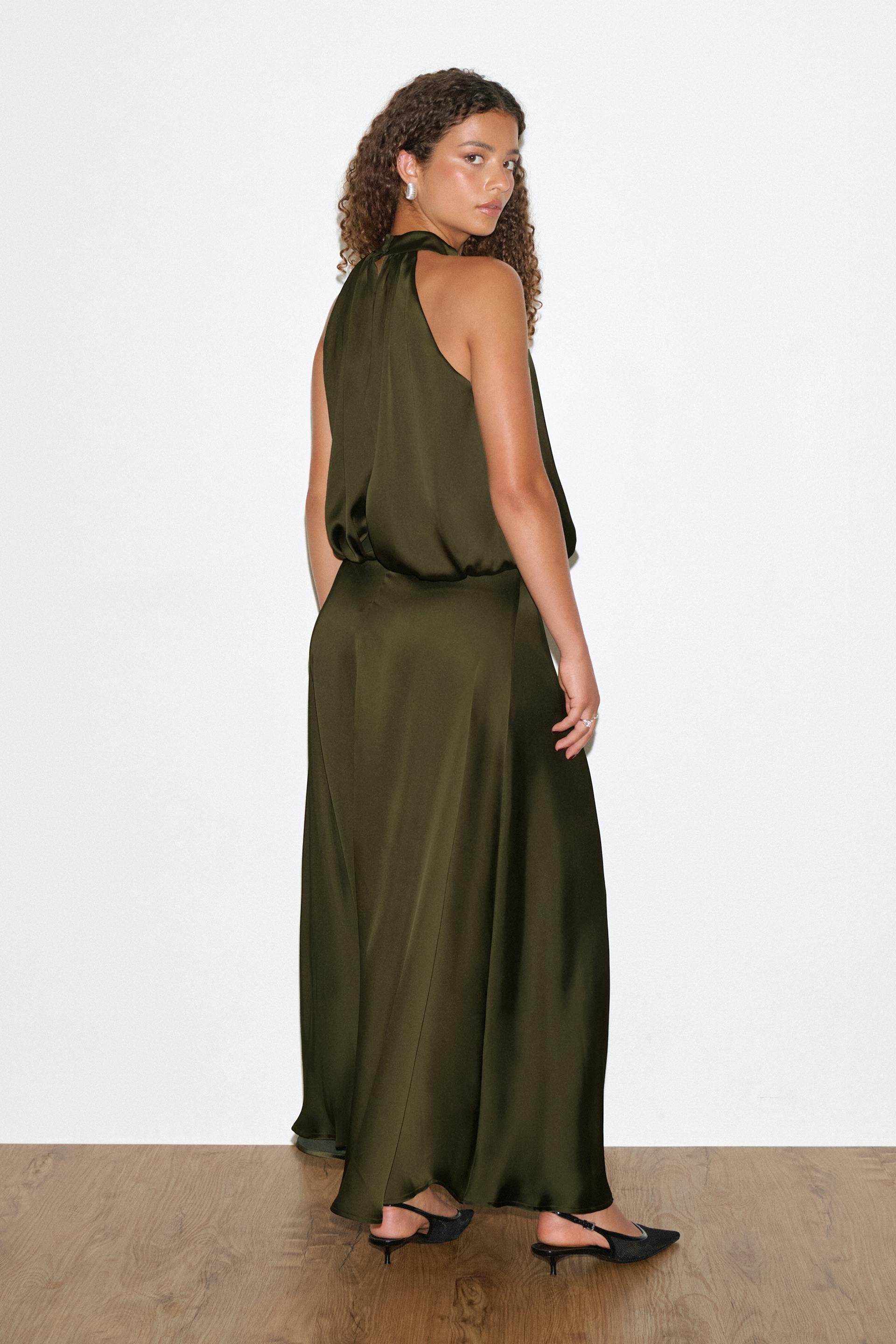 Satin halterneck maxi dress