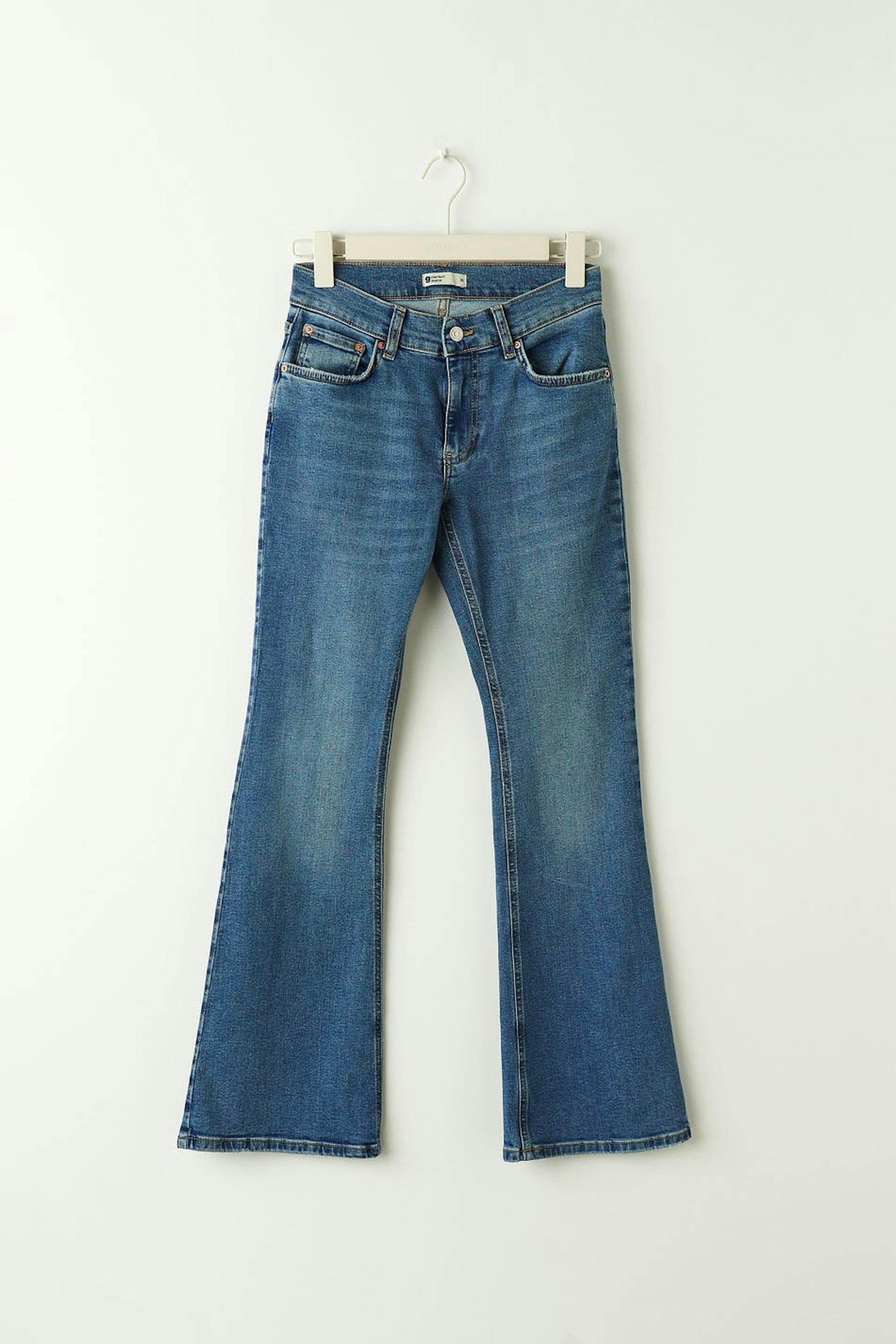 Petite boot cut jeans with low waist. The jeans are blue and have flared legs in low stretch denim. They have normal length, zip fly and pockets at the front and back. Perfect for those who are 160 cm (5 ft 3 in.) or shorter. Use our size guide to find your size.
